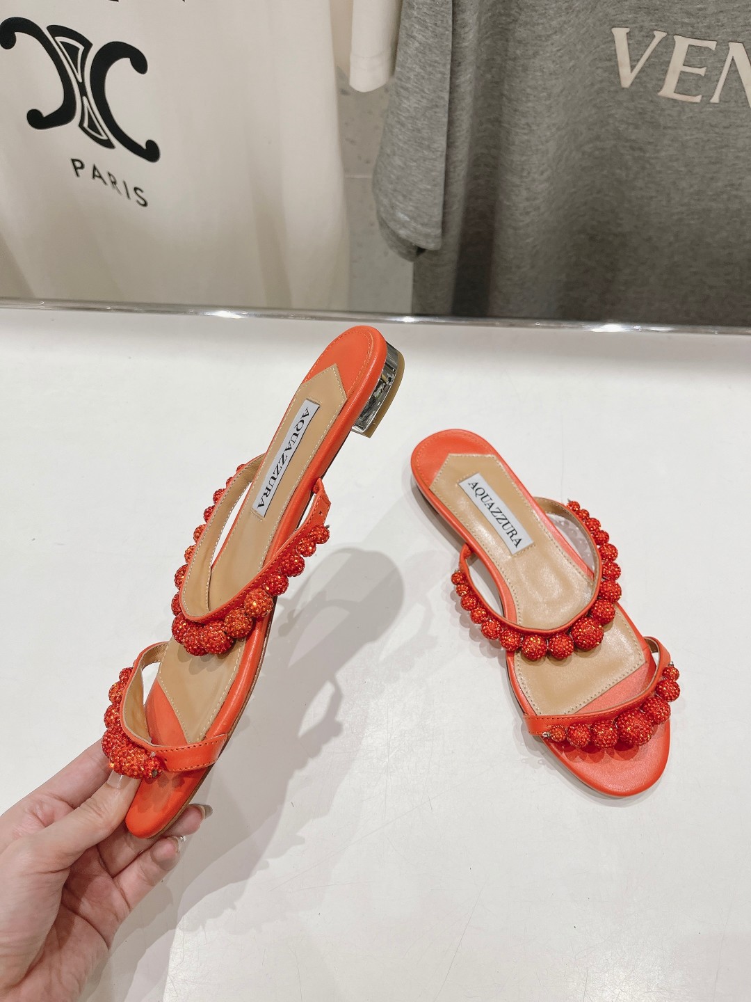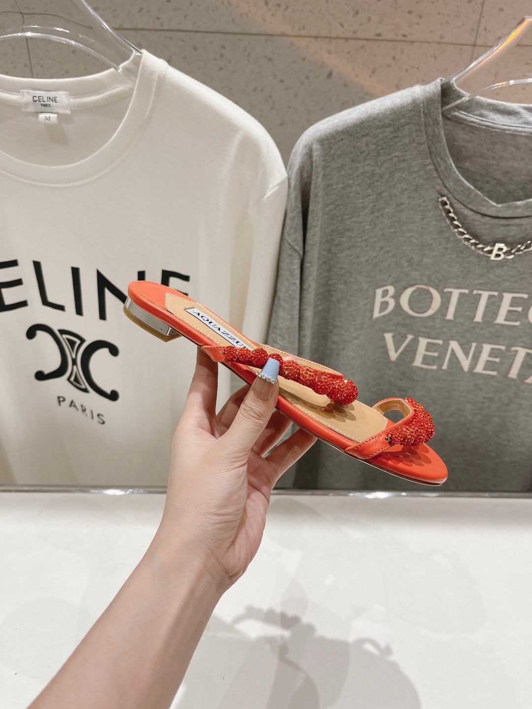AQUAZZURA Women Rhinestone Flats Slippers Size 35-42