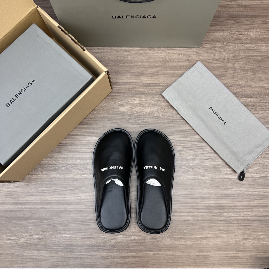 Balenciaga Slippers calfskin logo flat half pack pair slippers Size 35-44