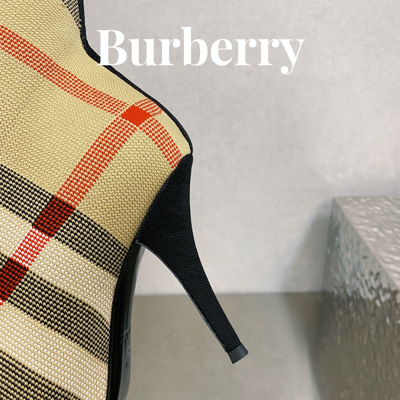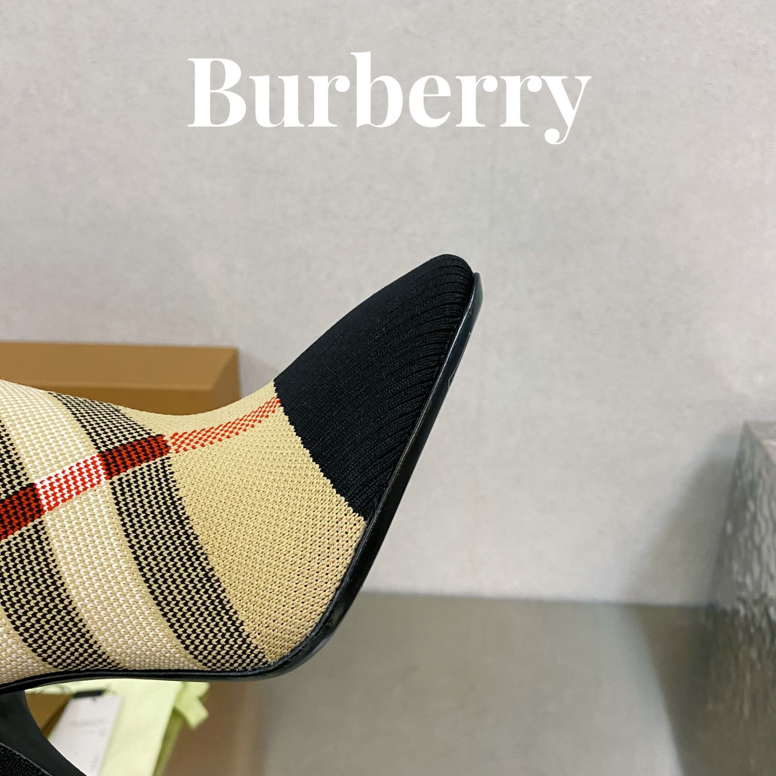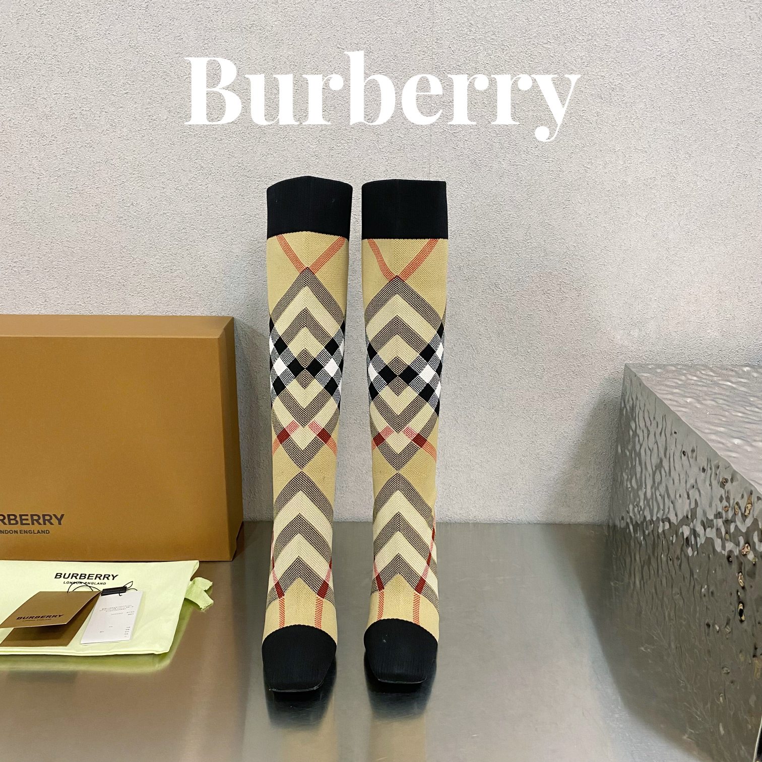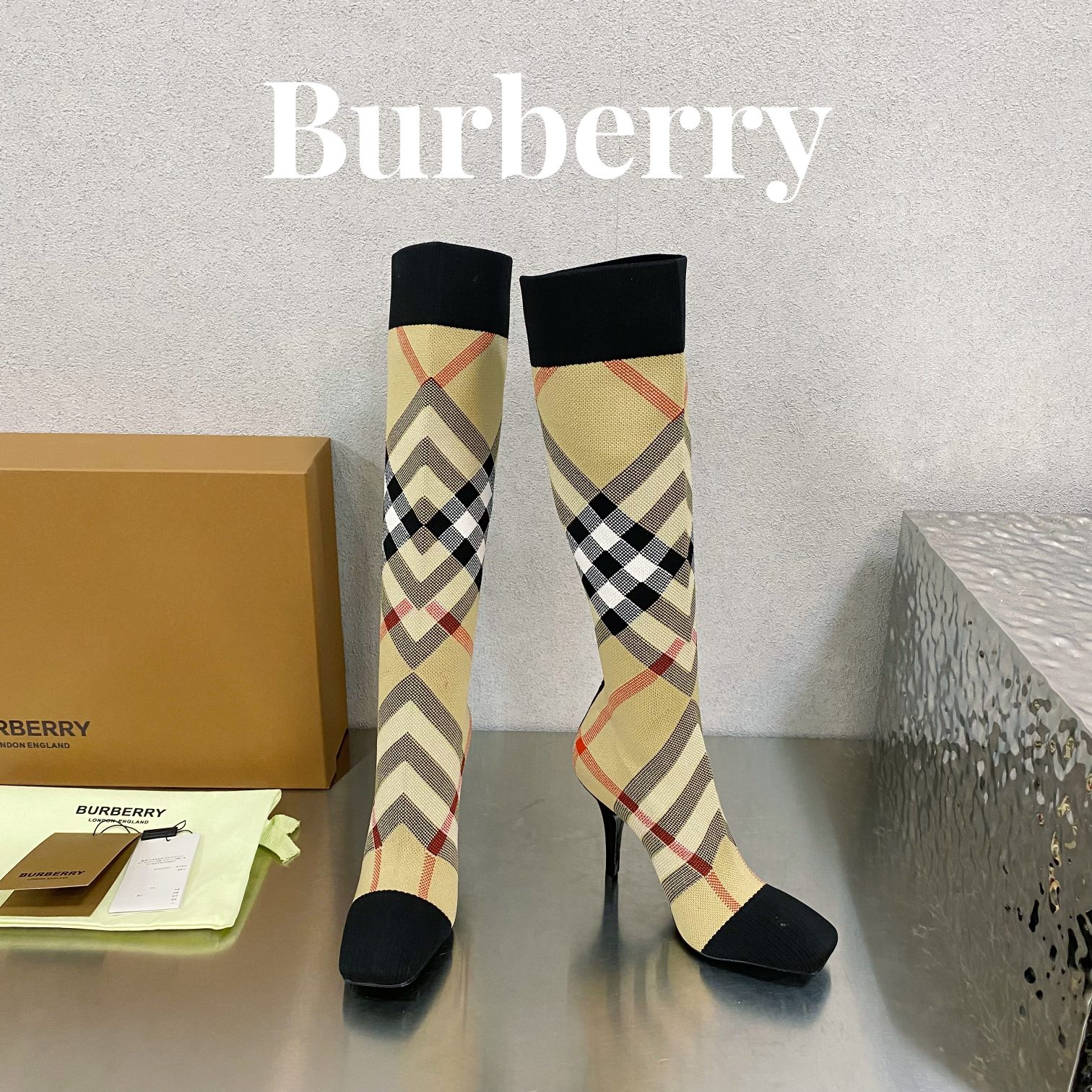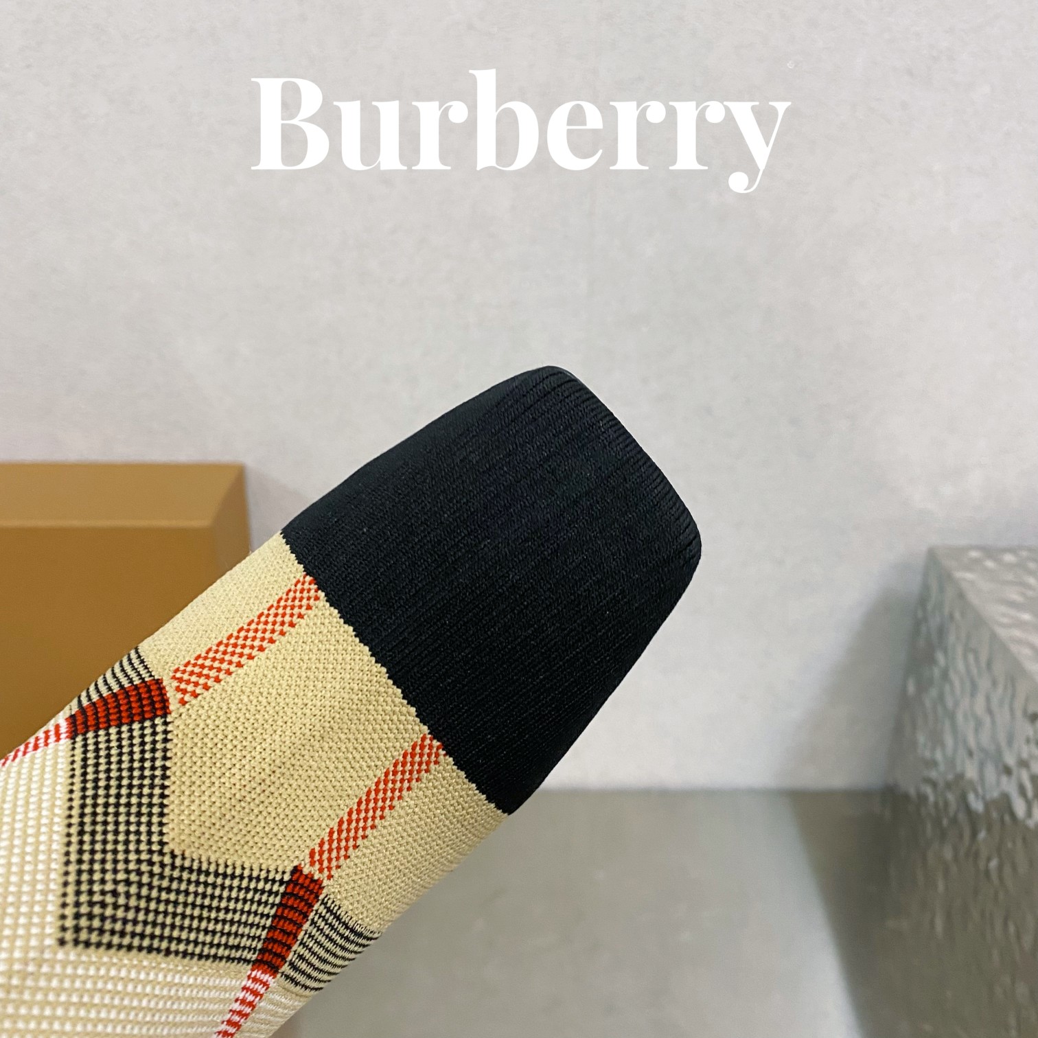 Burberryy Women Plaid Elastic Knit Hosiery Boots Size 35-41
