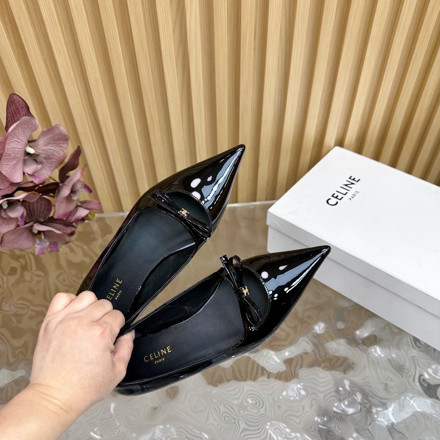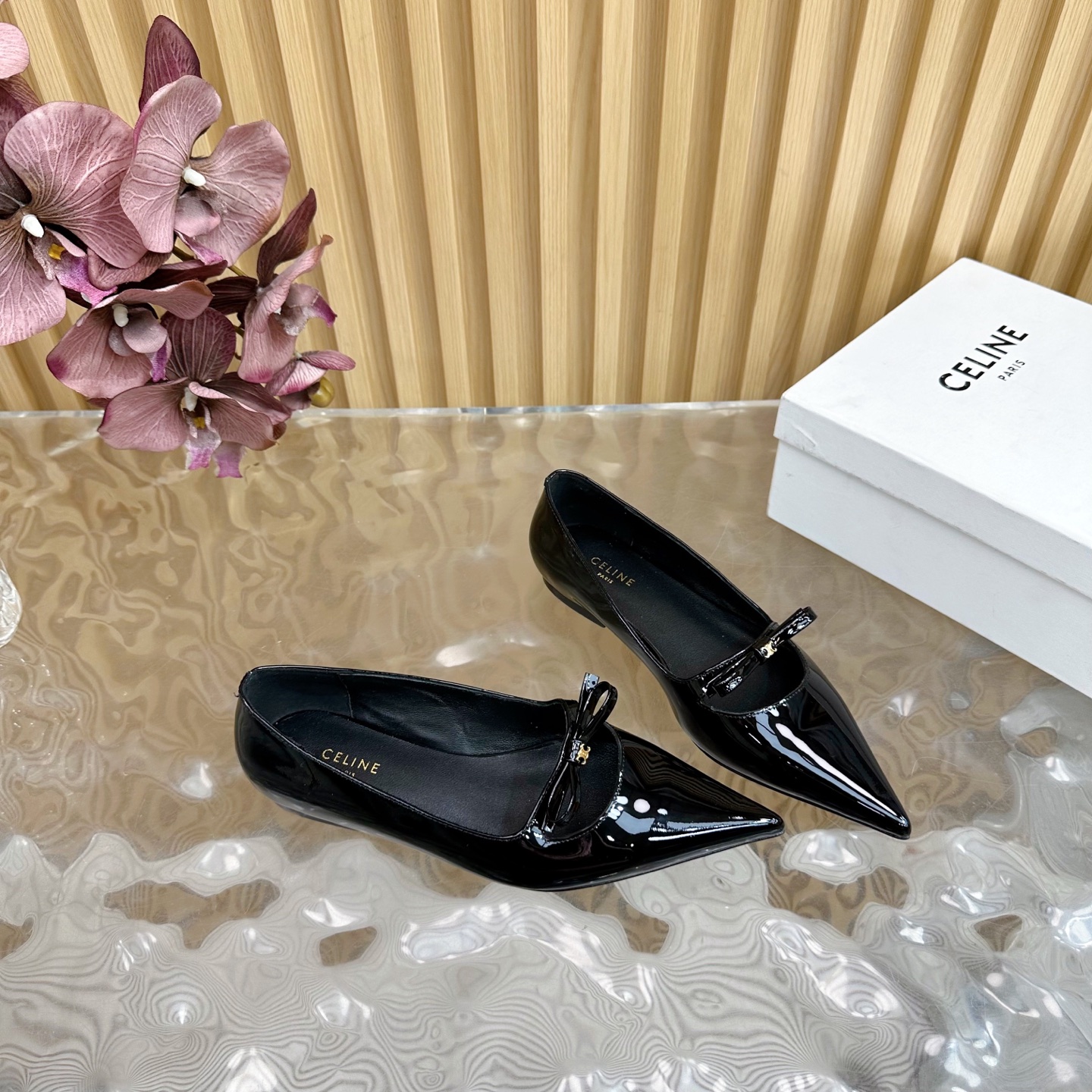 CELINE Retro Real Leather Pointed Toe Flats Size 35-41