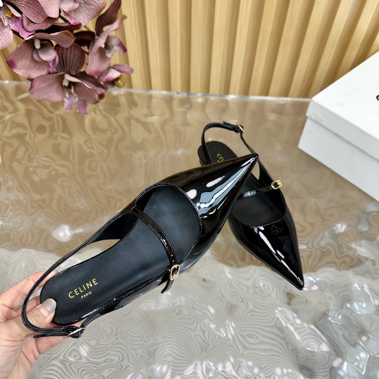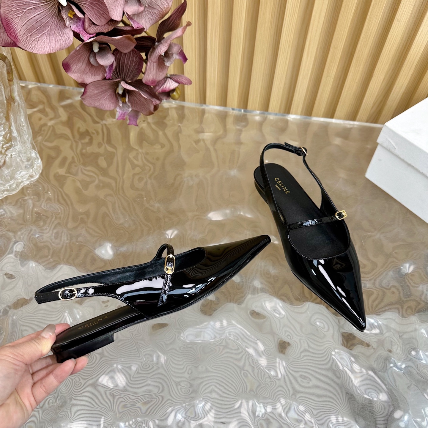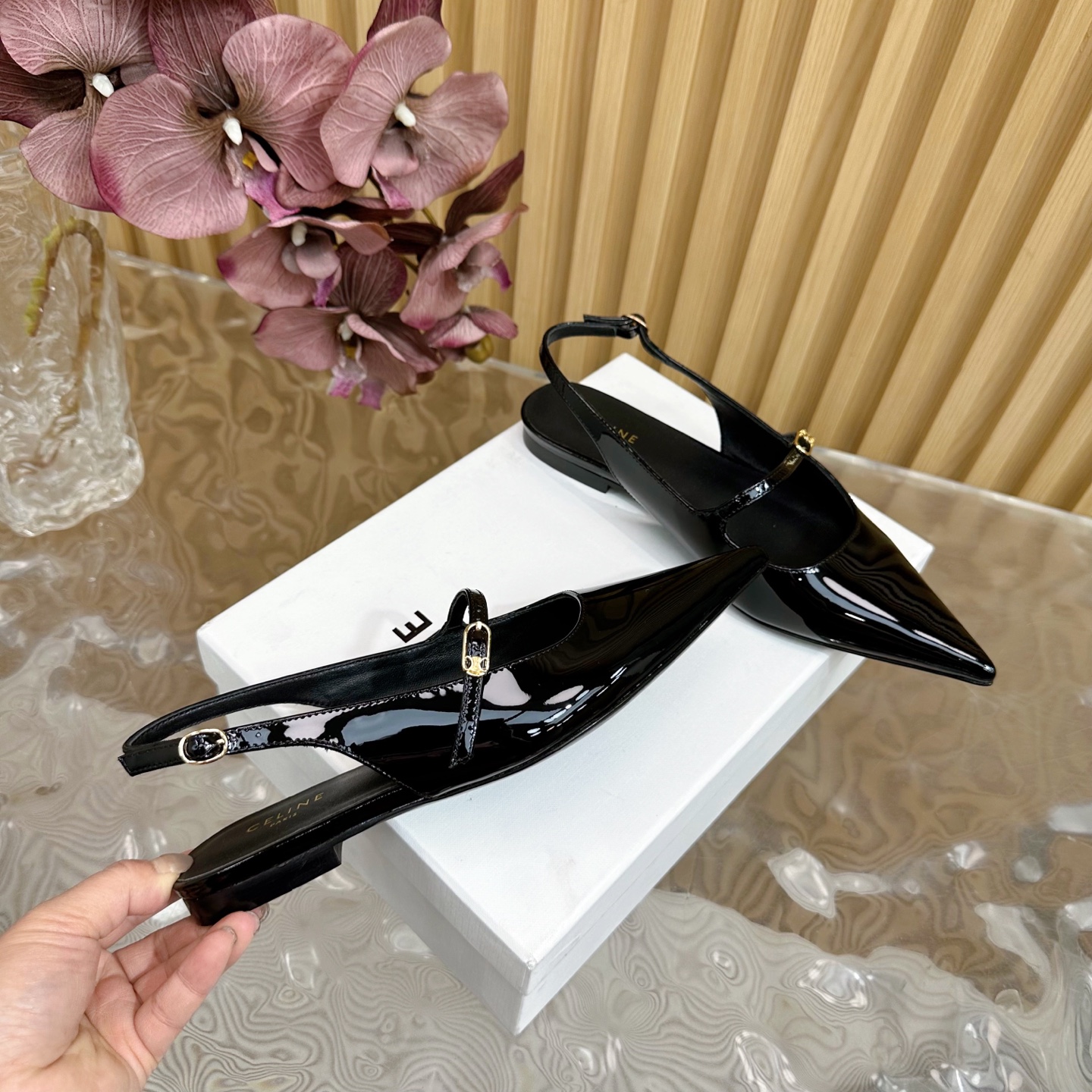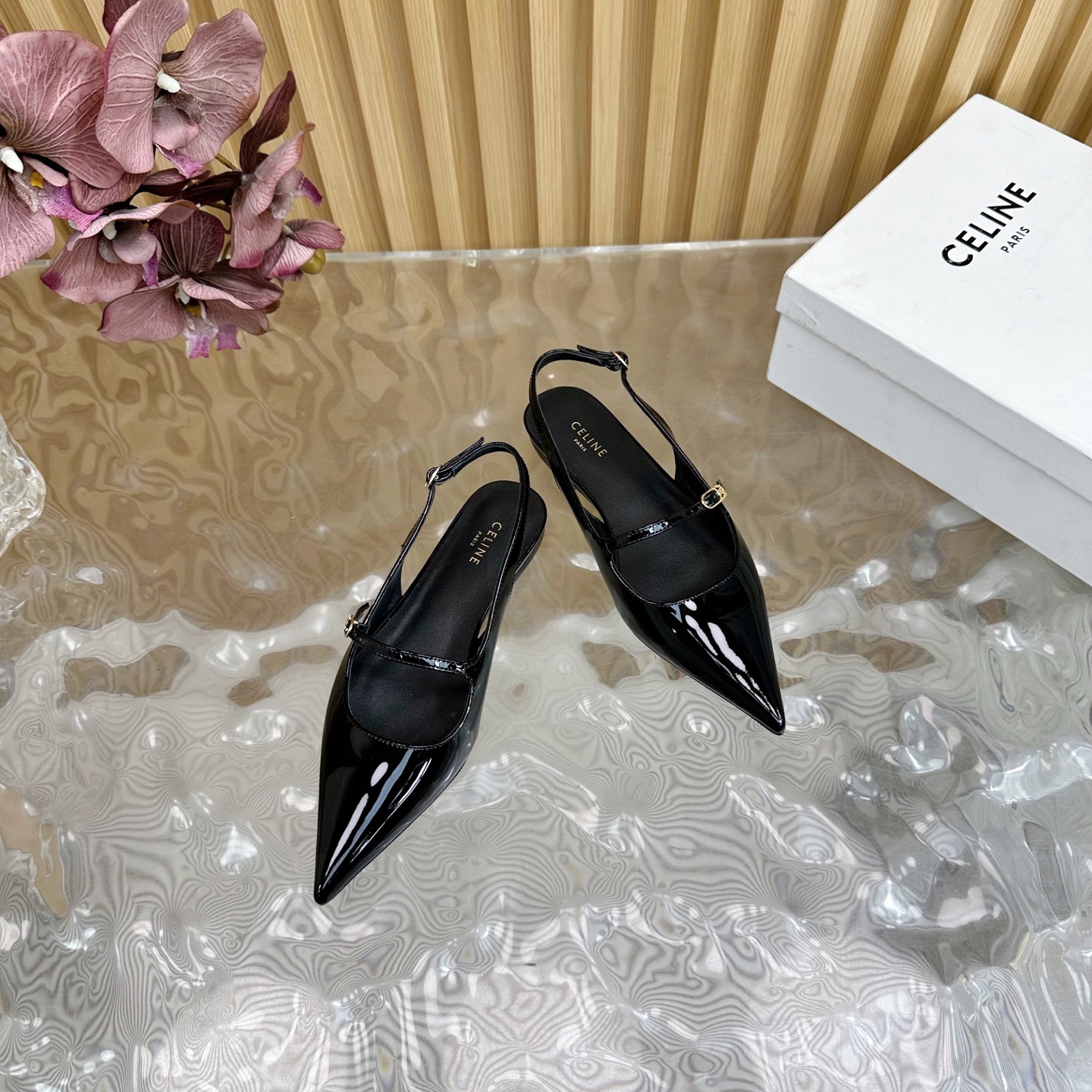 CELINE Retro Real Leather Pointed Toe Flats Size 35-41