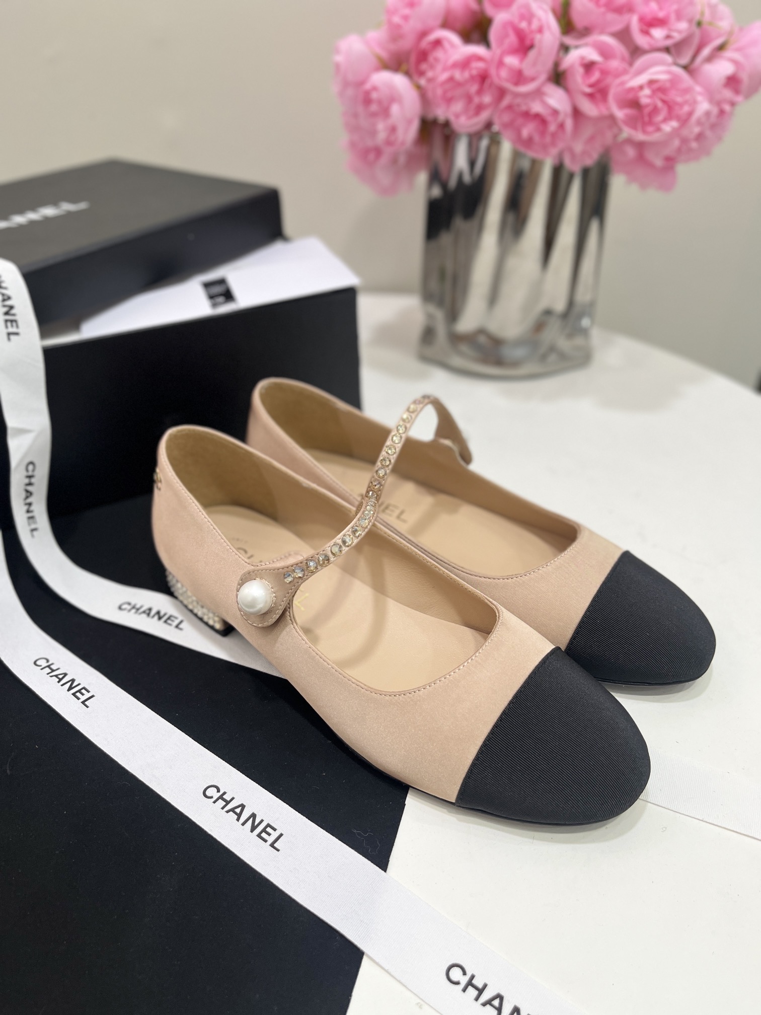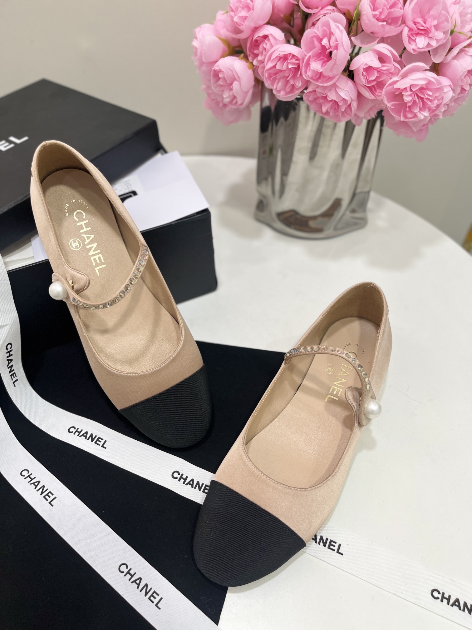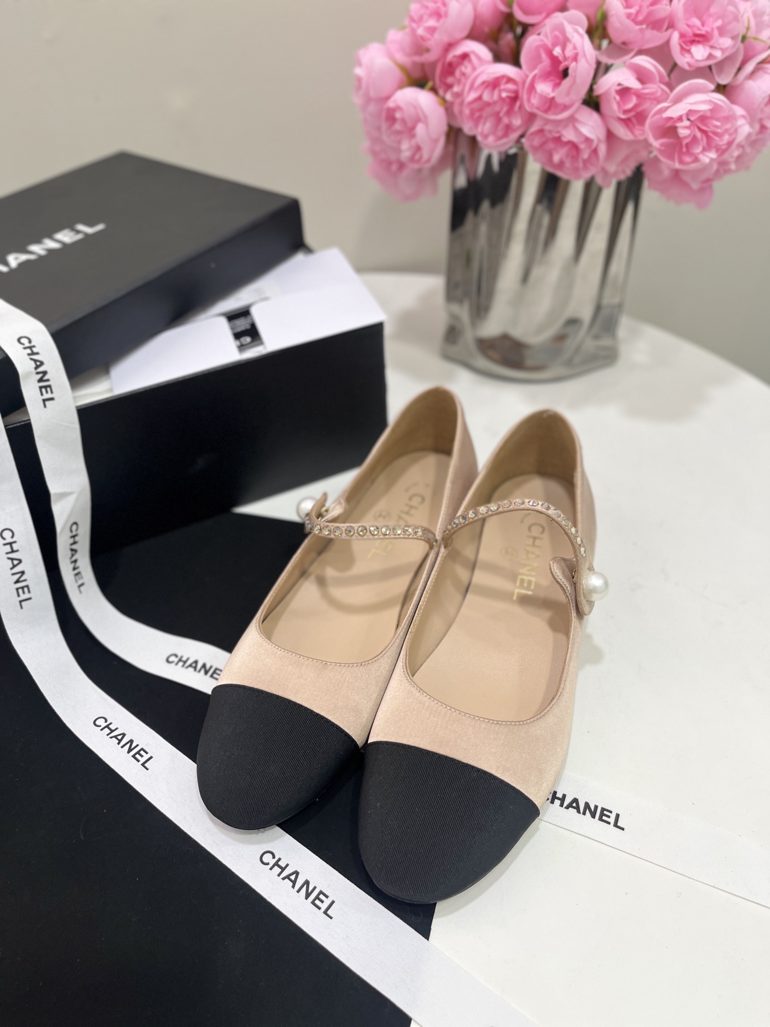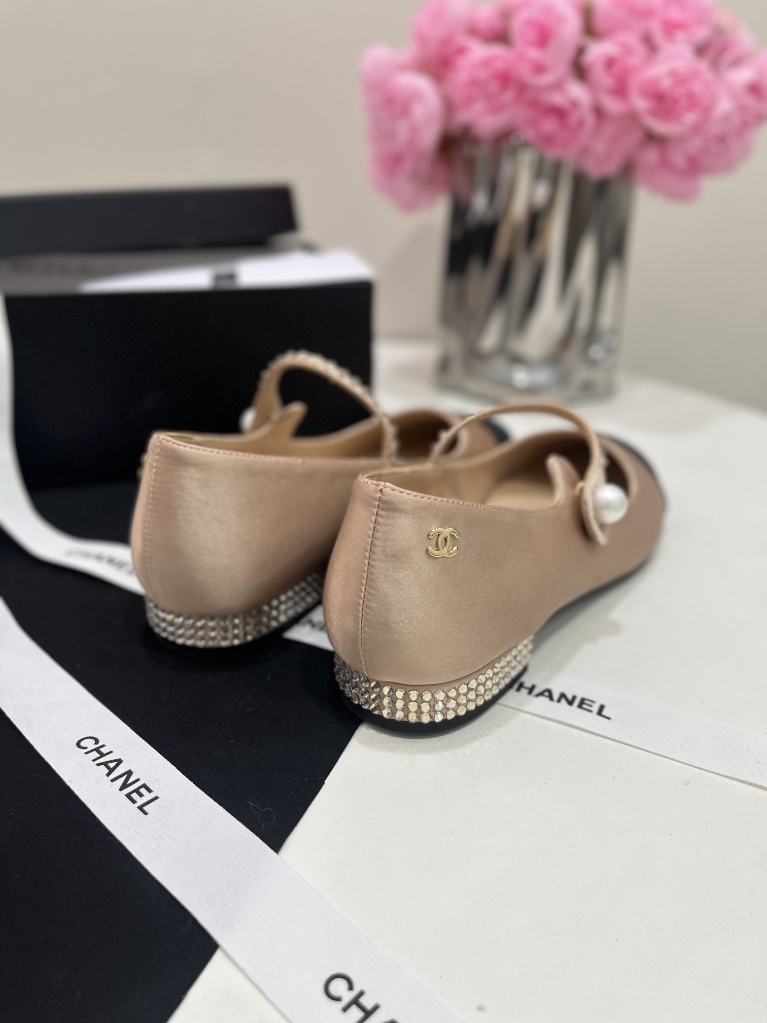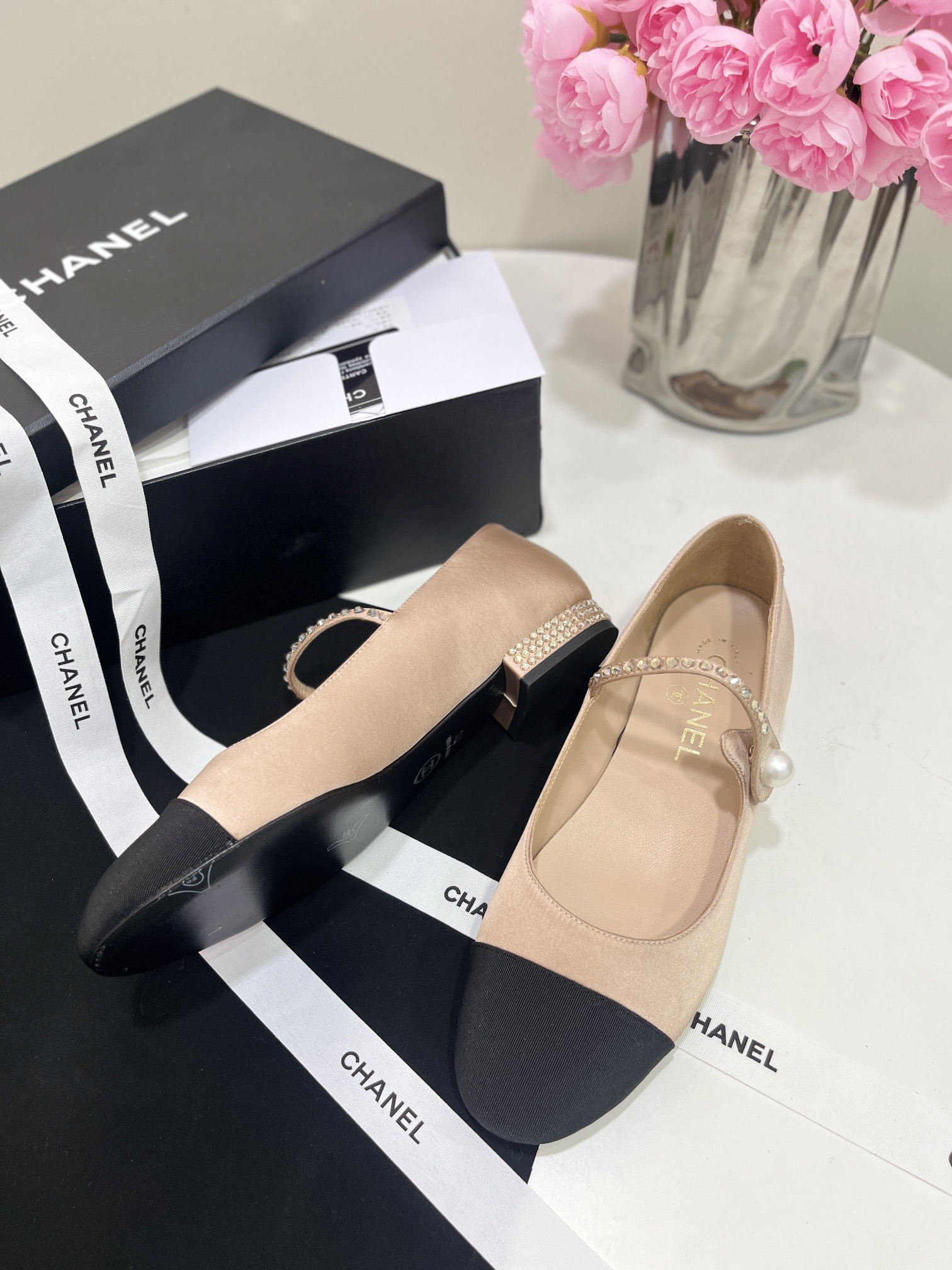 CHANEL Women Round Toe Pearl Flats Size 35-41