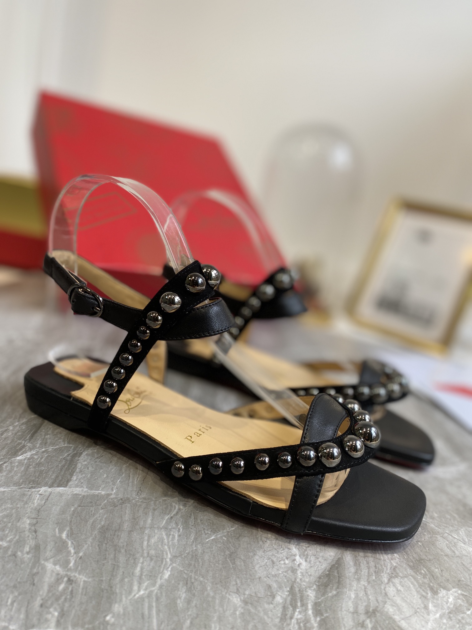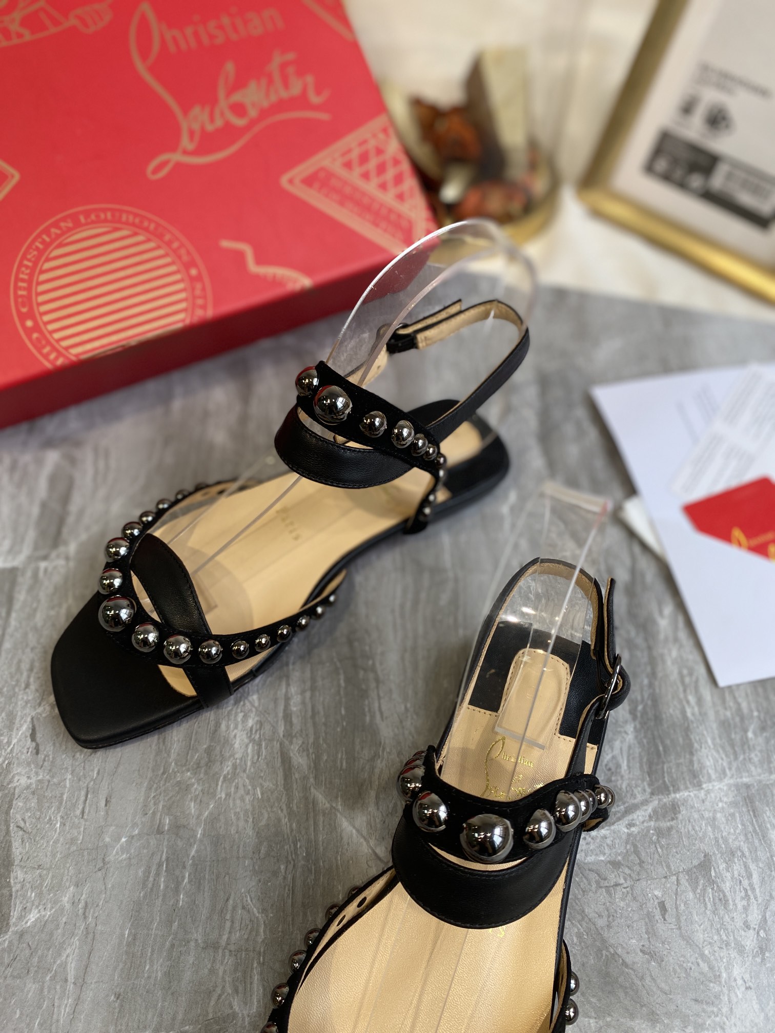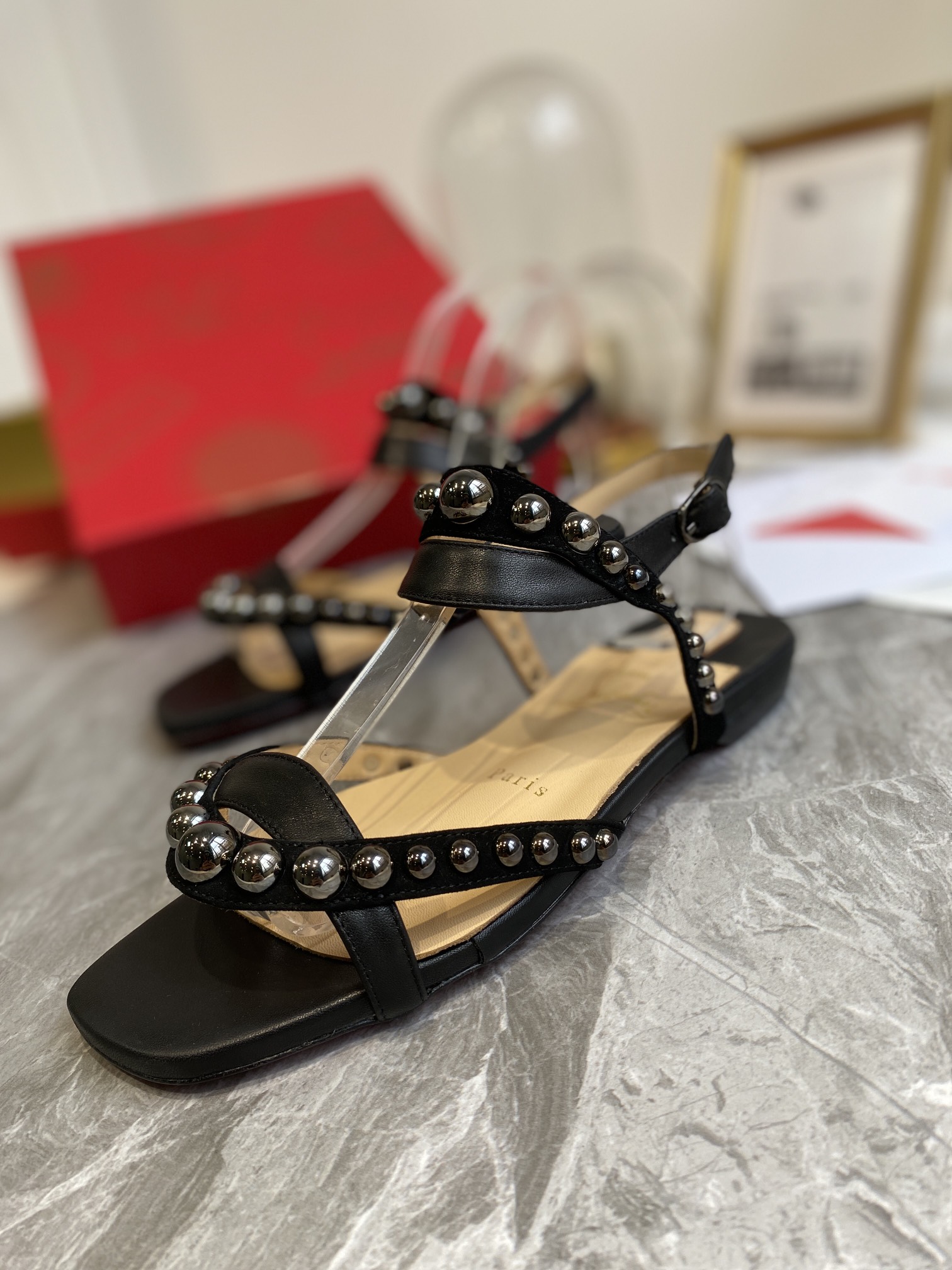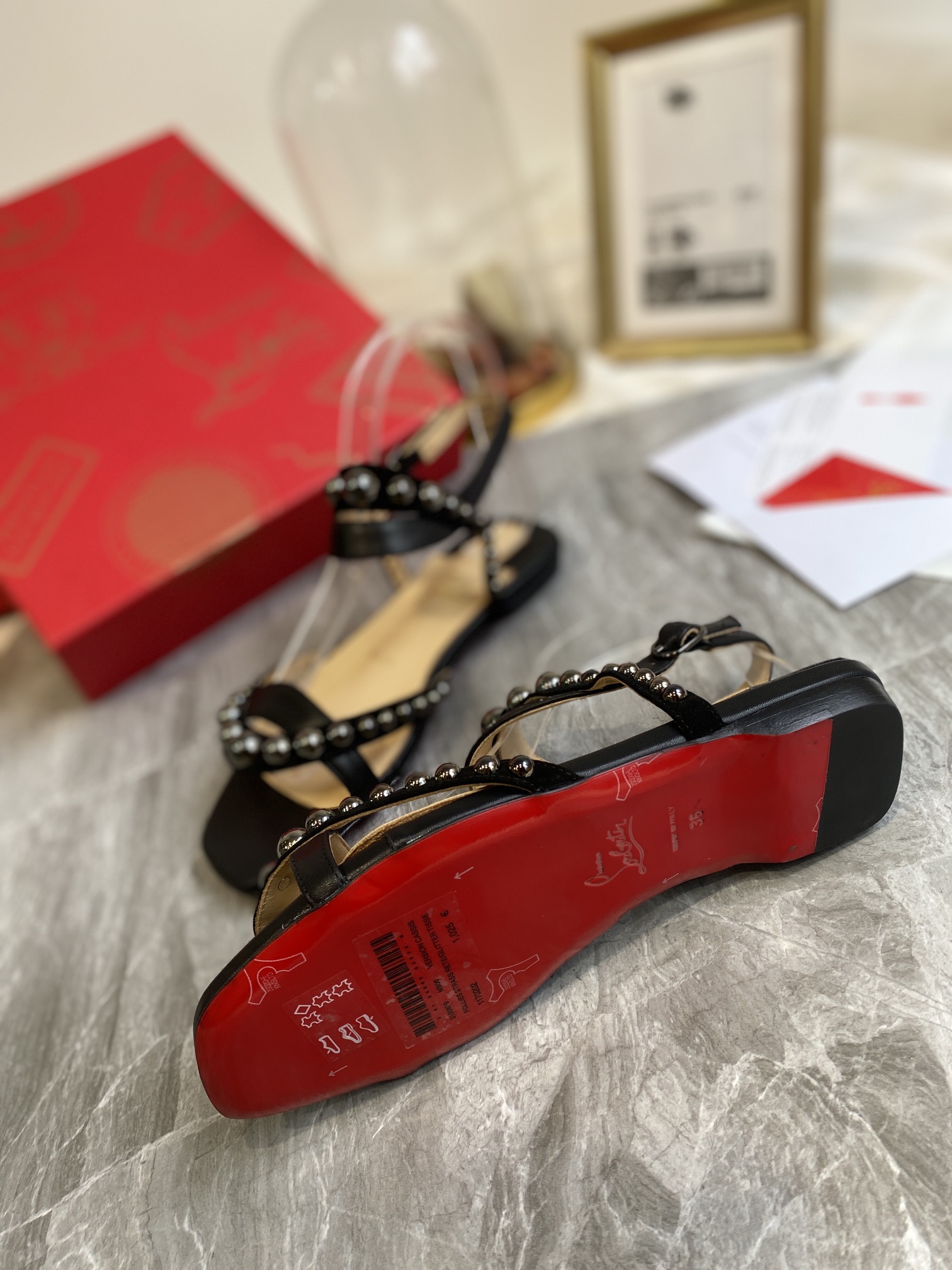 Christian Loubouti Classic Red Soled Flat Sandals With Two Beaded Nails Size 35-43