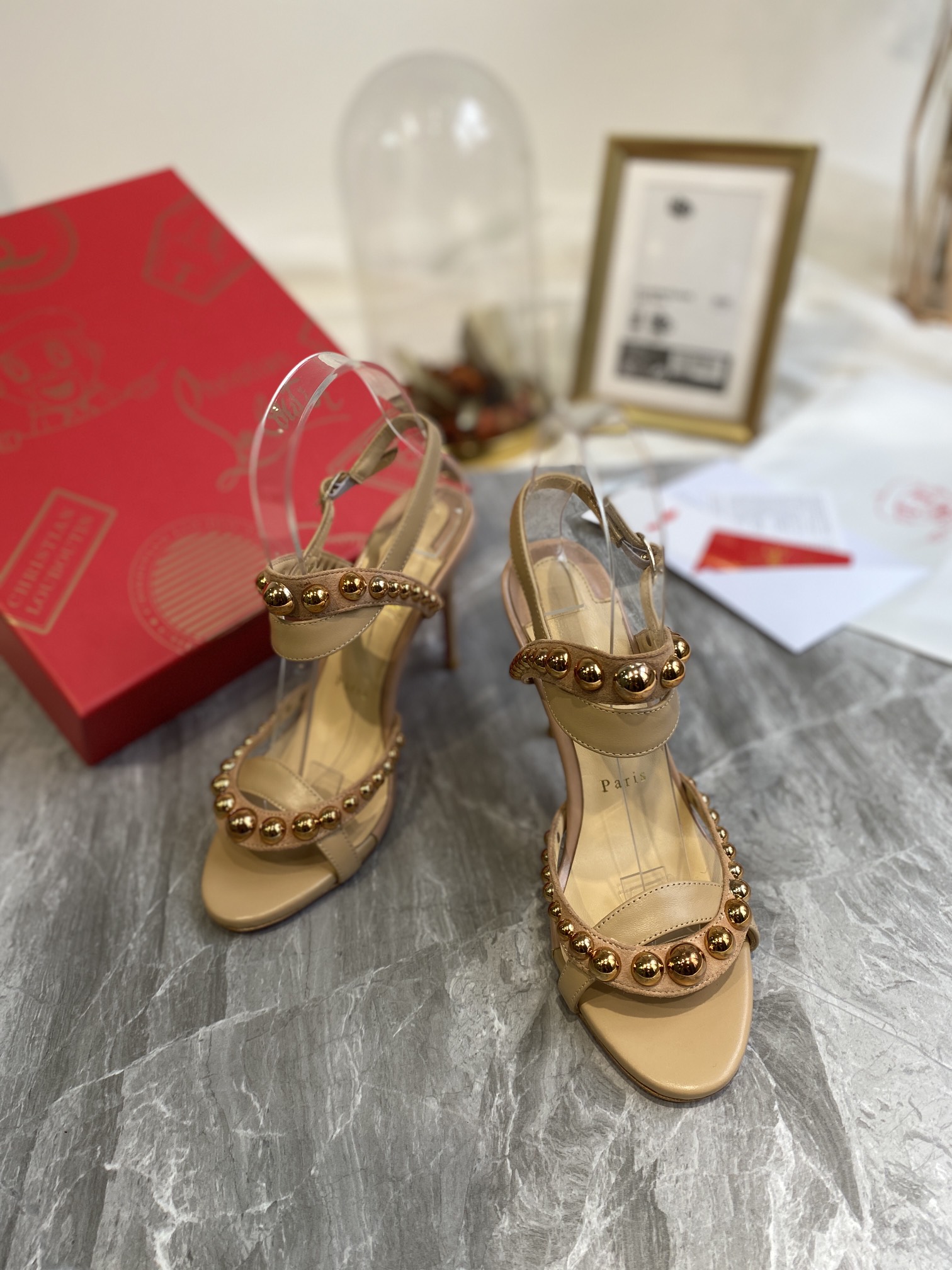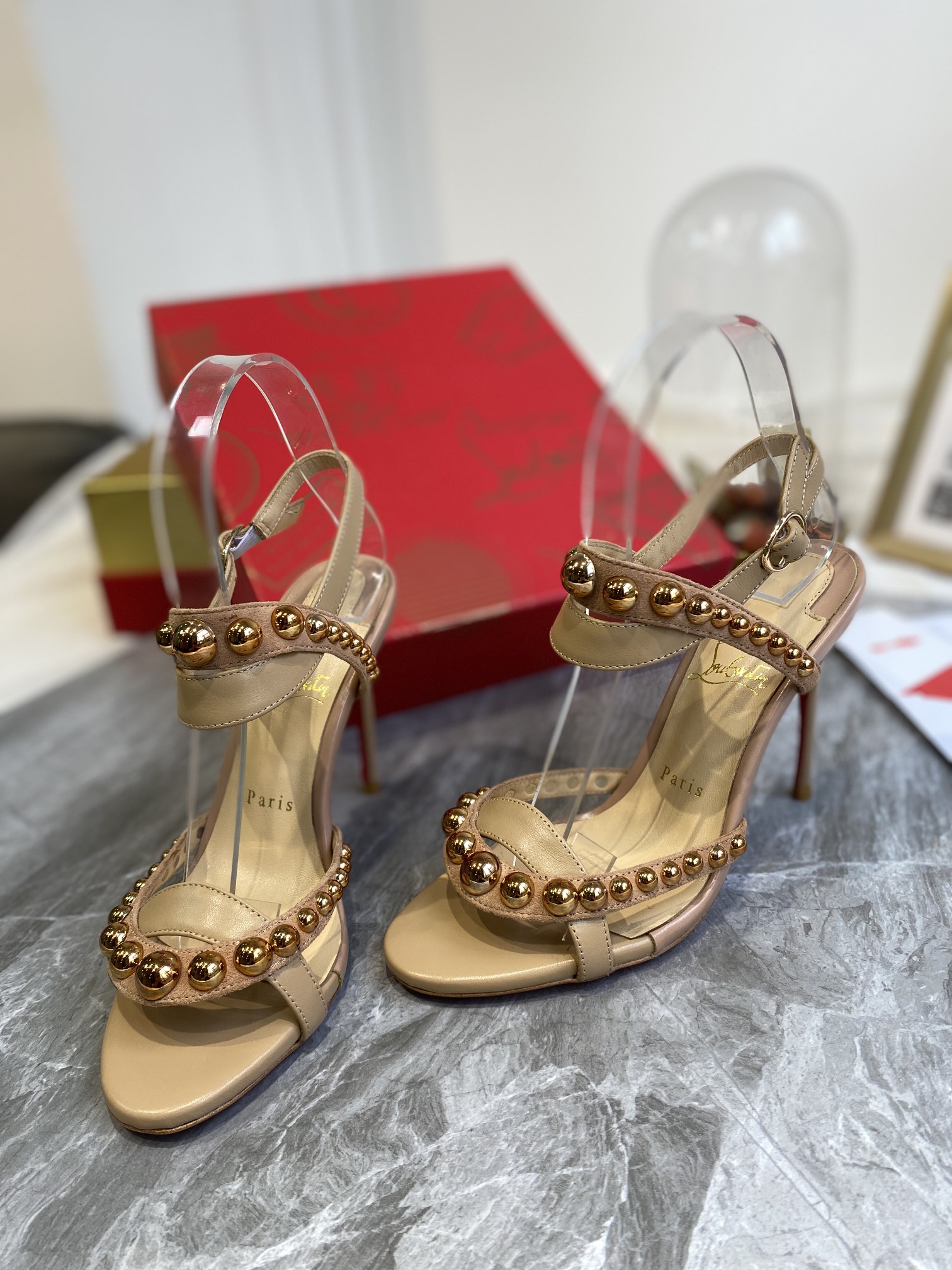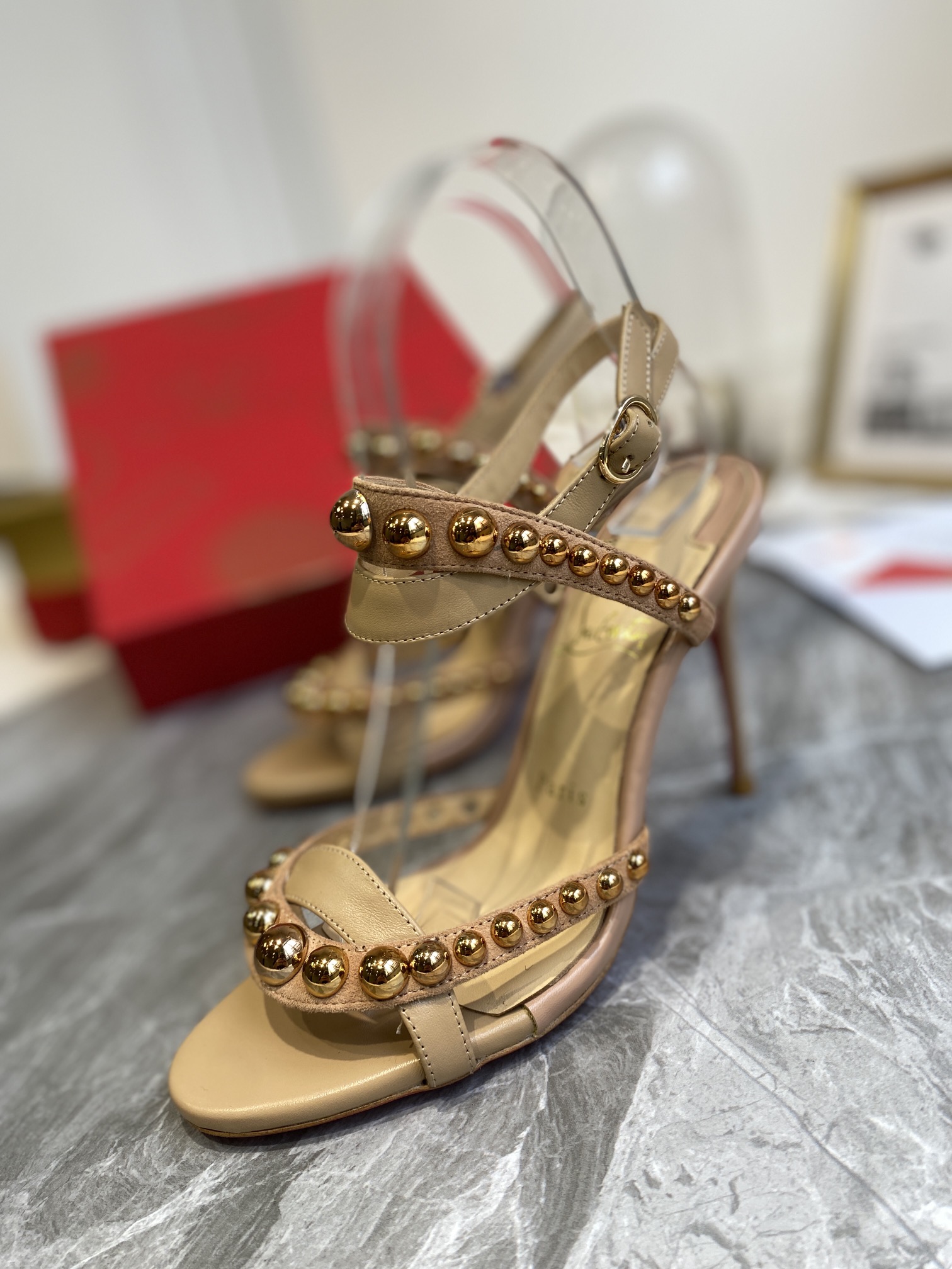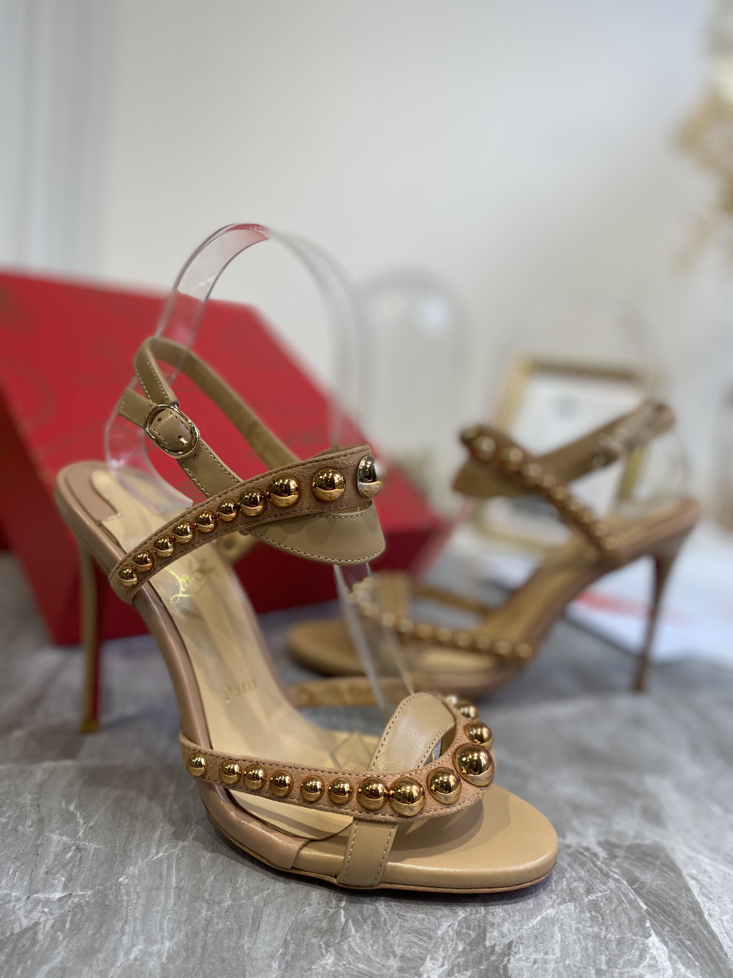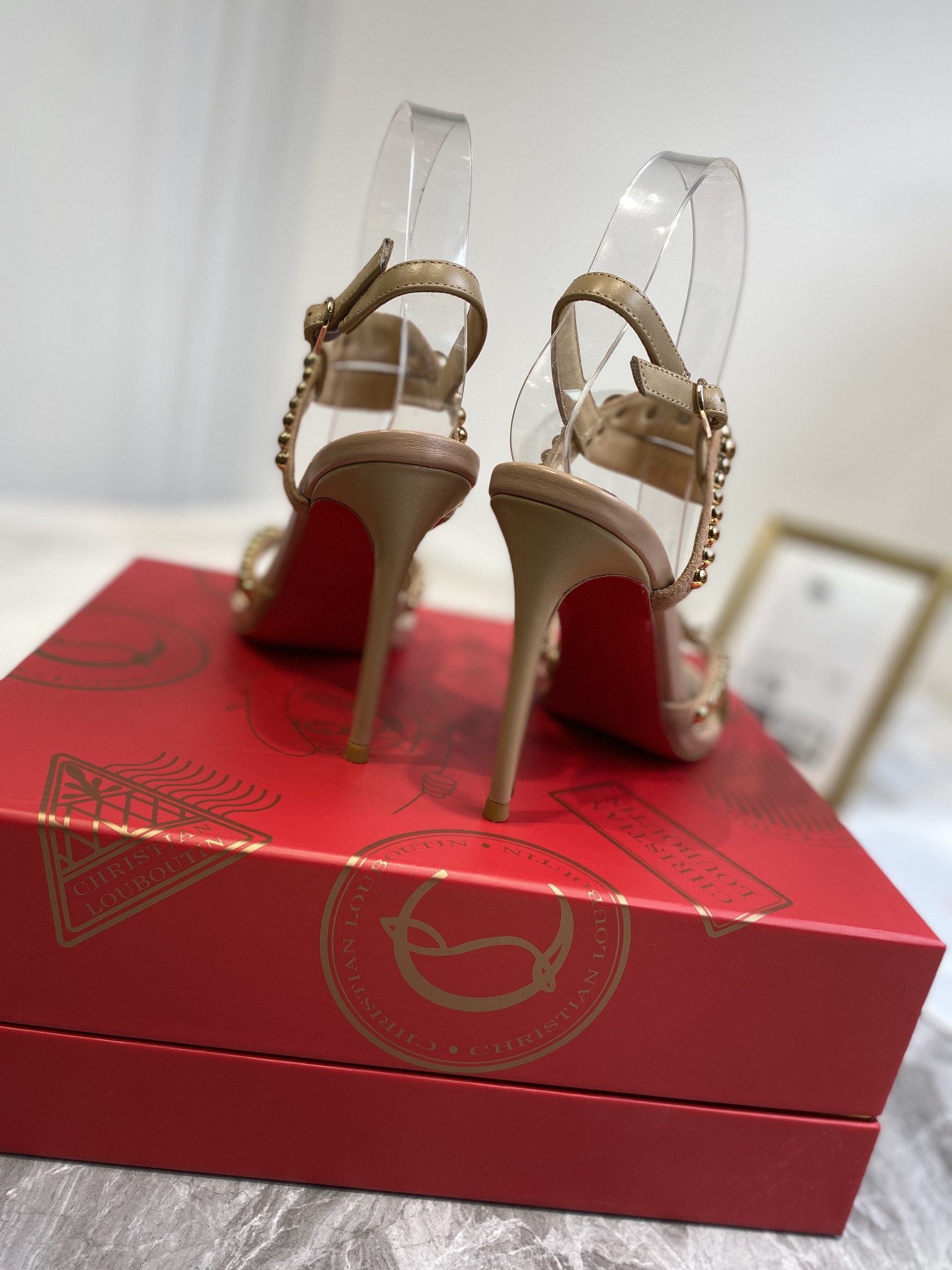 Christian Loubouti Classic Red Soled Flat Sandals With Two Beaded Nails Size 35-43