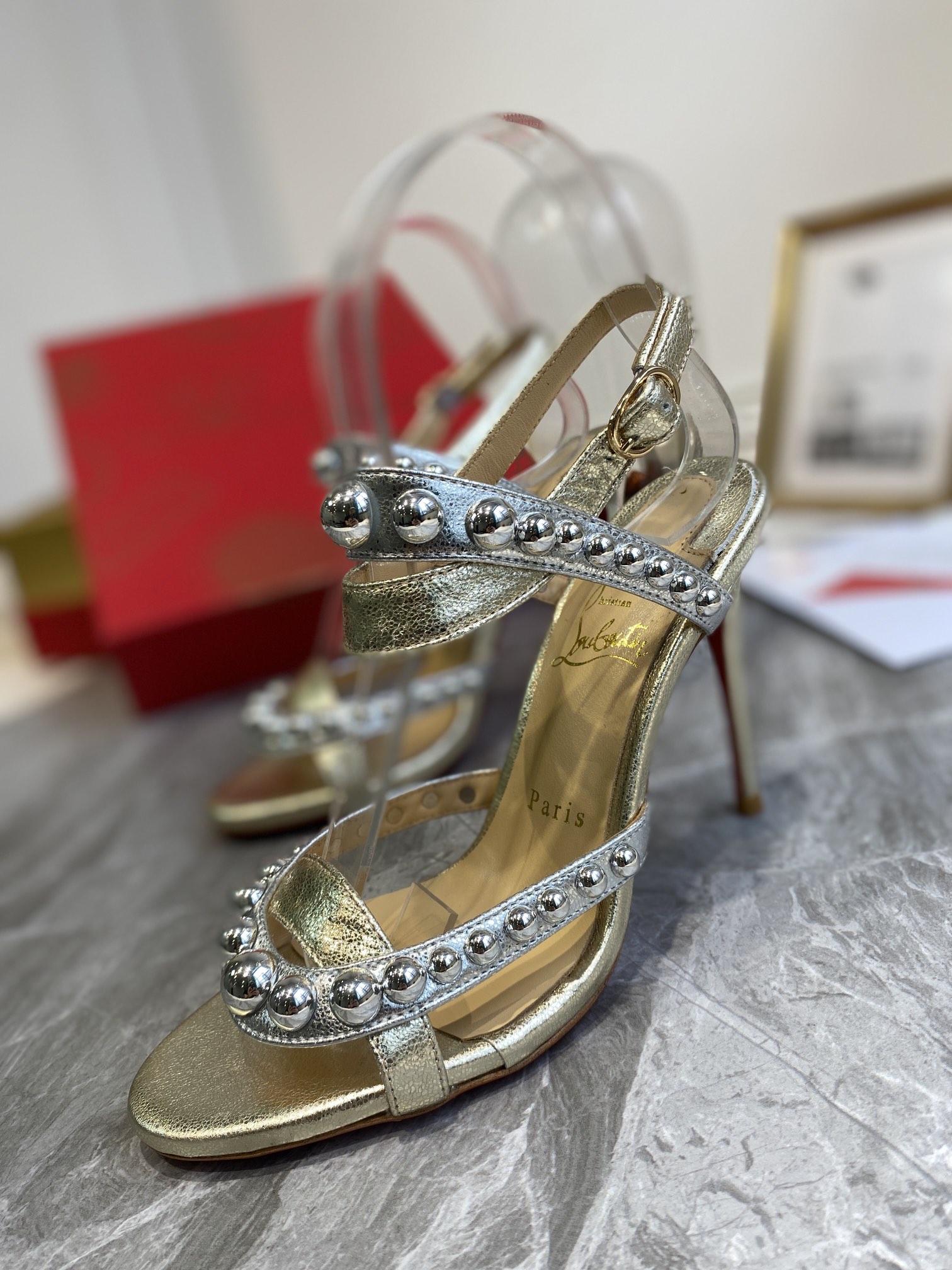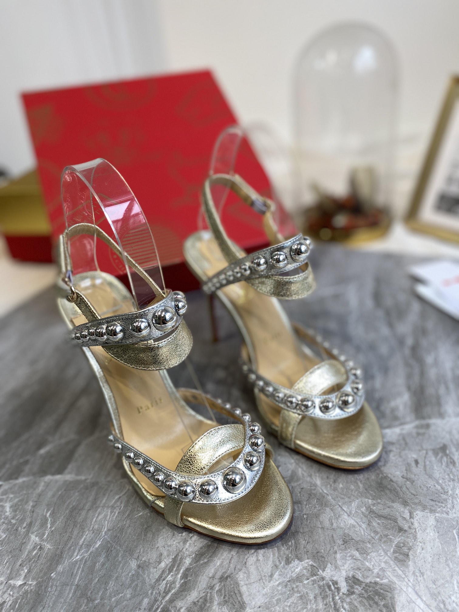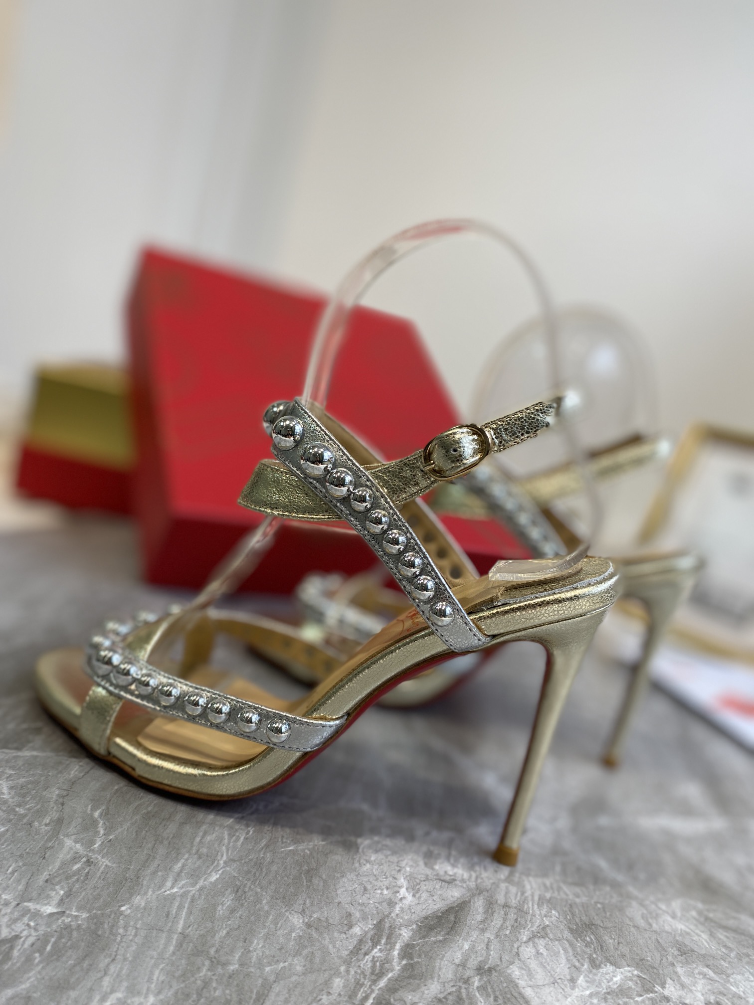 Christian Loubouti Classic Red Soled Flat Sandals With Two Beaded Nails Size 35-43