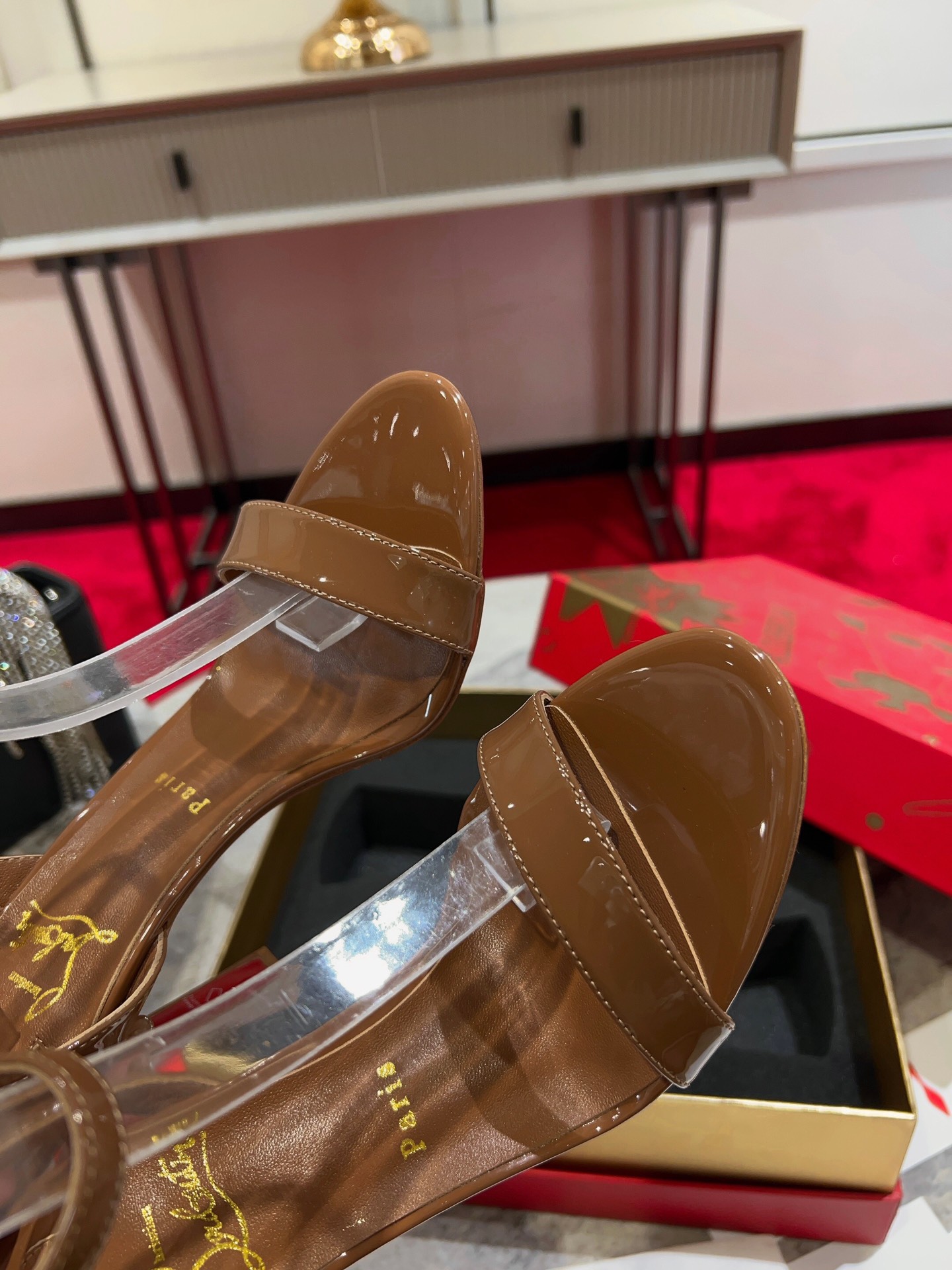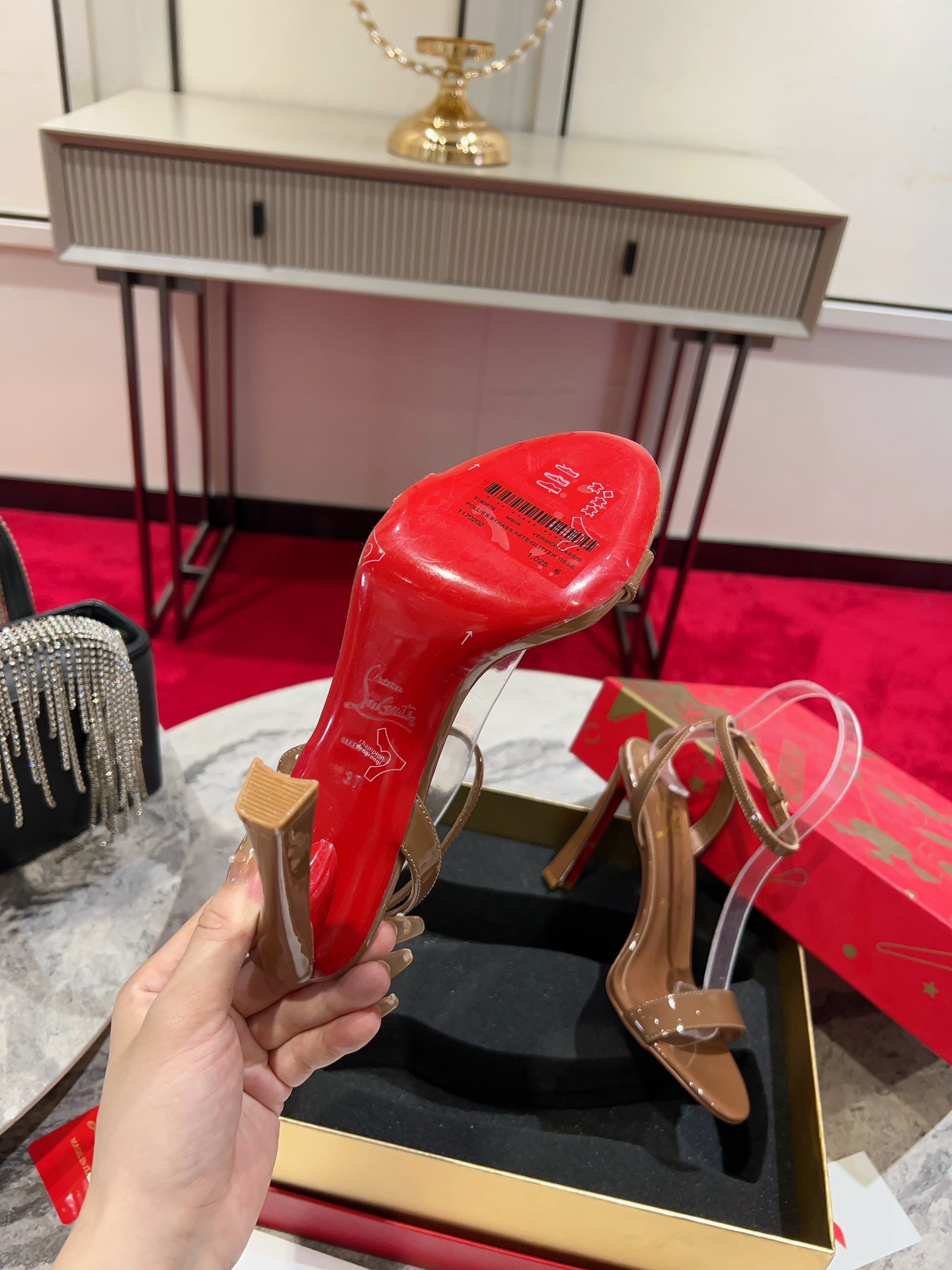 Christian Loubouti Classic Red Soled High Heel Round Head One Line Back Empty Sandals Size 35-44