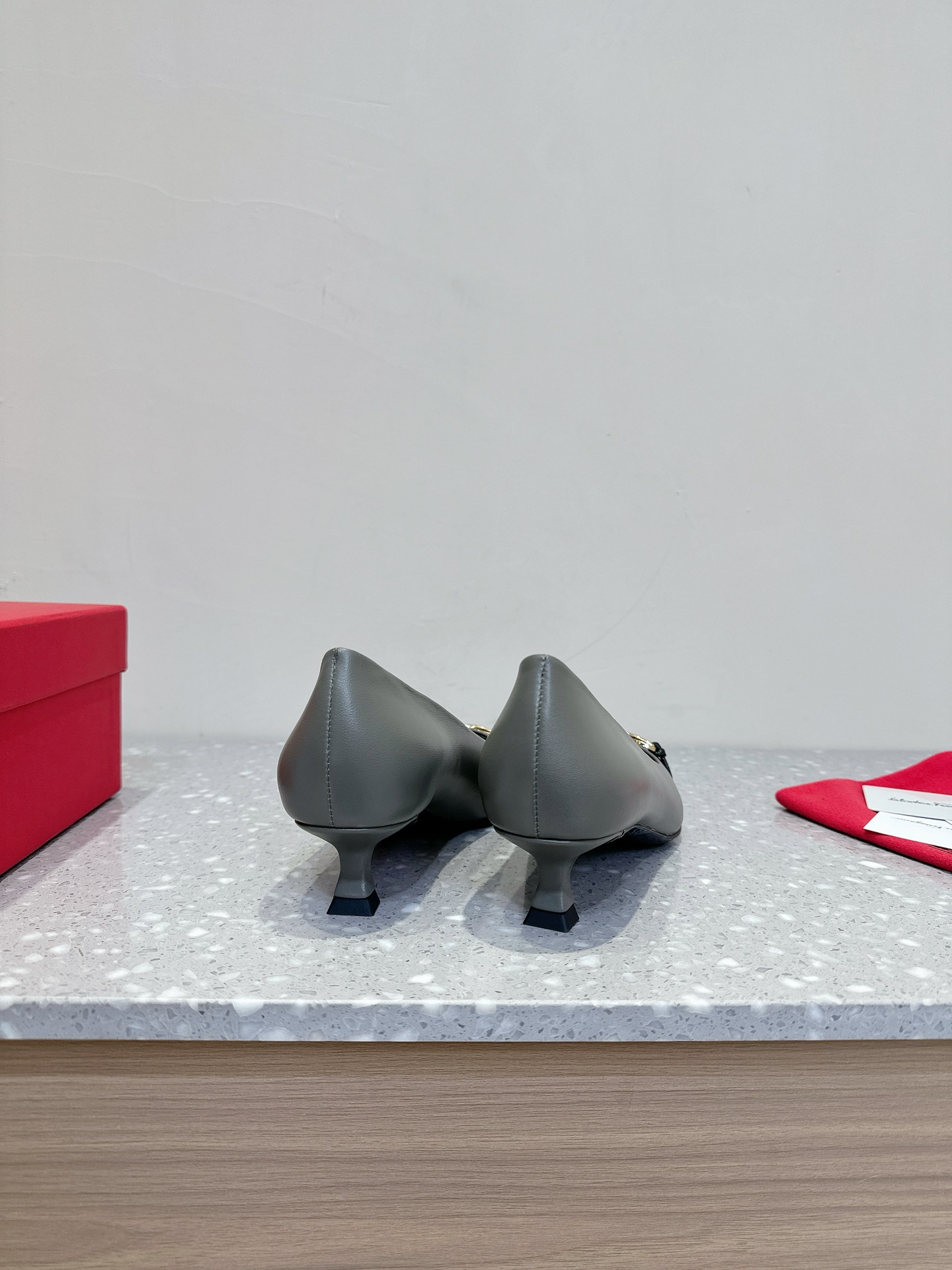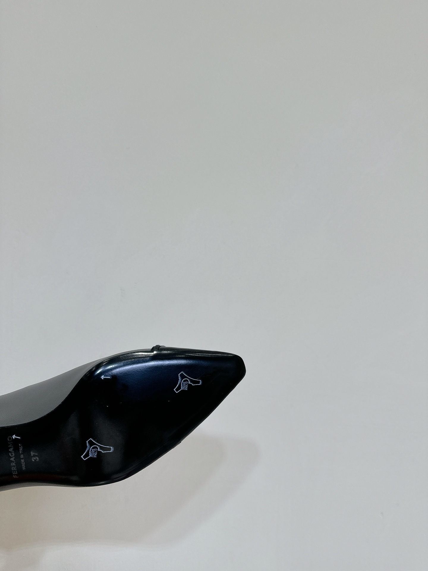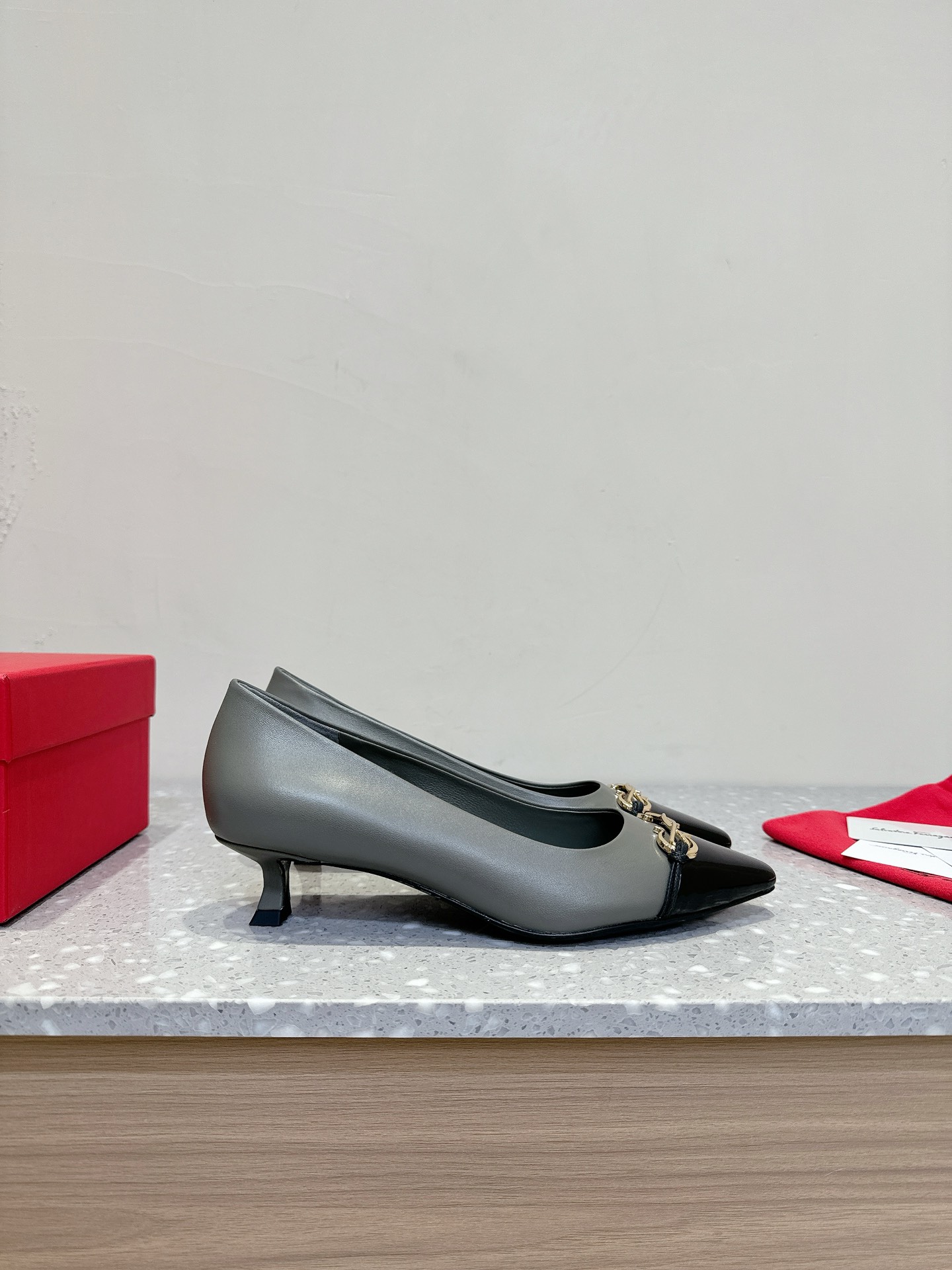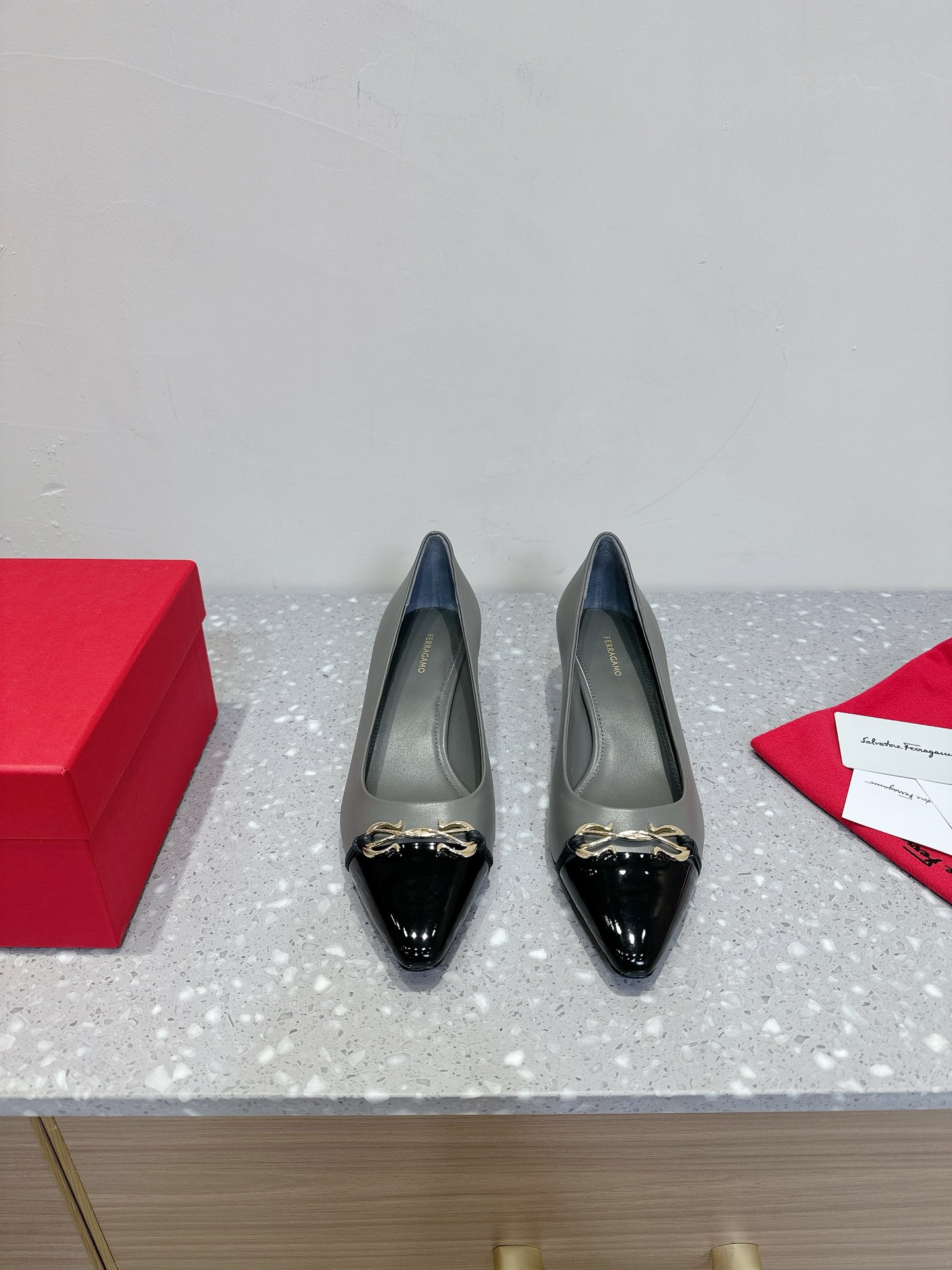 Ferragamo New Hardware Cat Thick Heels Patent Leather Shoes Size35-40