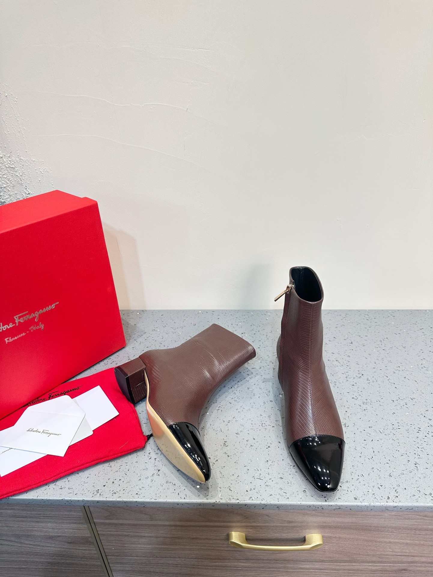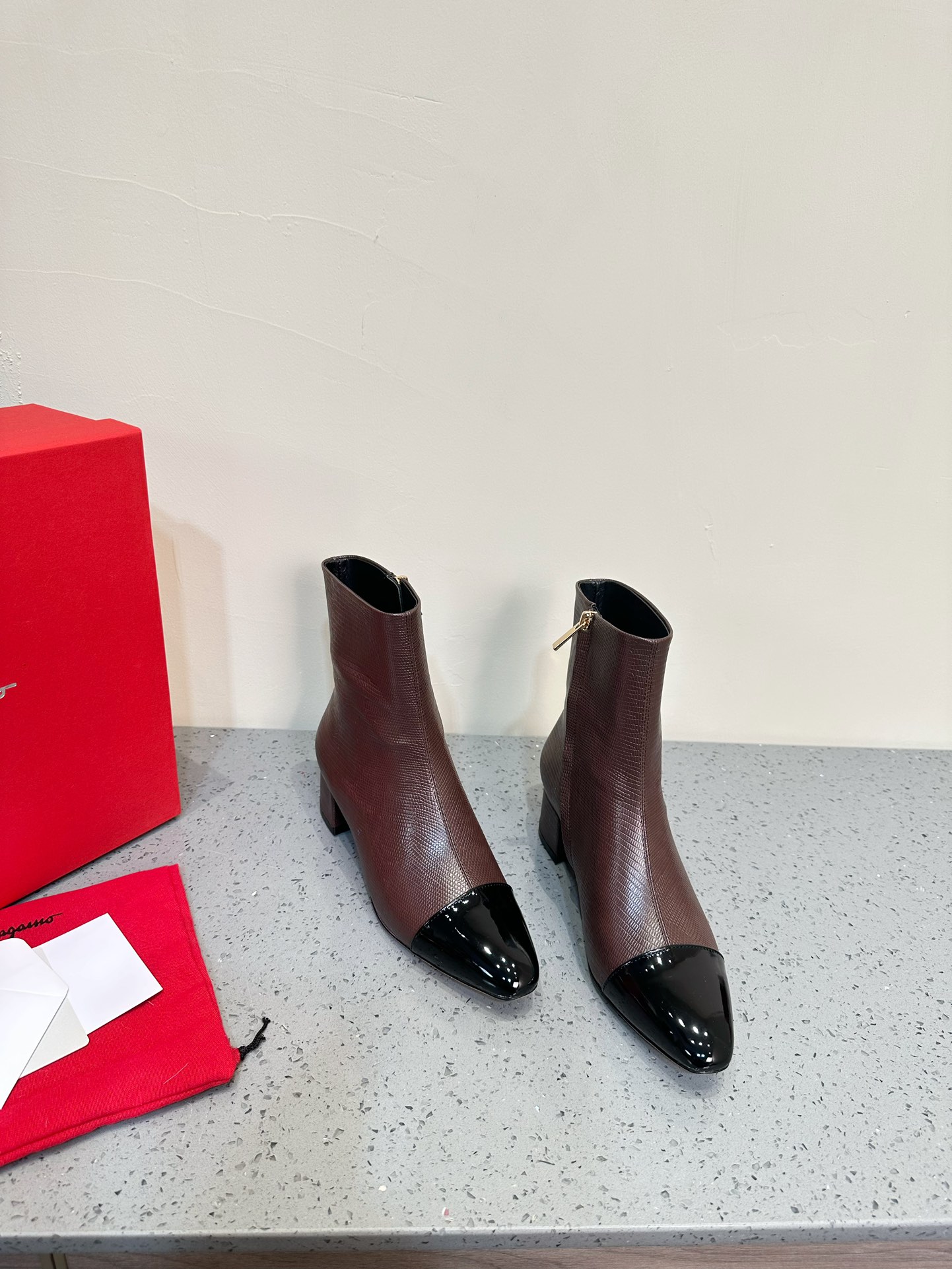 Ferragamo Side Zipper Chunky Ankle Boots Size35-40