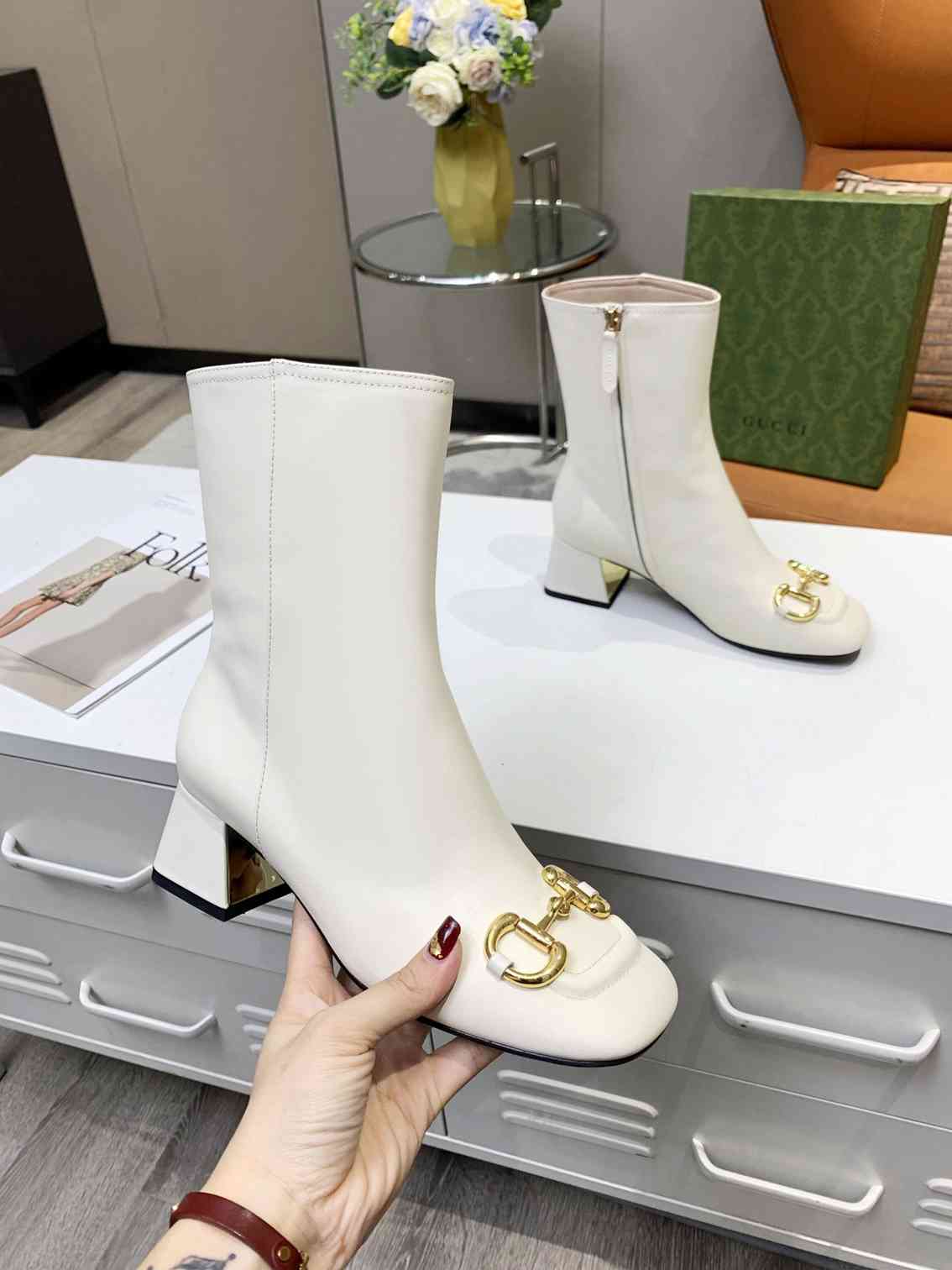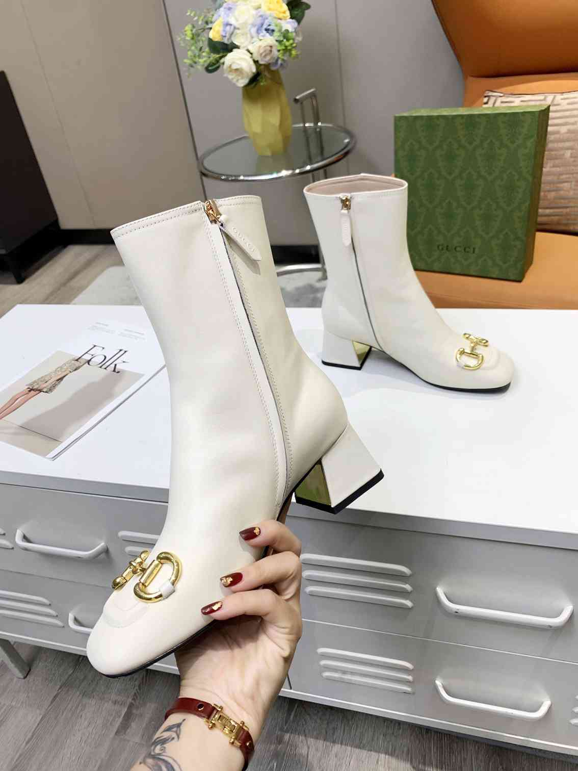 GUCCI Fashion Square Toe Ankle Boots Size 35—41
