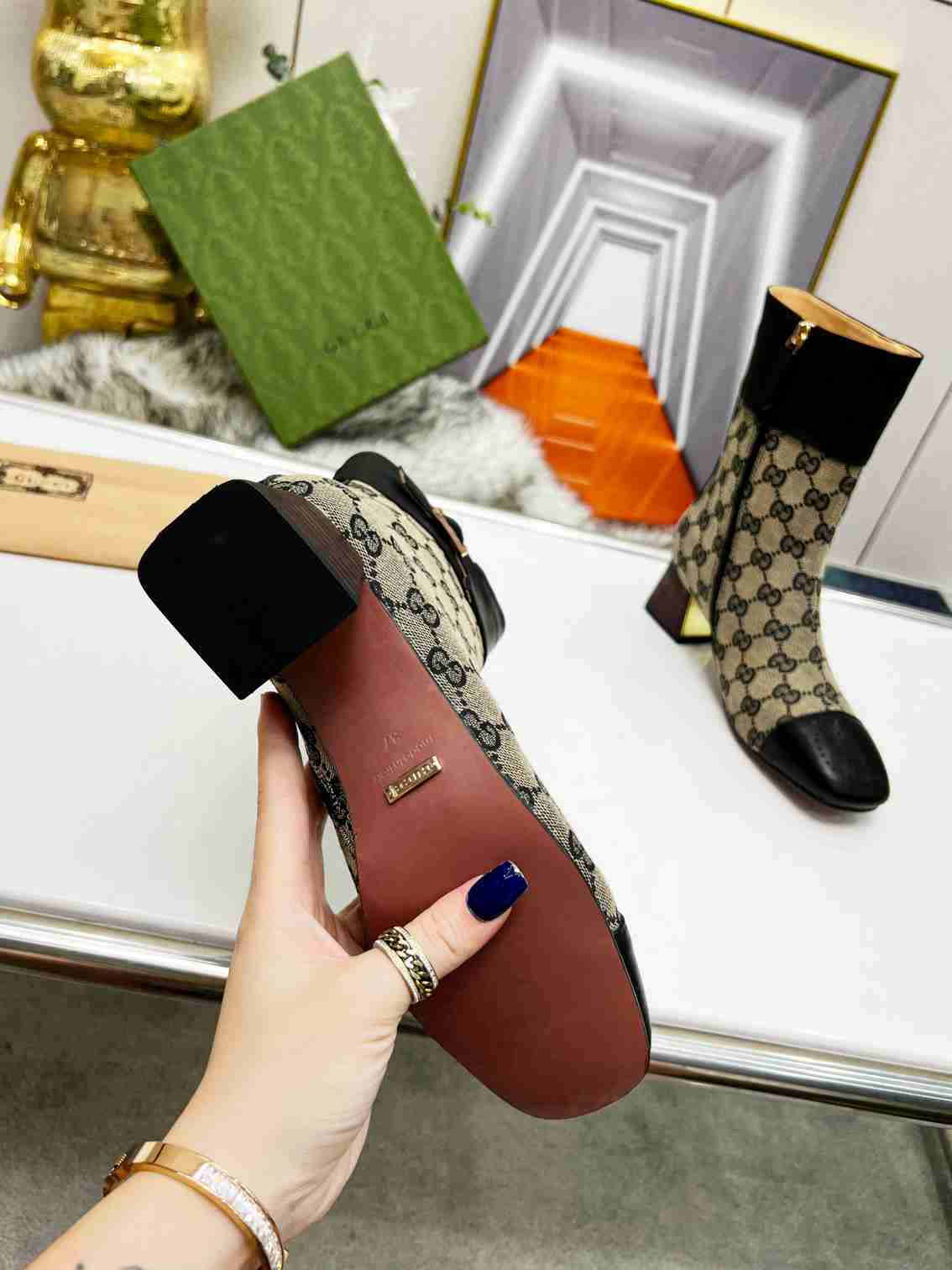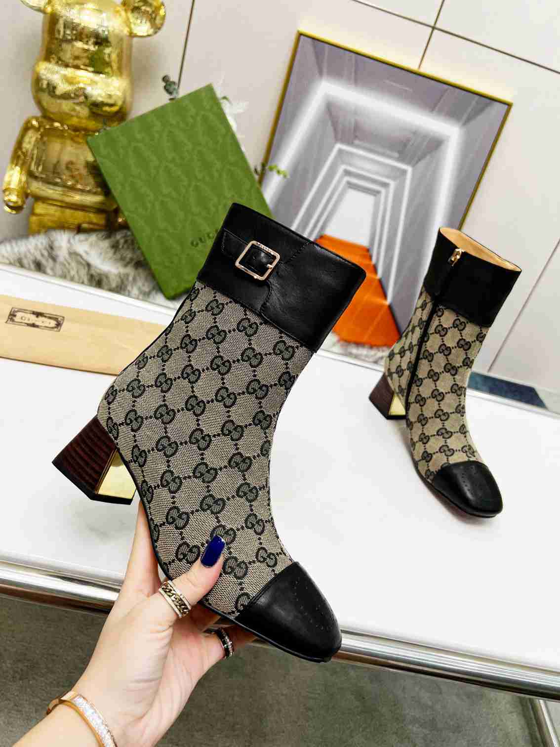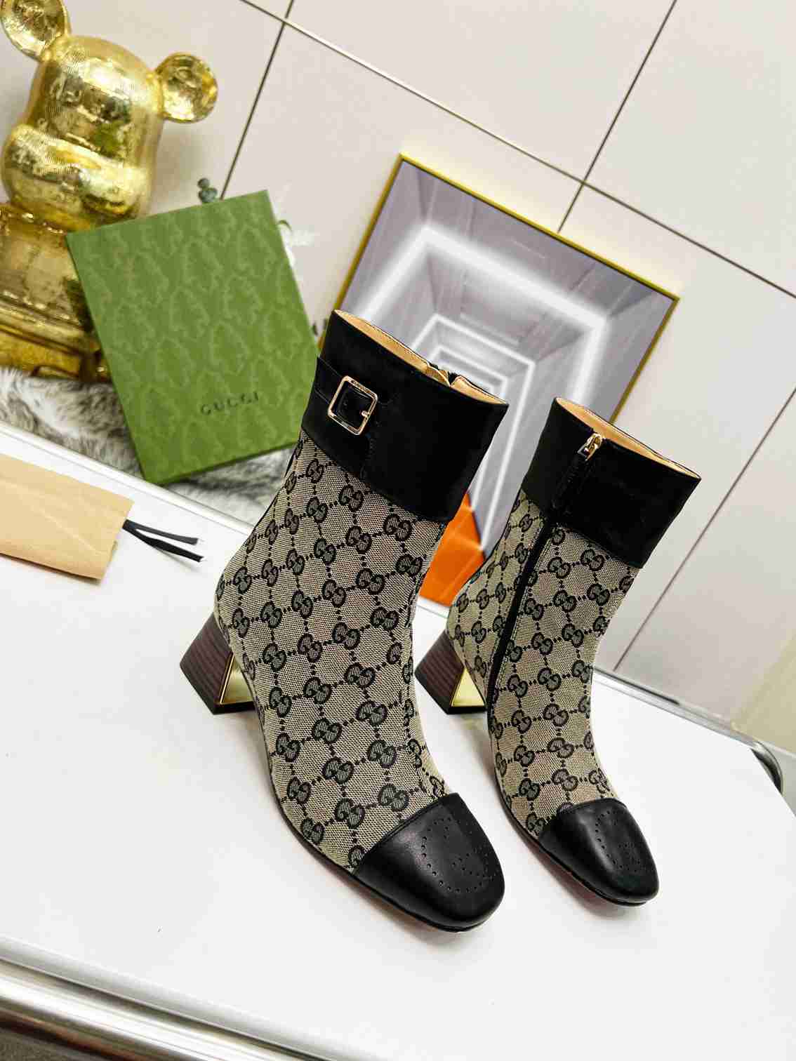 GUCCI Fashion Metal Buckle Chunky Ankle Boots Size 35—42