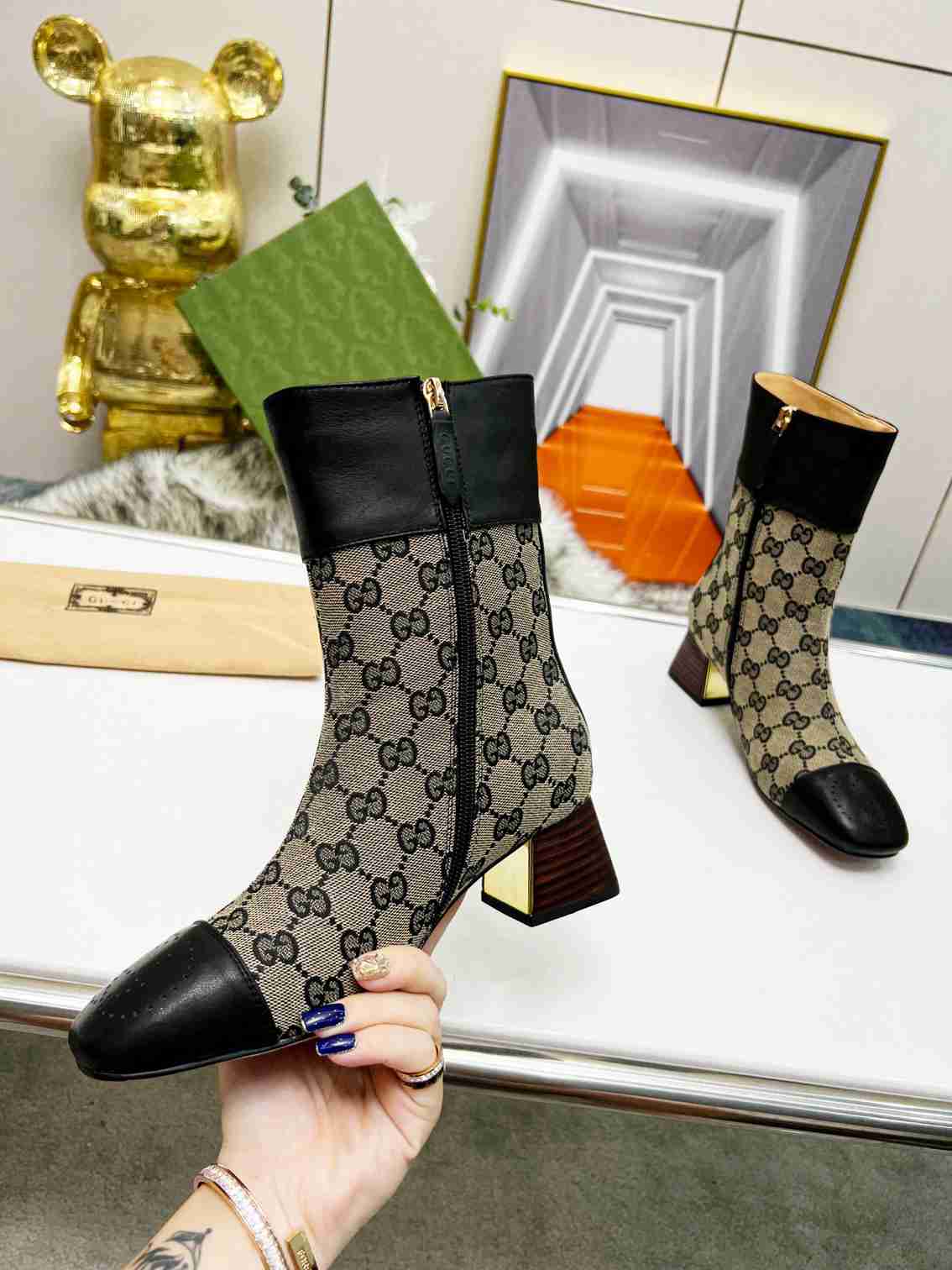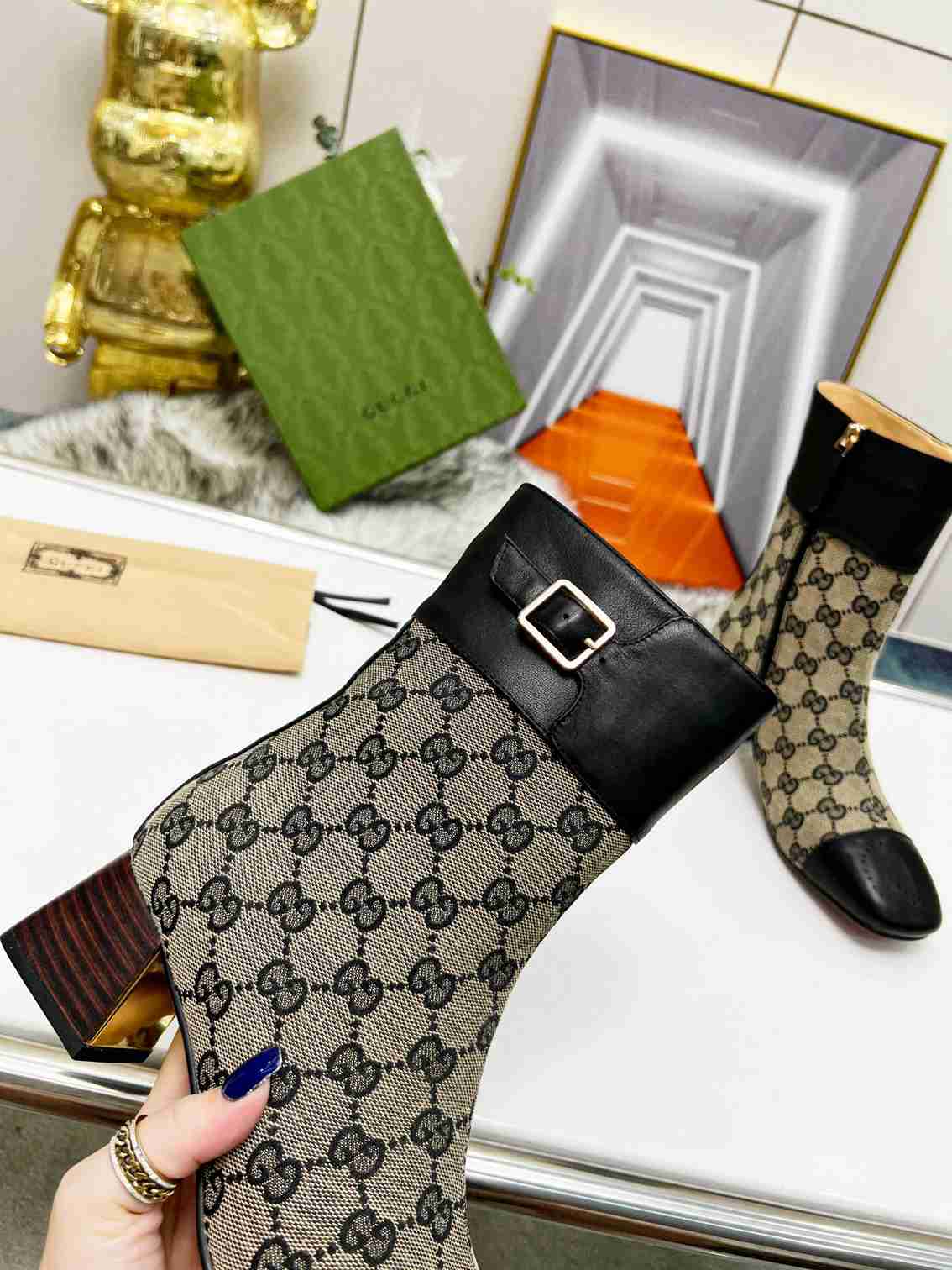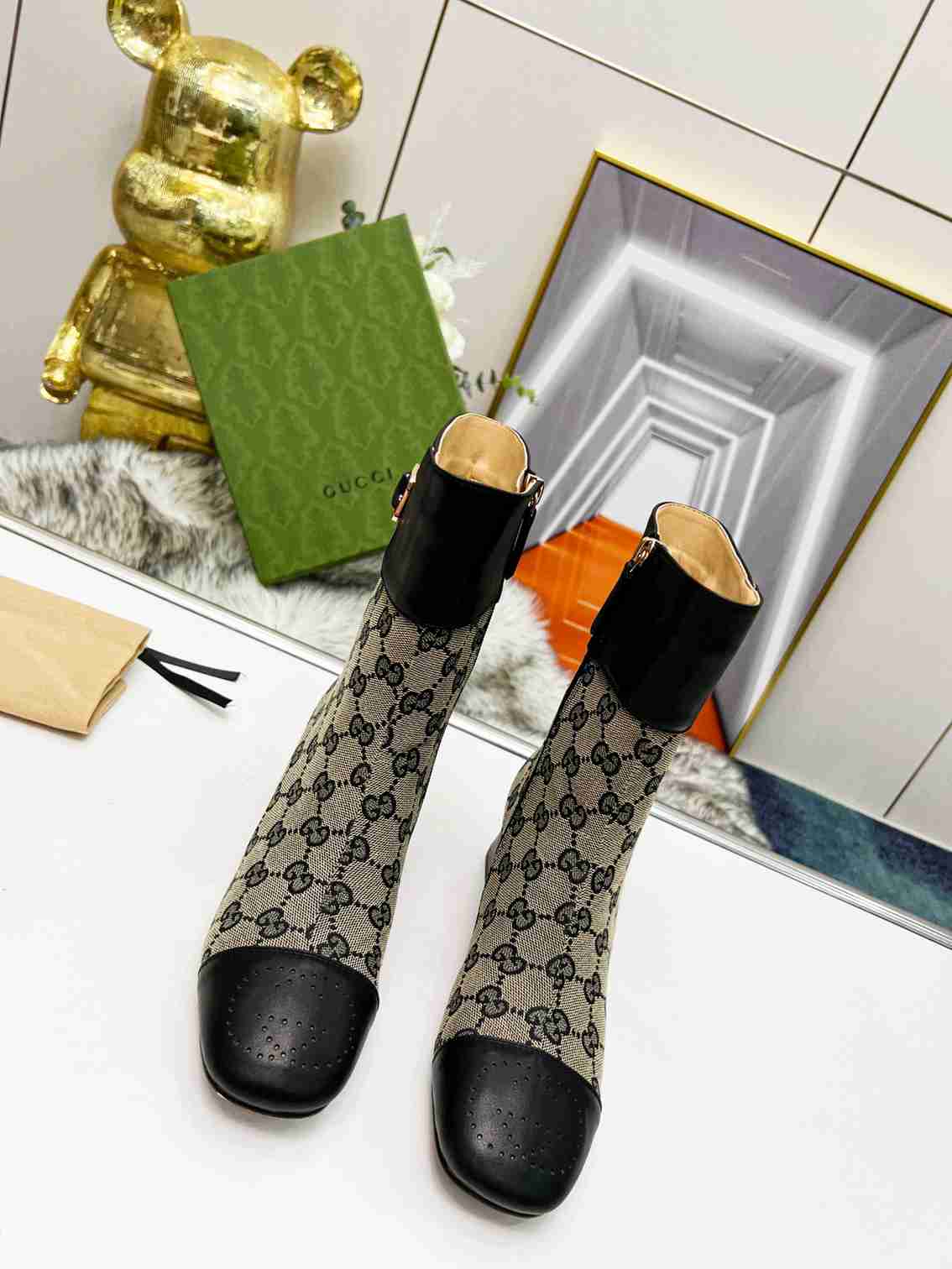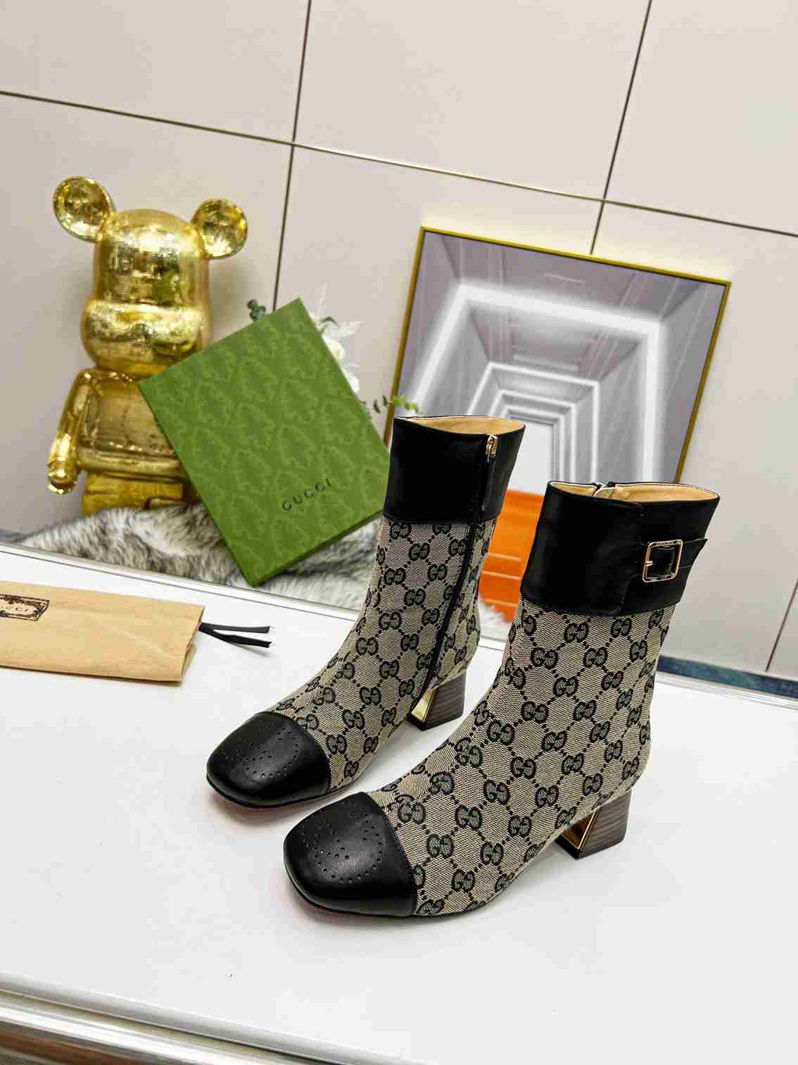 GUCCI Fashion Metal Buckle Chunky Ankle Boots Size 35—42