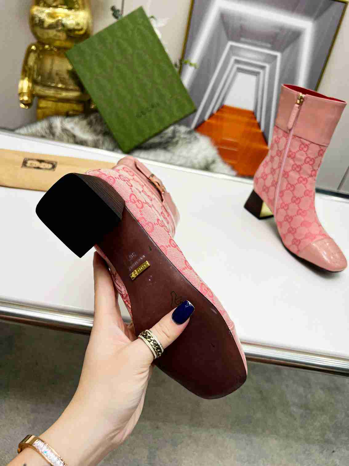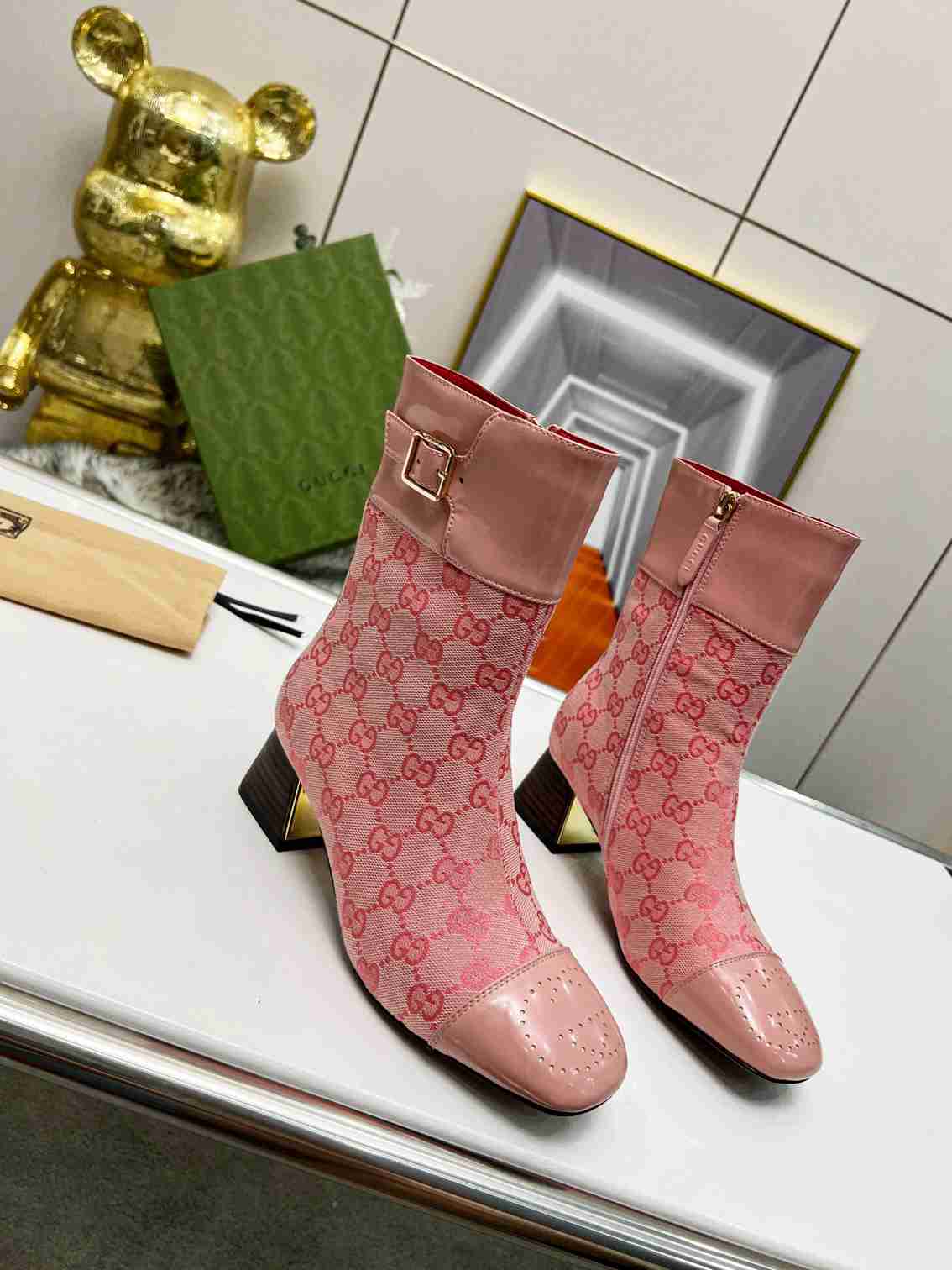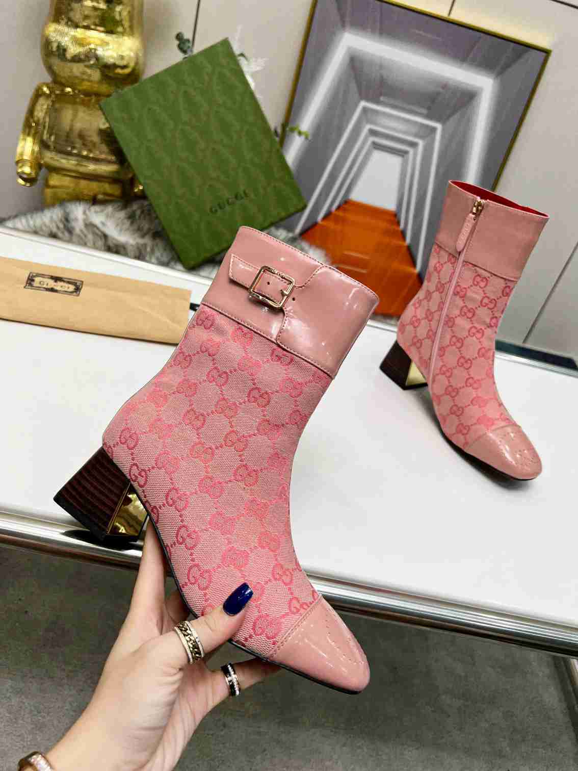 GUCCI Fashion Metal Buckle Chunky Ankle Boots Size 35—42