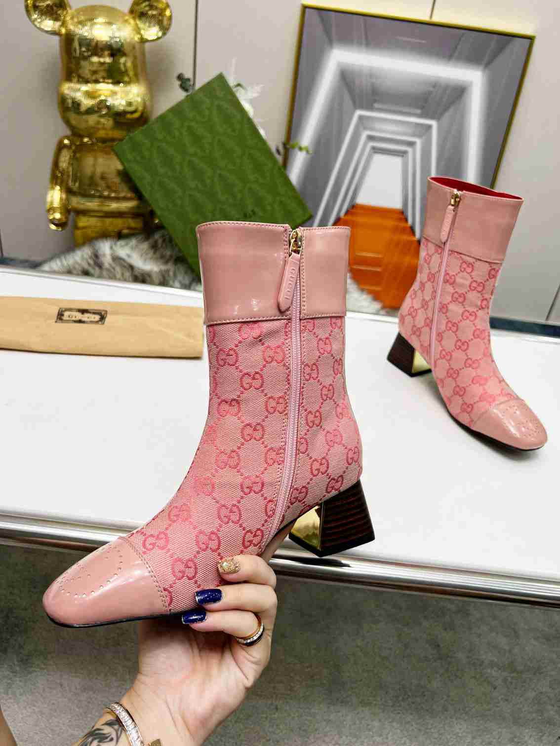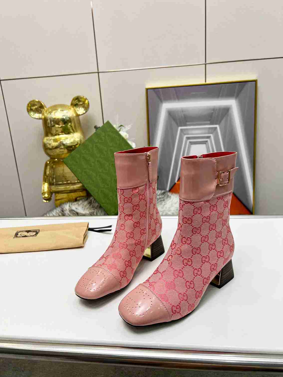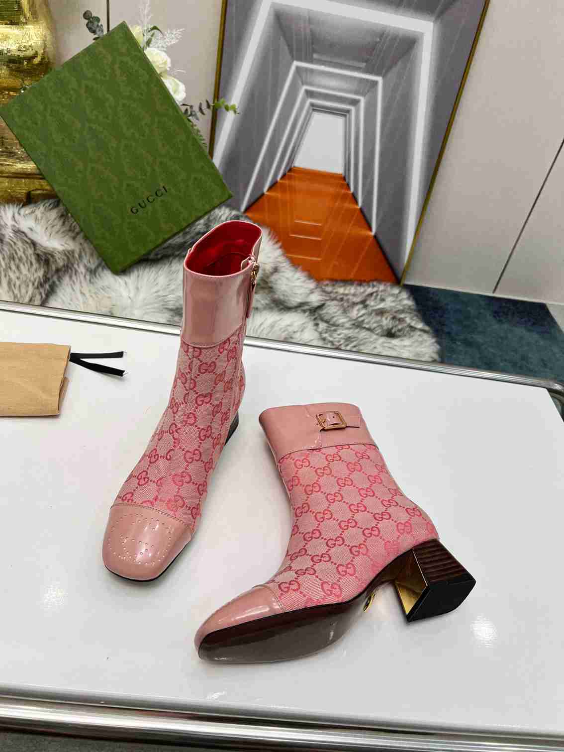 GUCCI Fashion Metal Buckle Chunky Ankle Boots Size 35—42