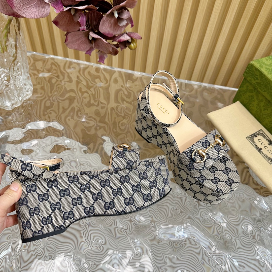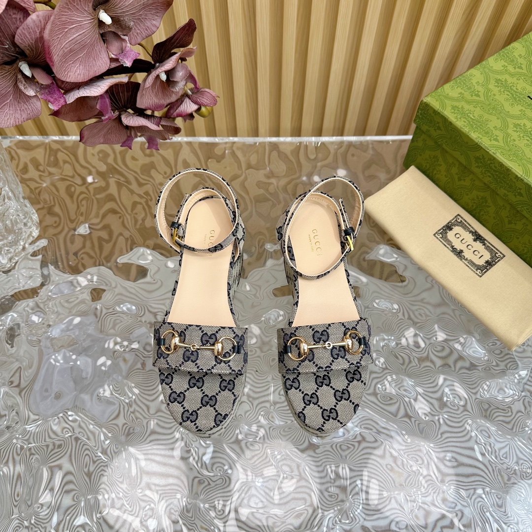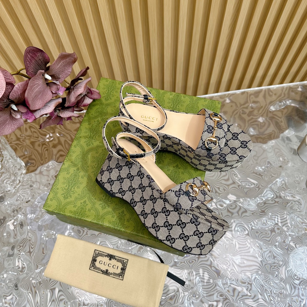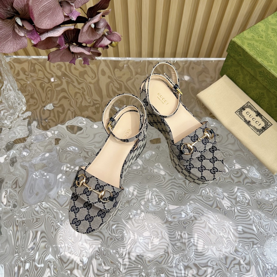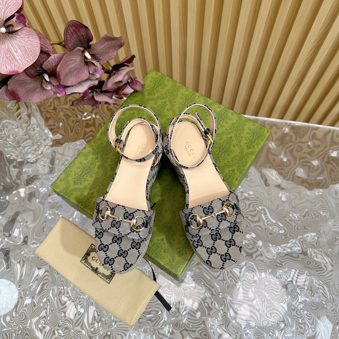Gucci Horse Buckle Platform Open Toe Sandals Size 35-42