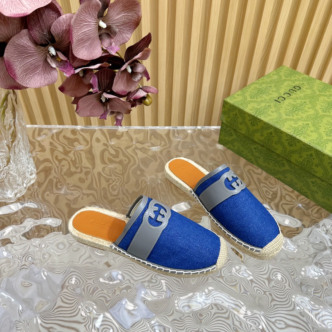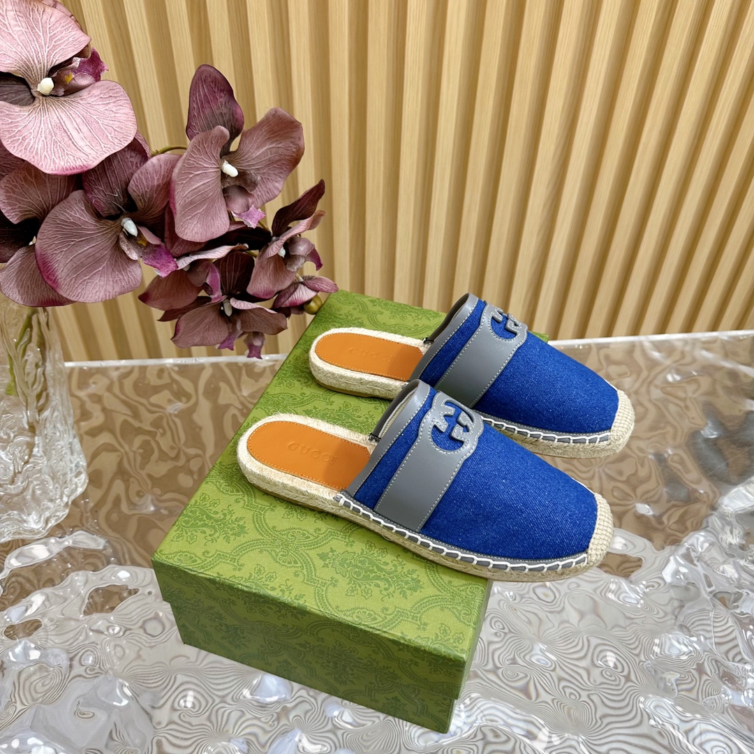 Gucci Straw Woven Comfortable Fisherman Shoes Size 35-45 (slipper)