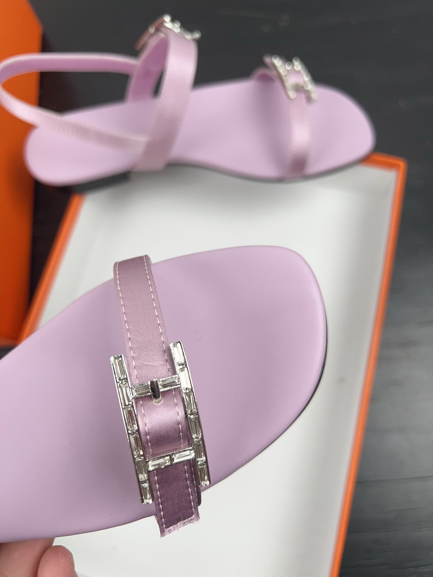 HERMES H Family 2024 Spring/summer New Blingbling Diamond Buckle Sandals Size 35-41
