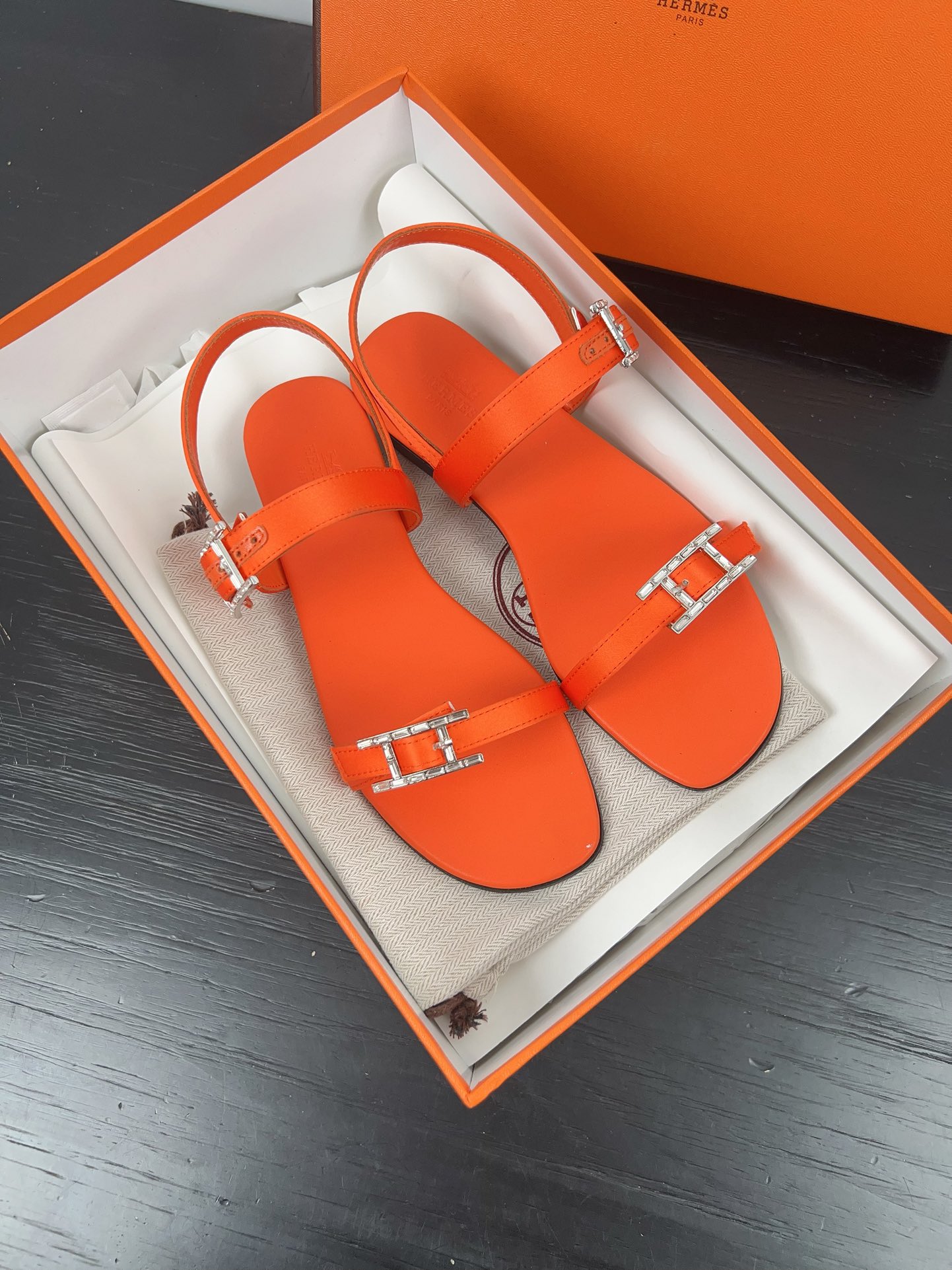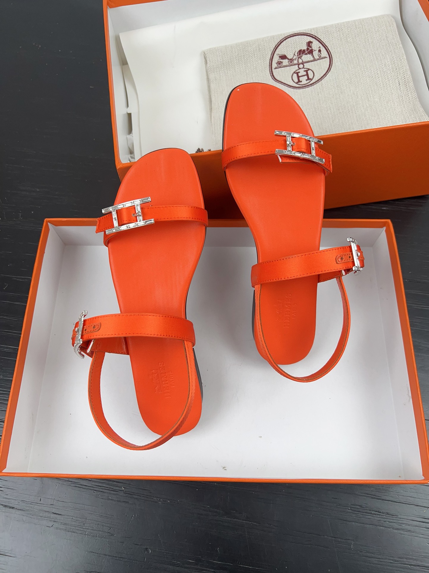 HERMES H Family 2024 Spring/summer New Blingbling Diamond Buckle Sandals Size 35-41
