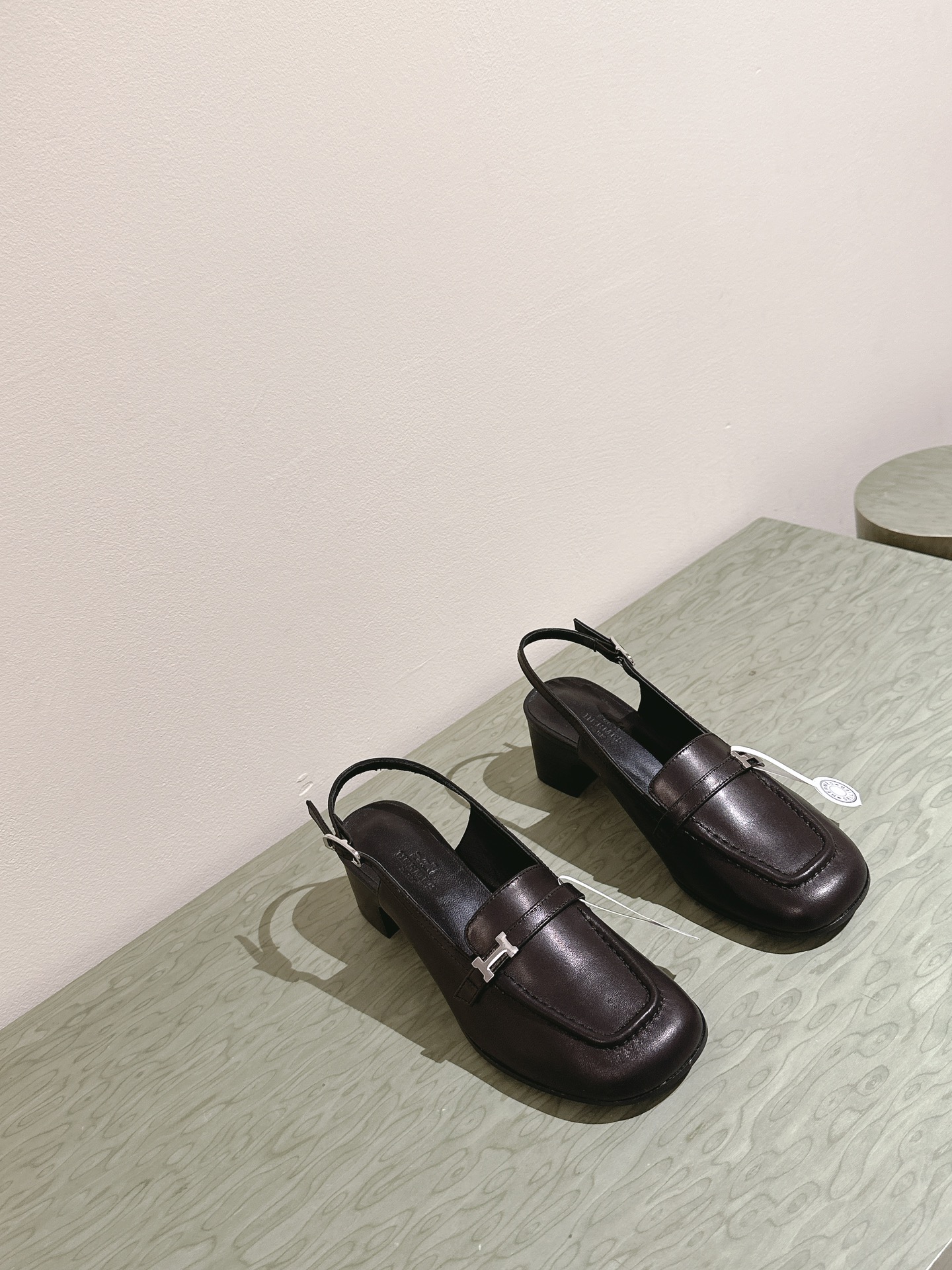 HERMES Small Square Hair With Small Chunky Heels Delicate To Wear Size 35-41