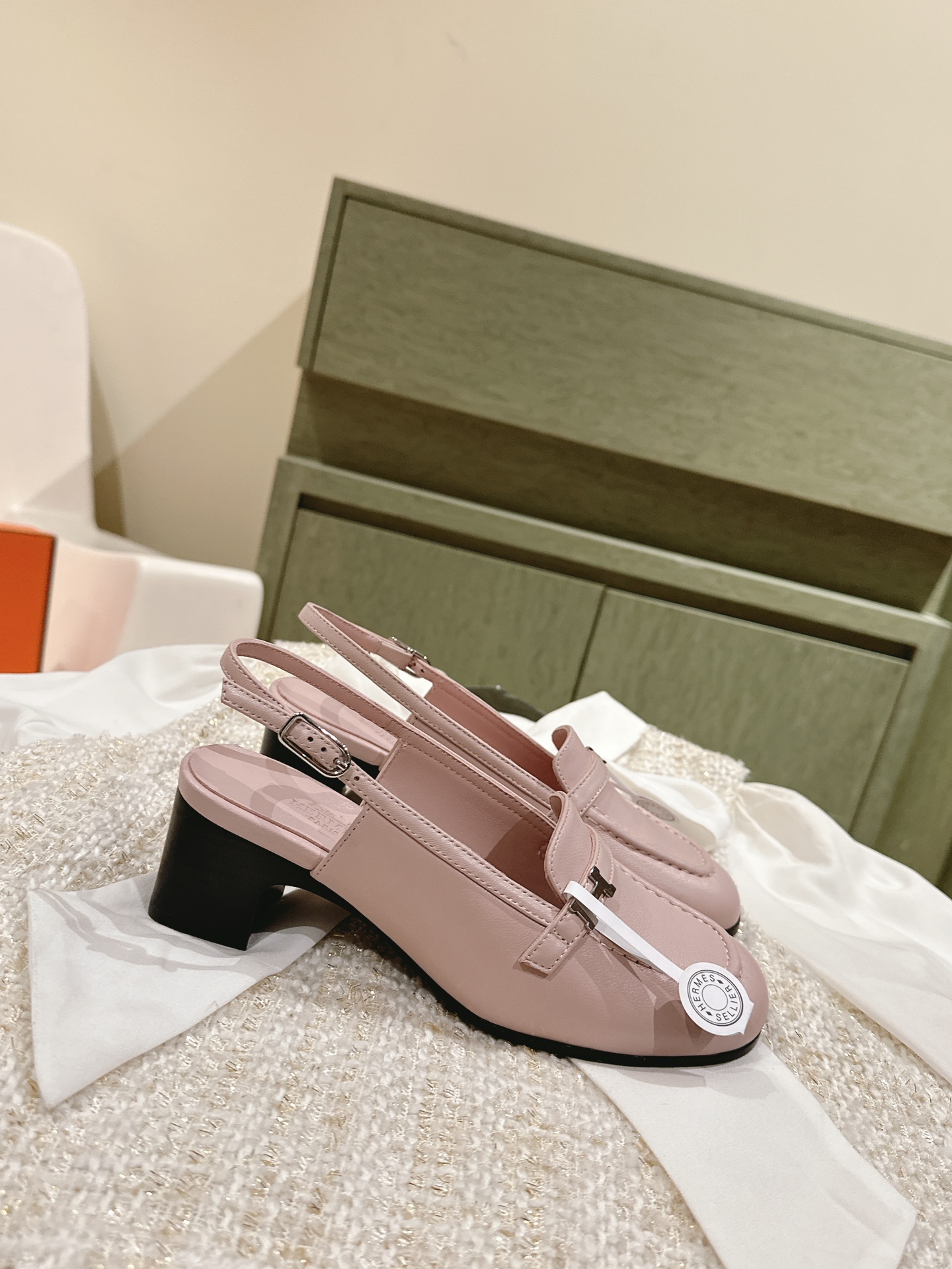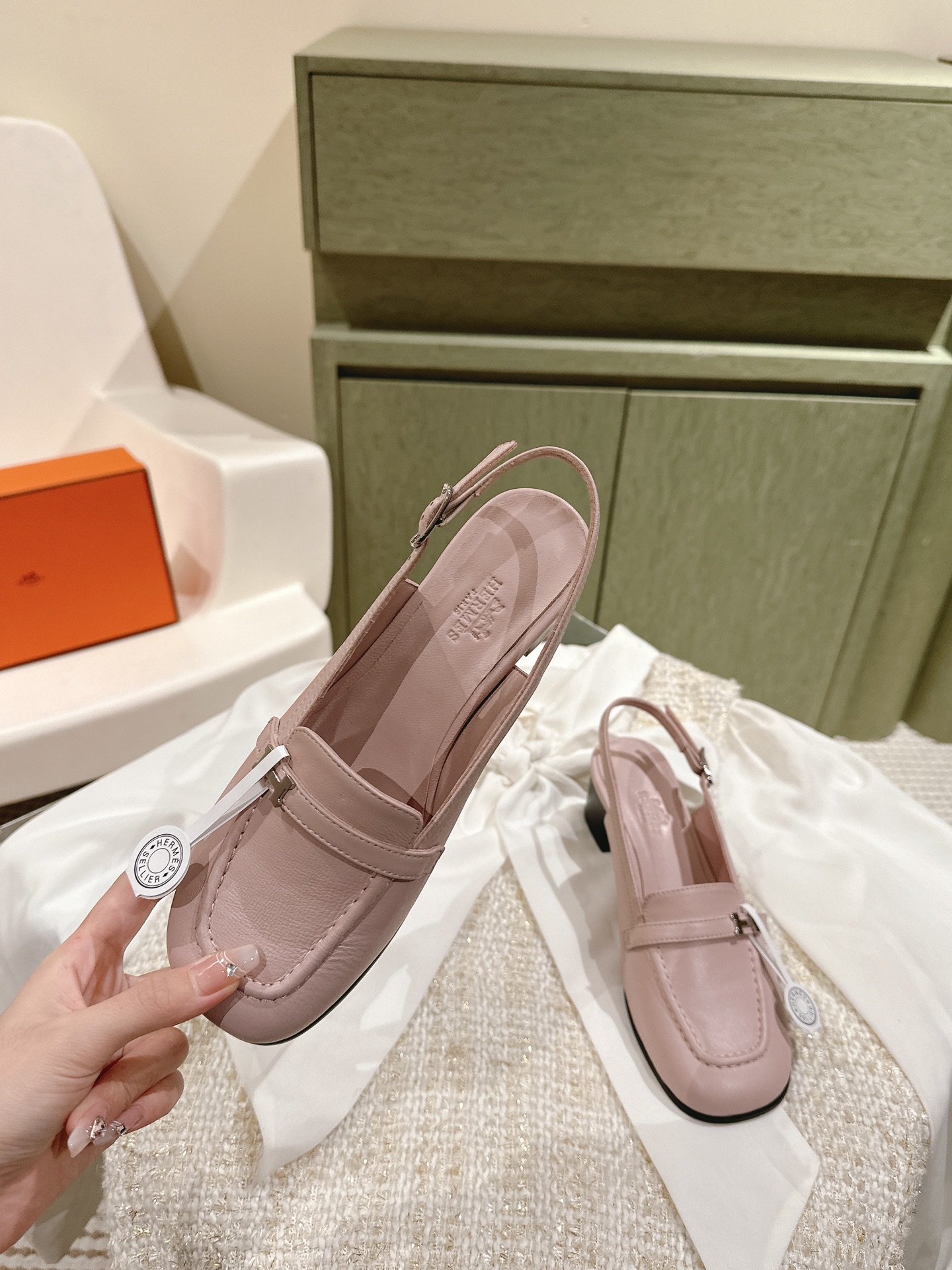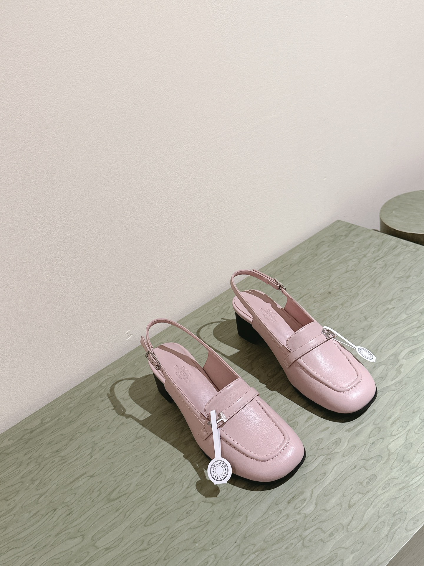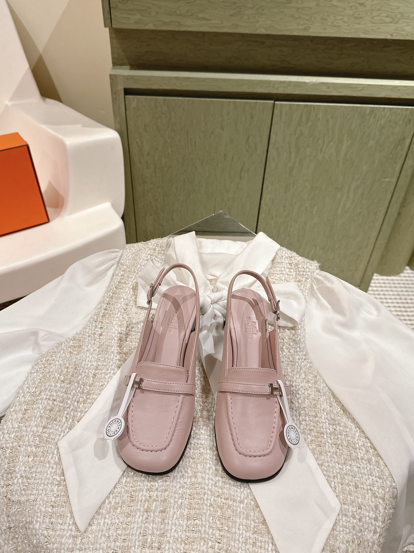 HERMES Small Square Hair With Small Chunky Heels Delicate To Wear Size 35-41
