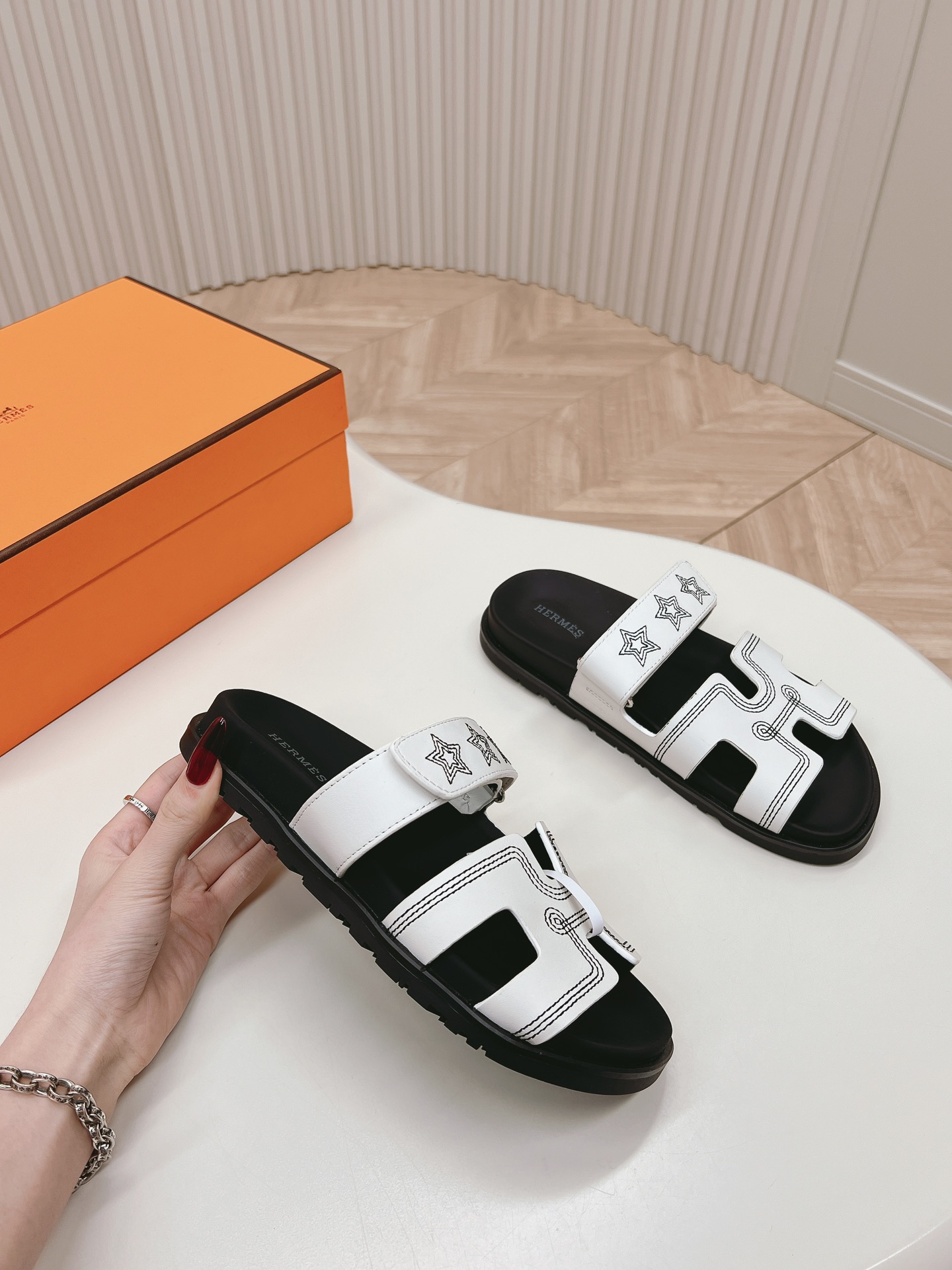 HERMES Spring And Summer Sandals Series Couples Classic Style Size Women 35-41 Men 39-45