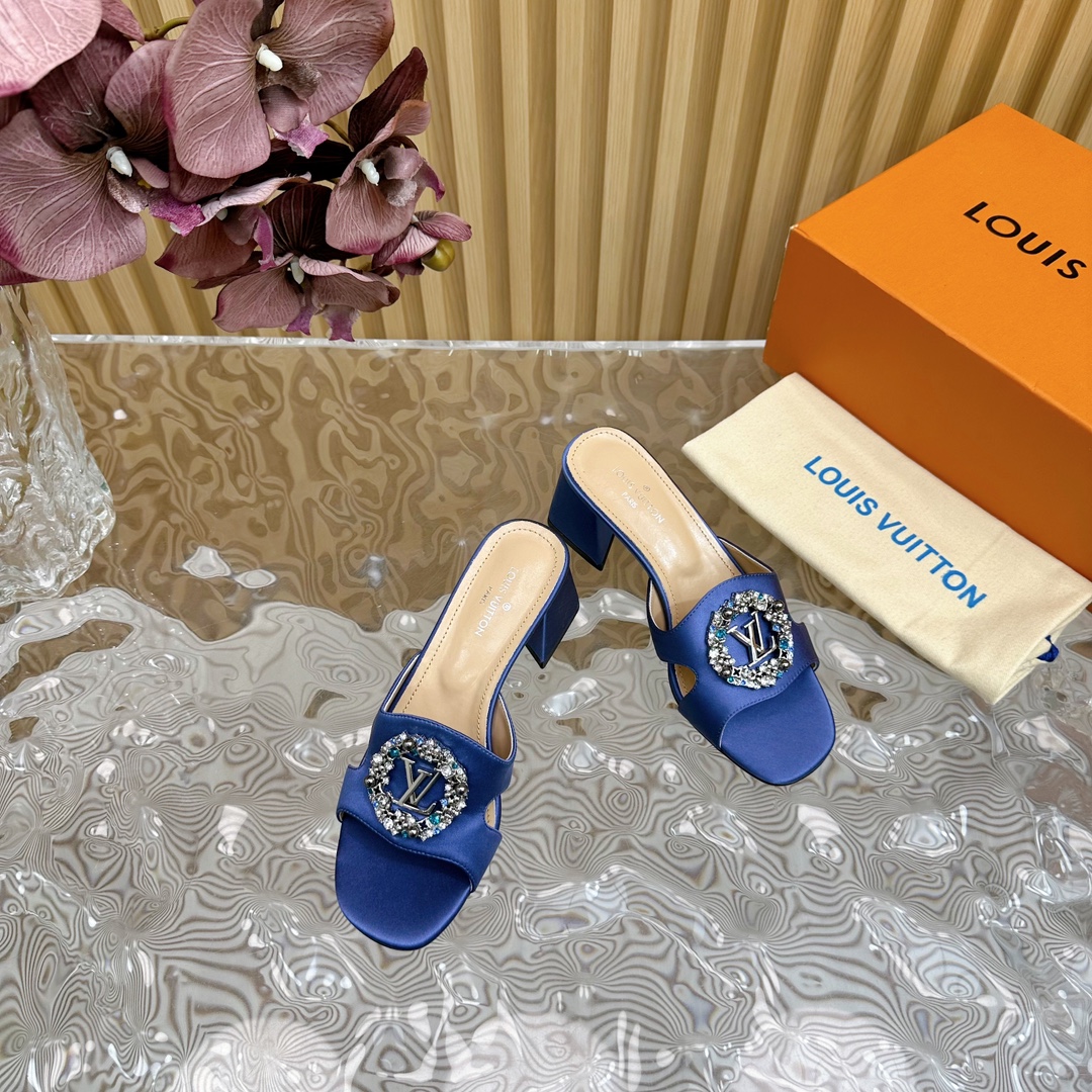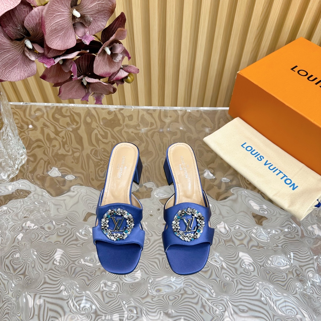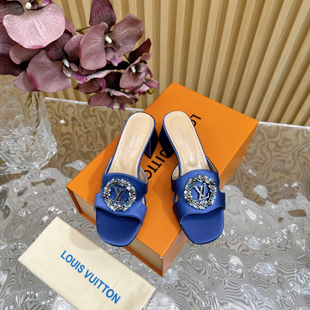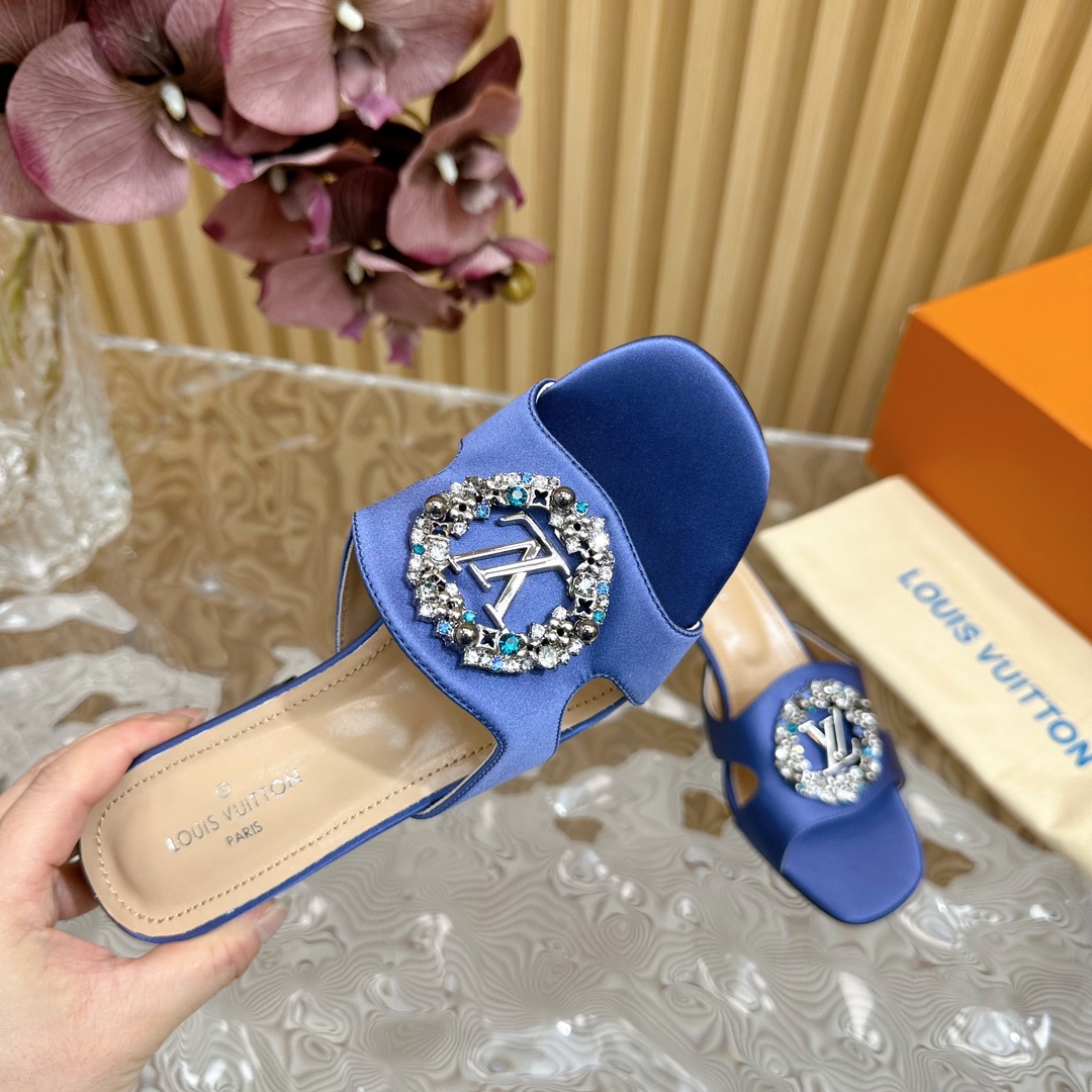 Louis Vuitton Round Drill Buckle Round Slipper Size 35-42 Blue