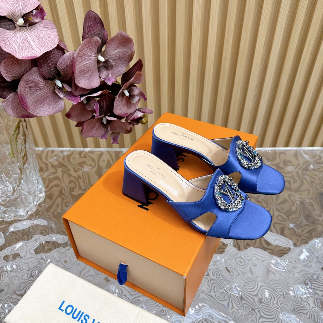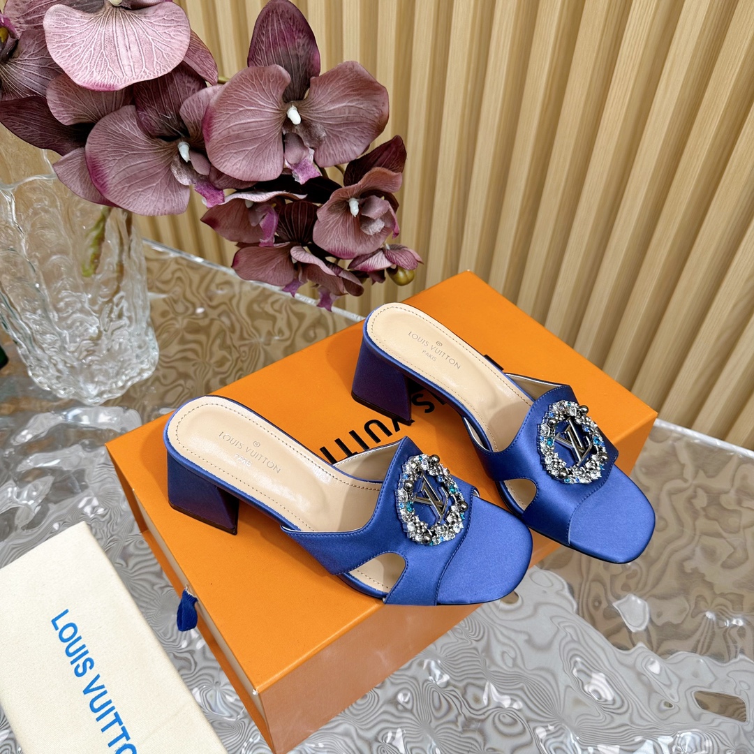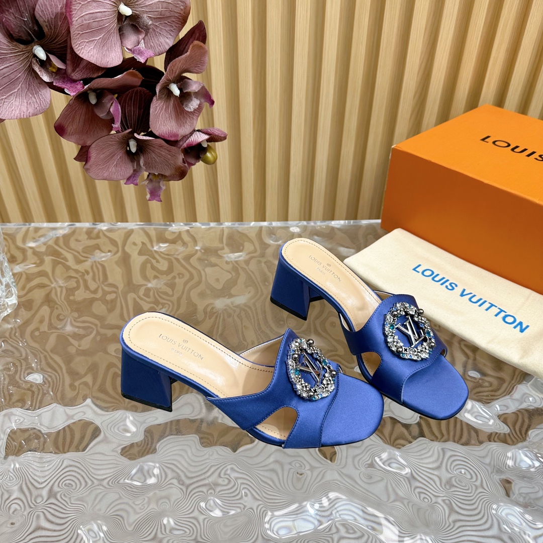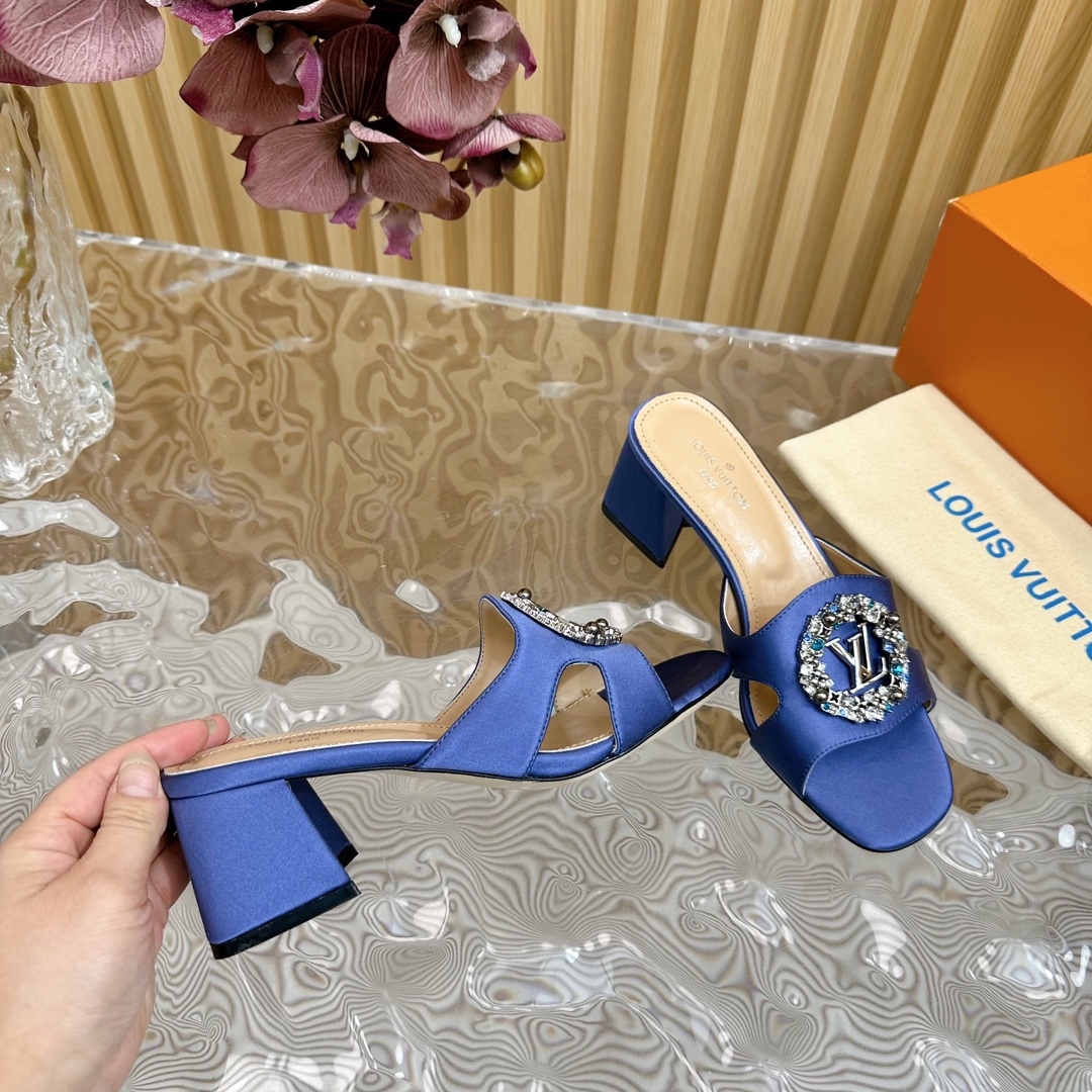 Louis Vuitton Round Drill Buckle Round Slipper Size 35-42 Blue