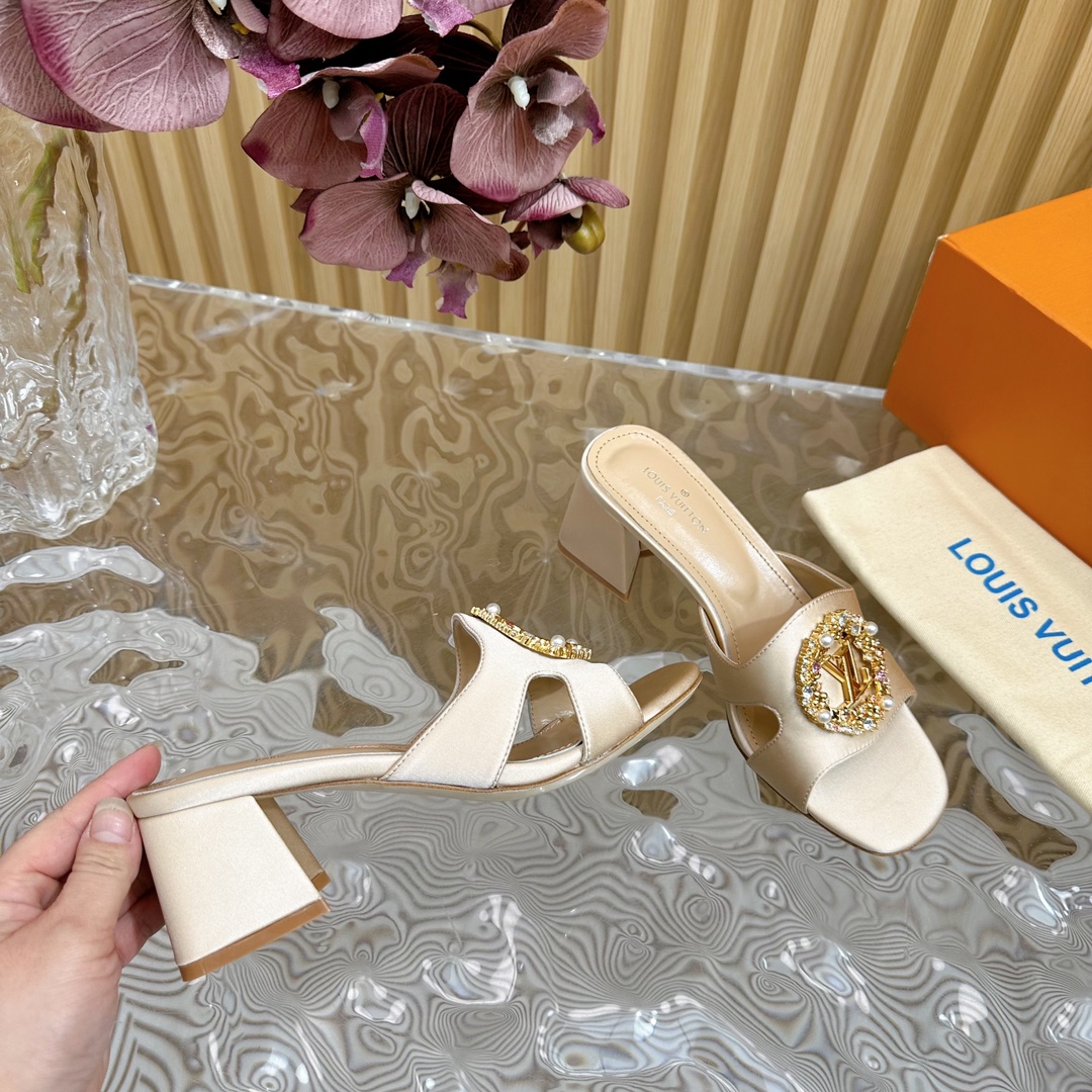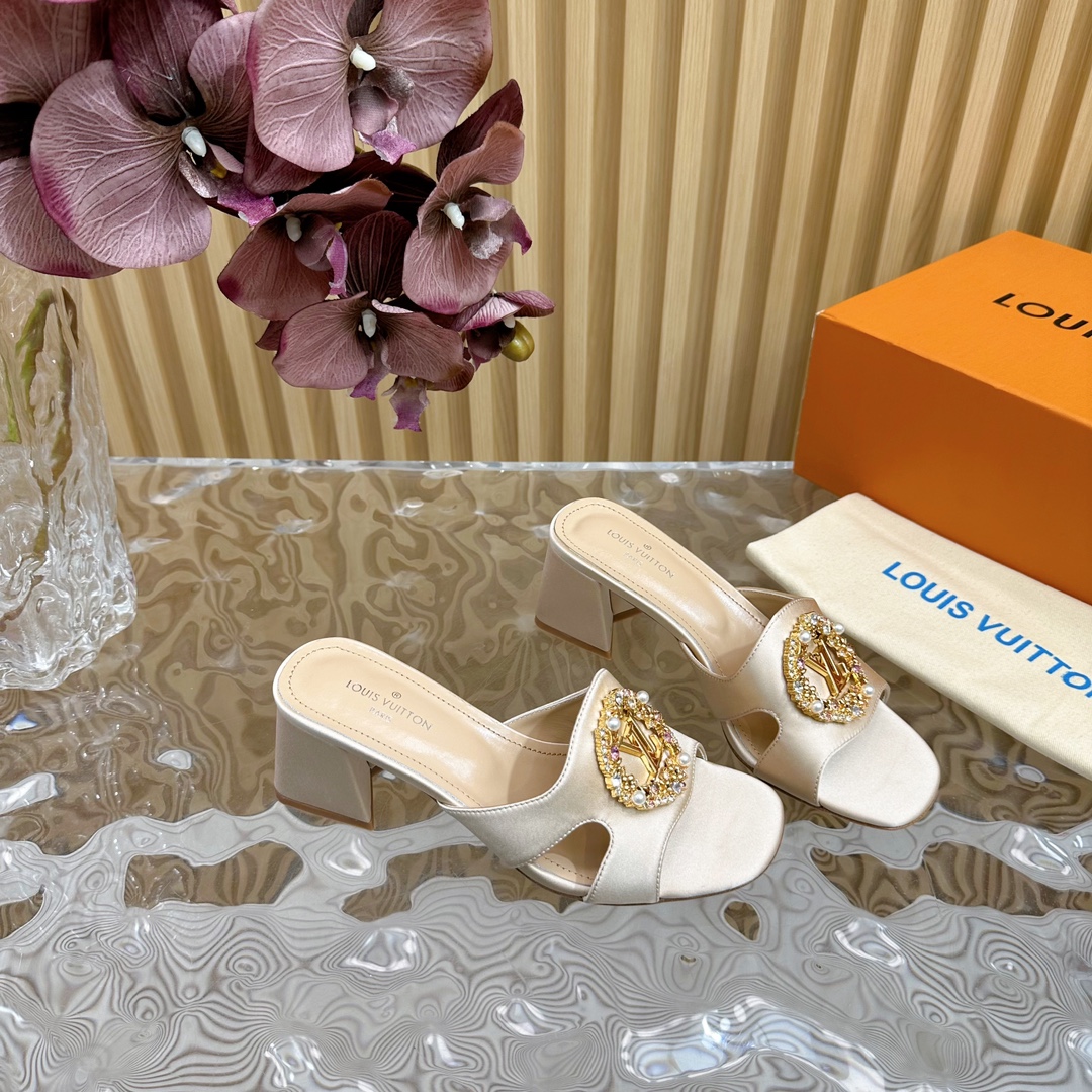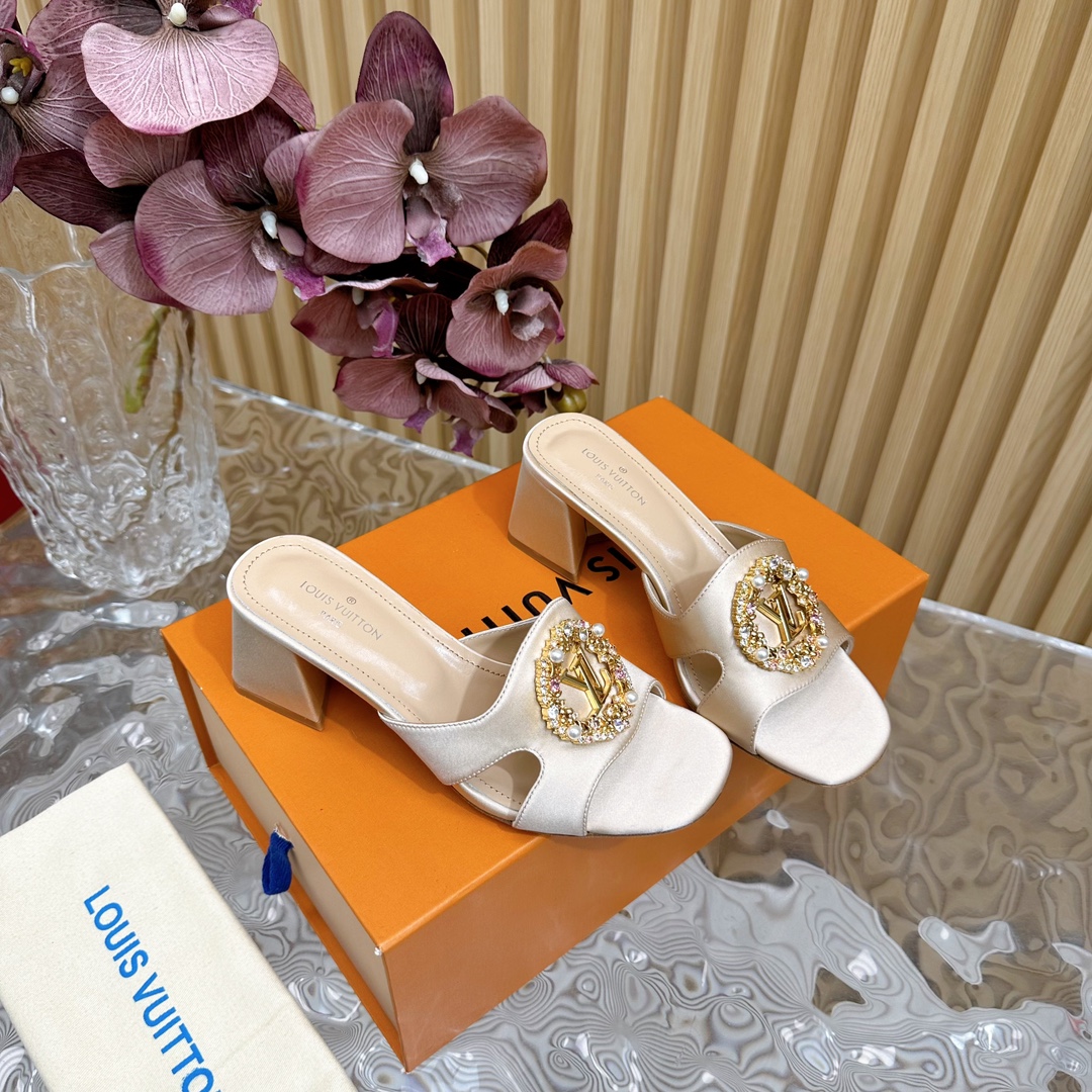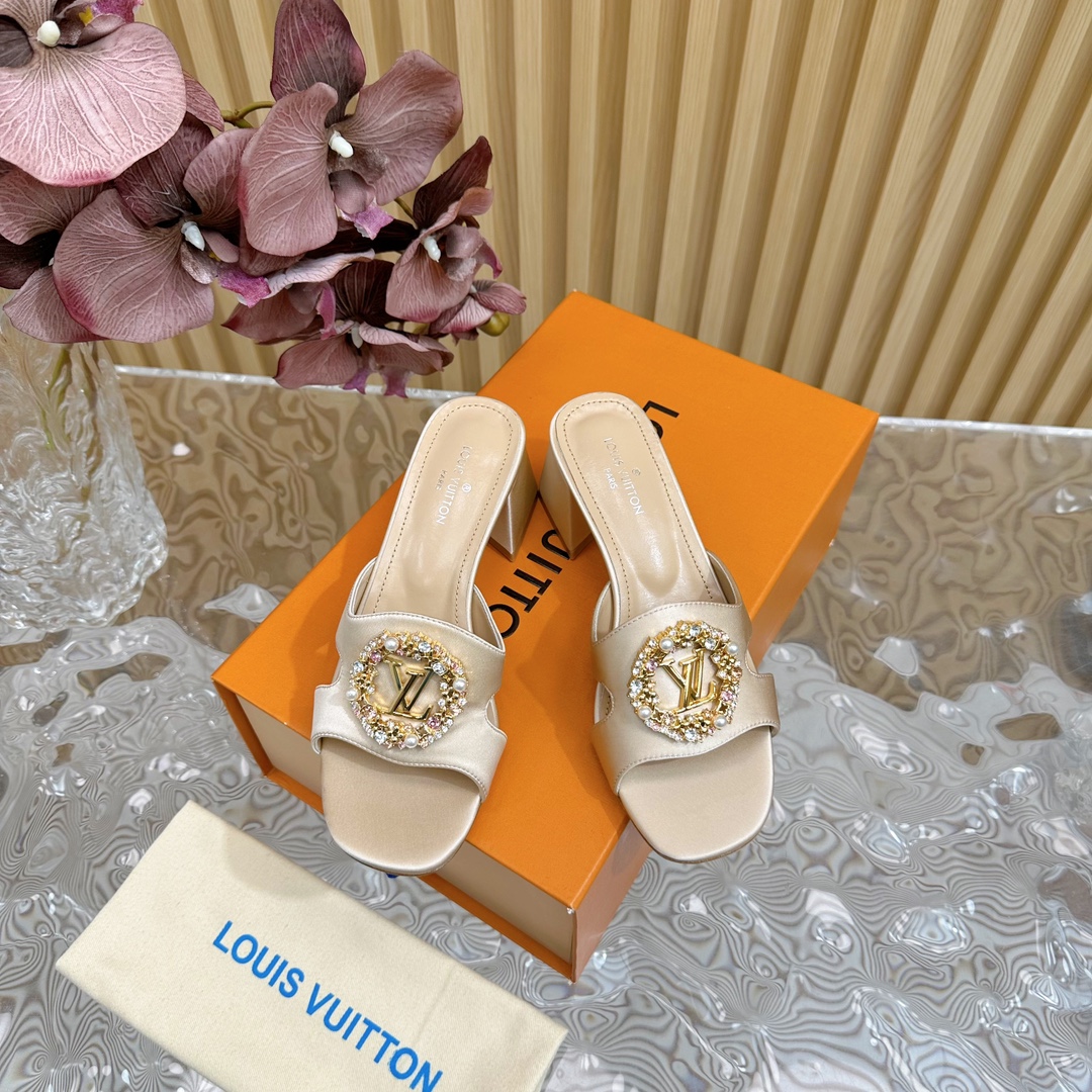 Louis Vuitton Round Drill Buckle Round Slipper Size 35-42 Gold