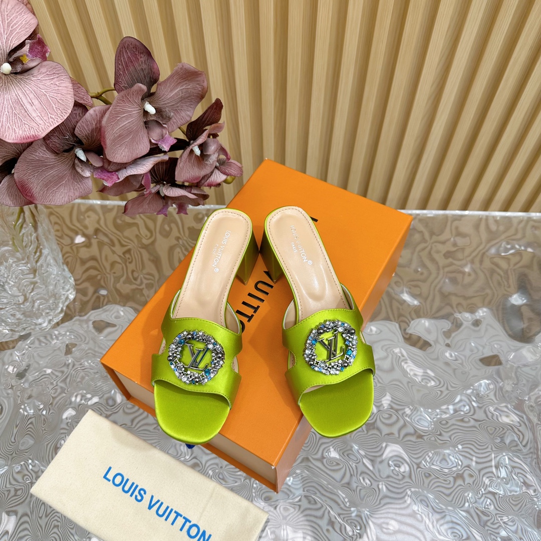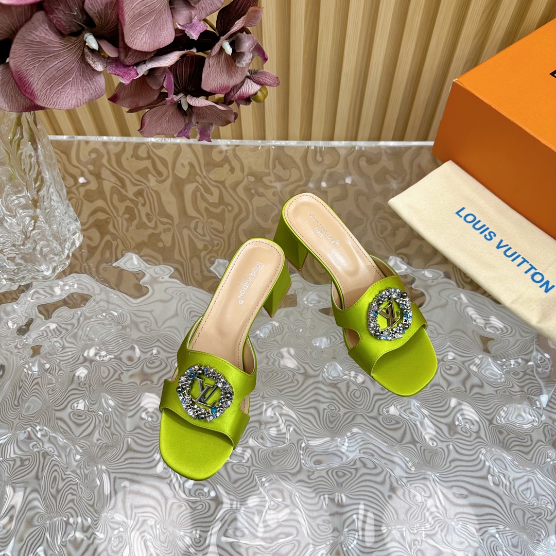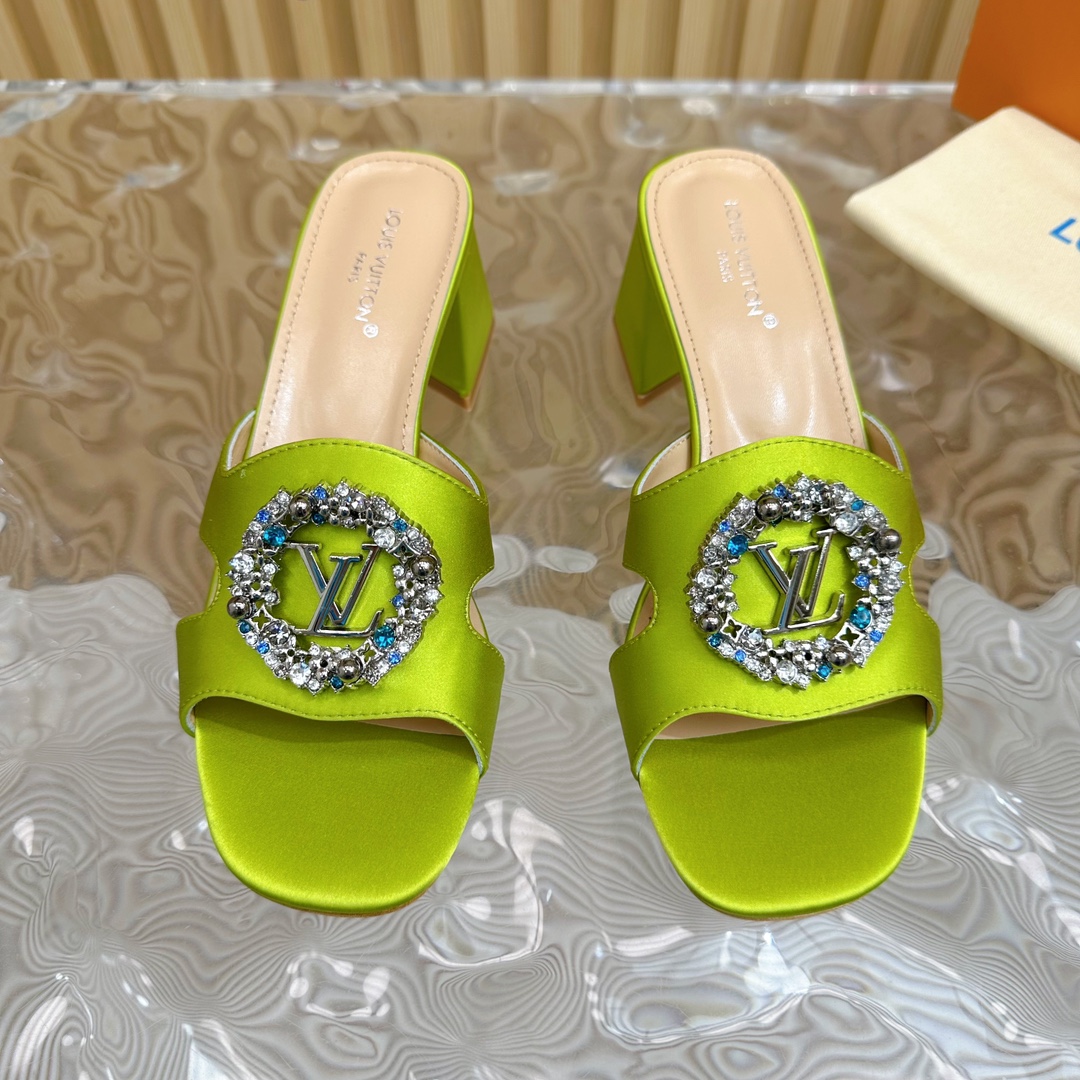 Louis Vuitton Round Drill Buckle Round Slipper Size 35-42 Green