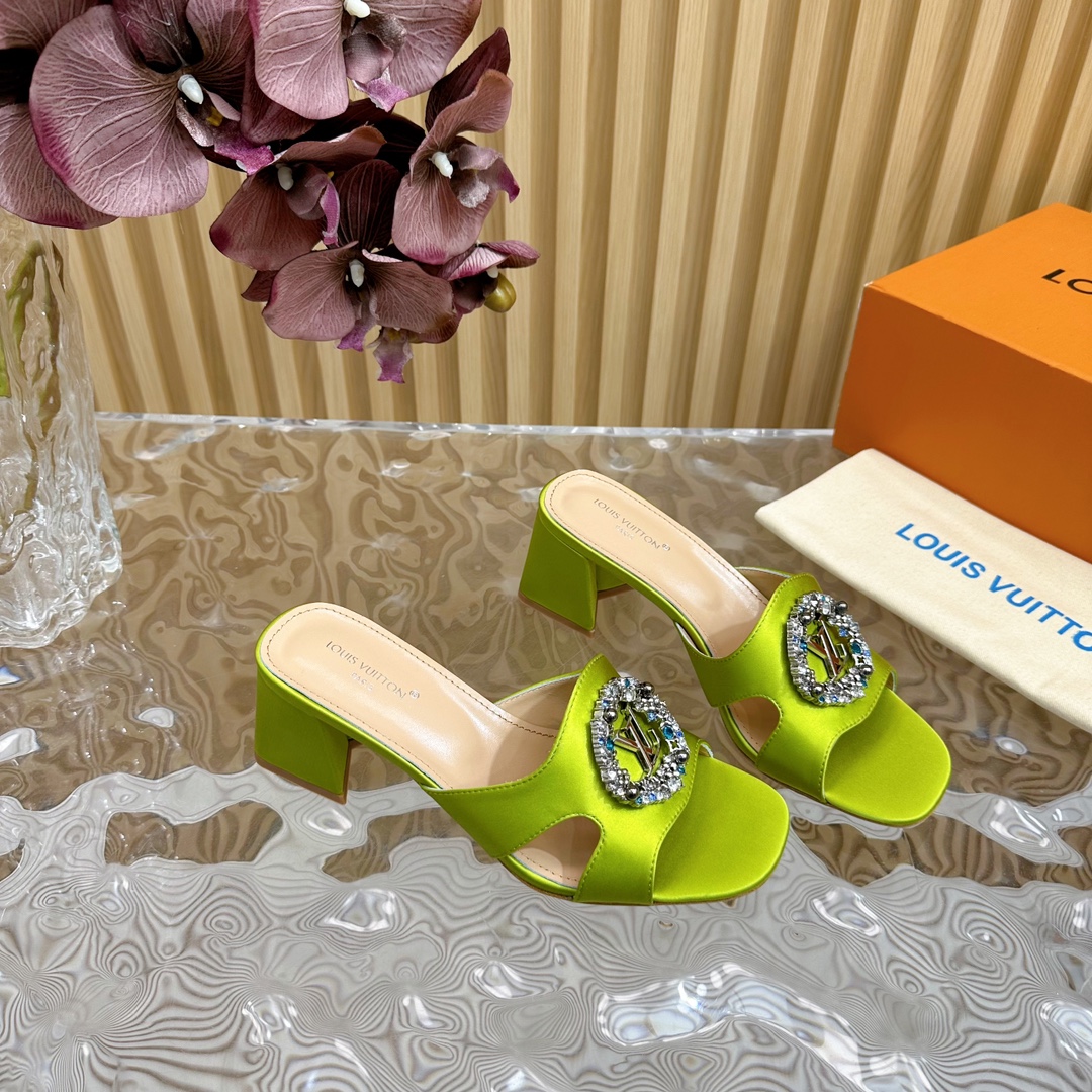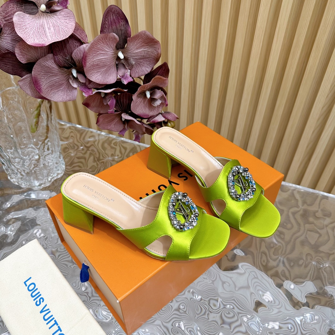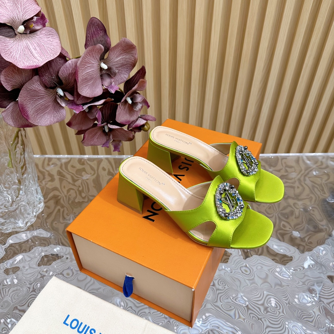 Louis Vuitton Round Drill Buckle Round Slipper Size 35-42 Green