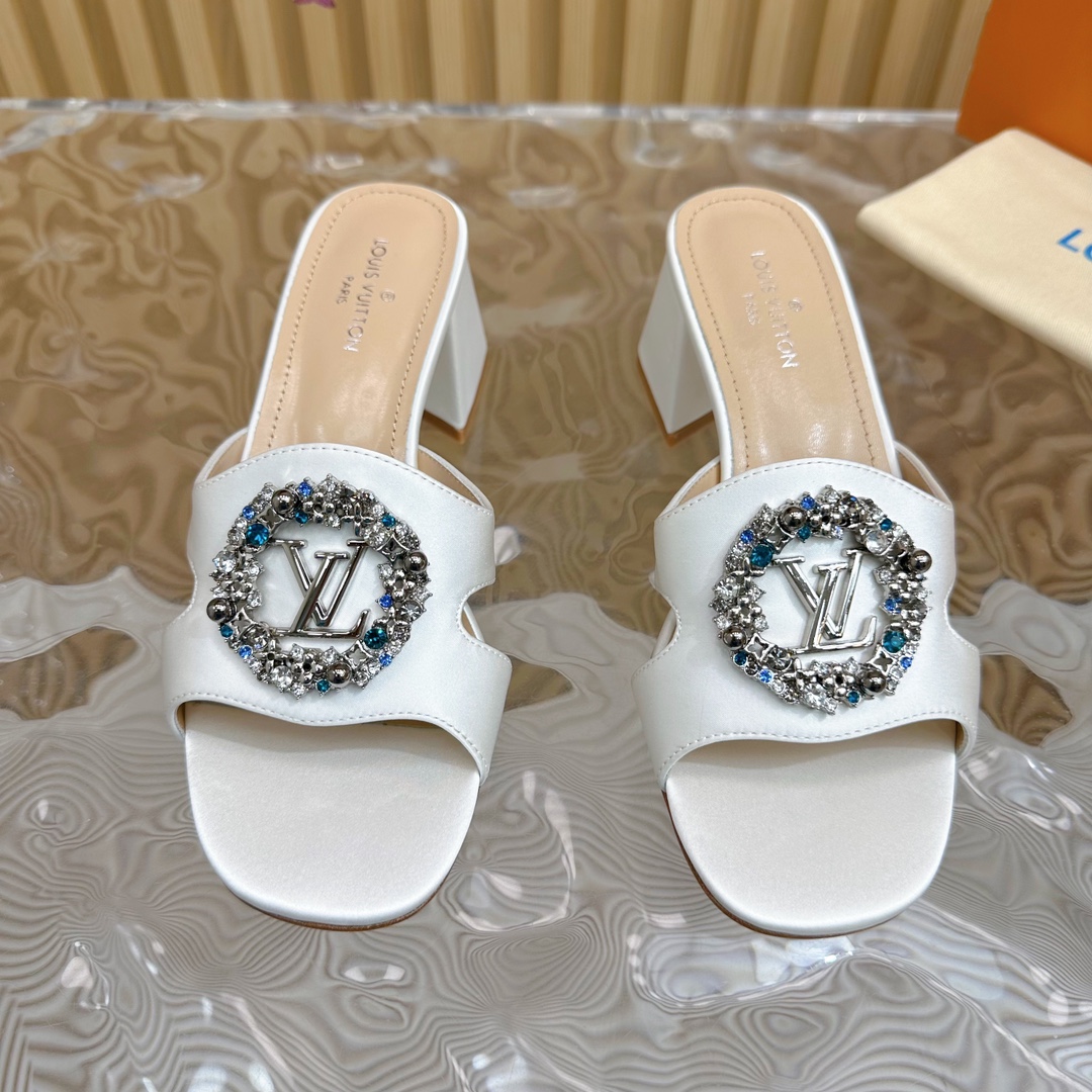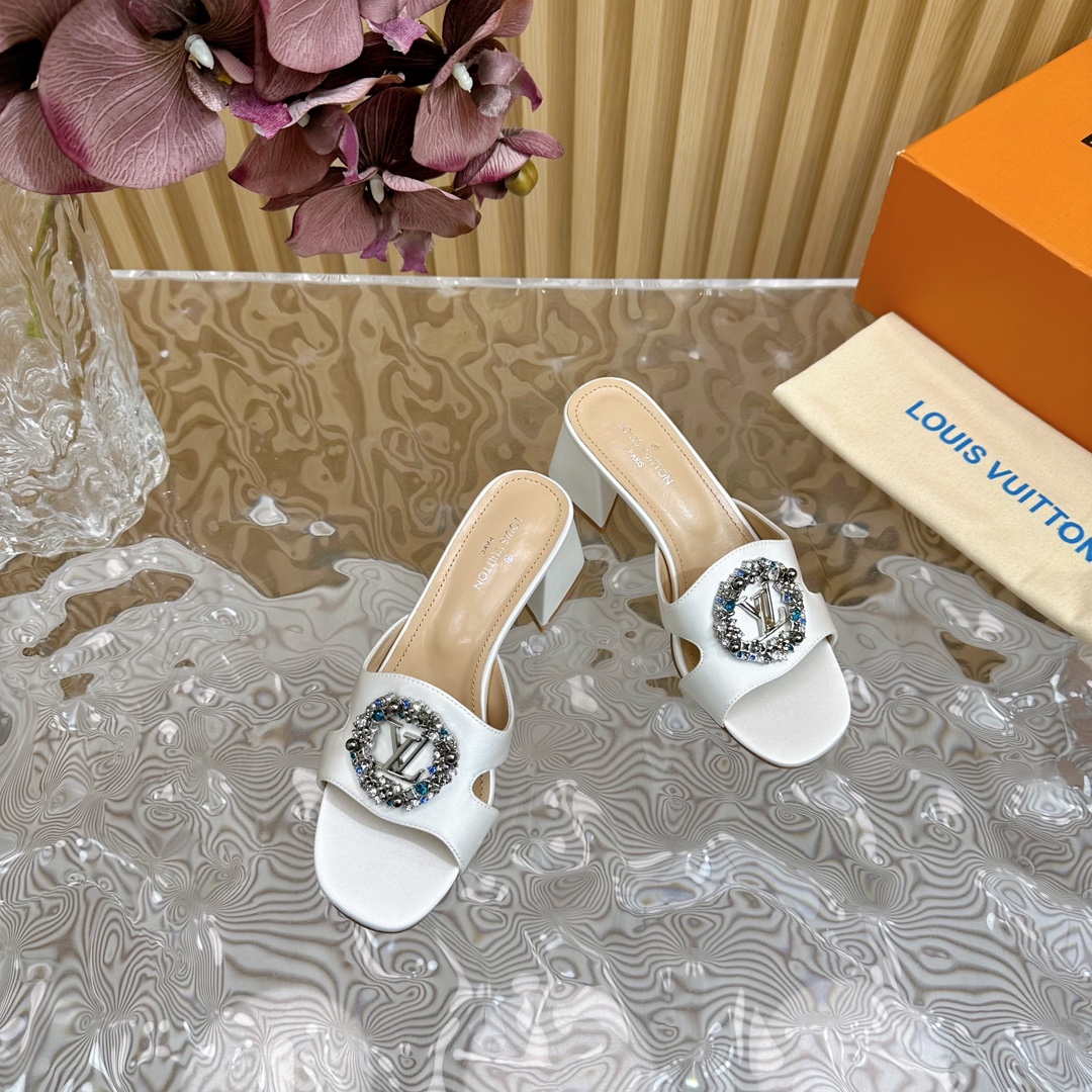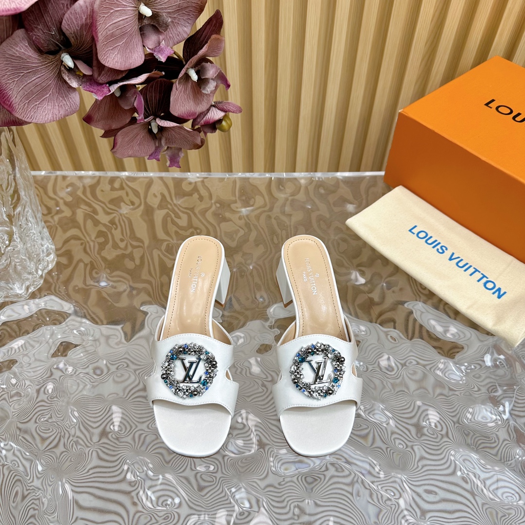 Louis Vuitton Round Drill Buckle Round Slipper Size 35-42 White
