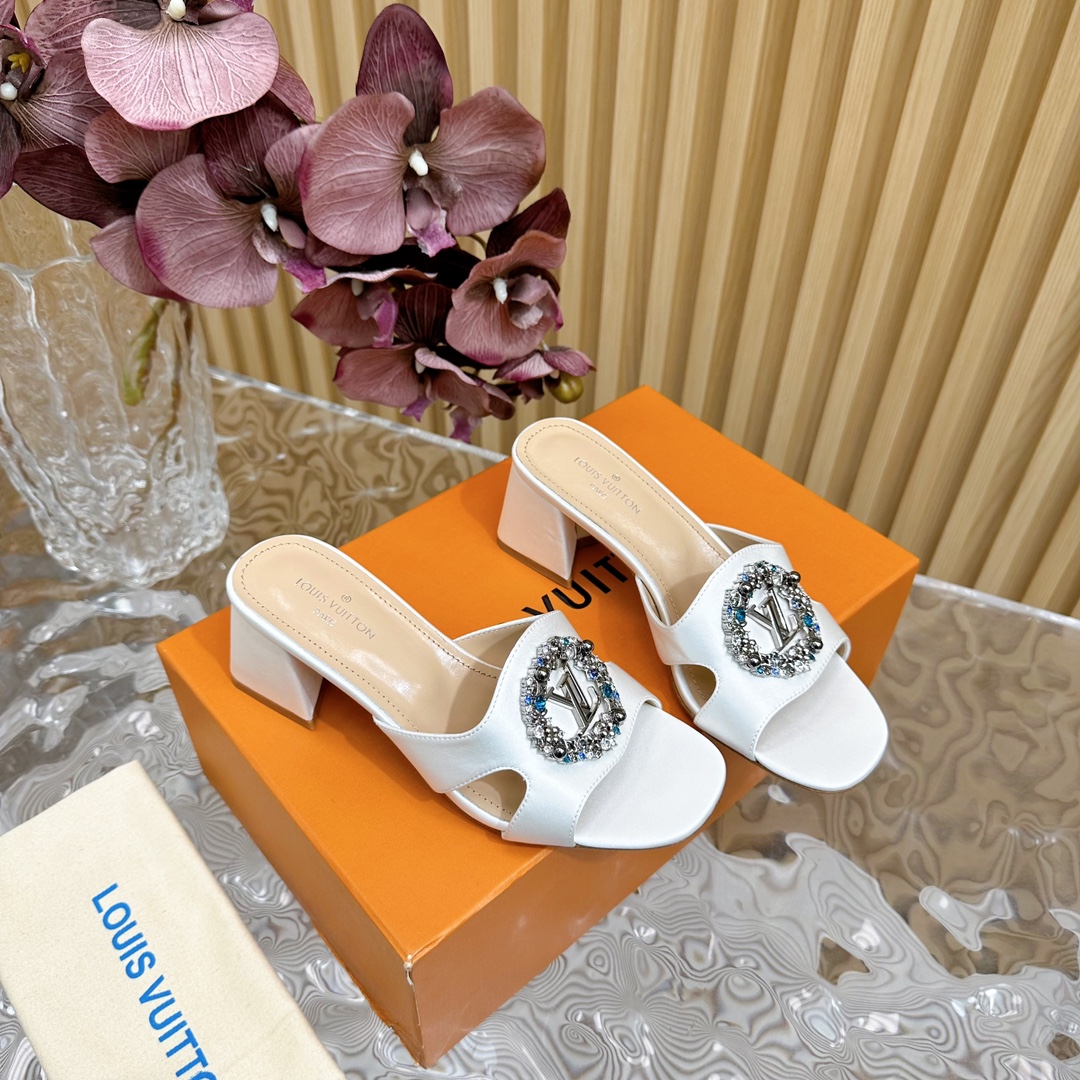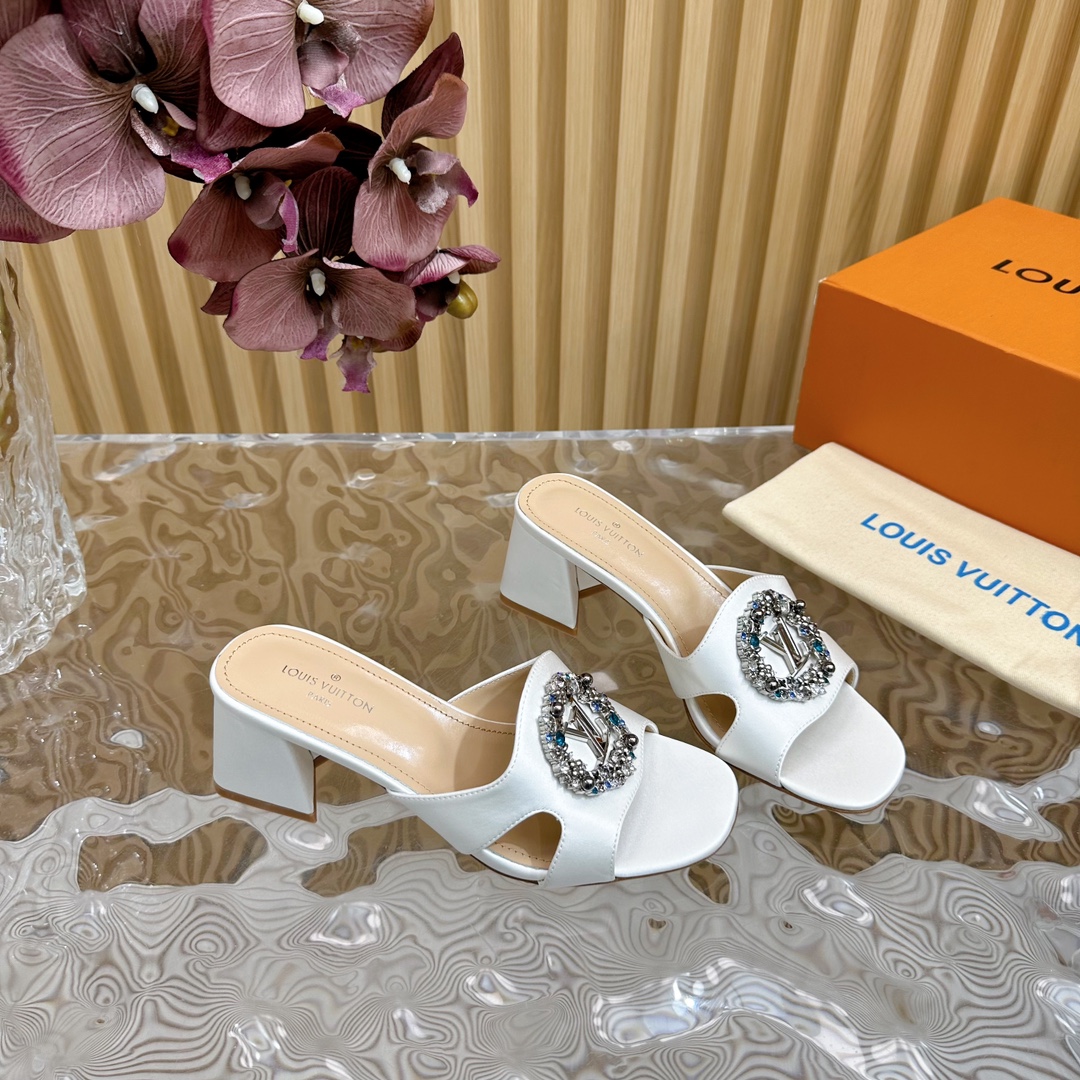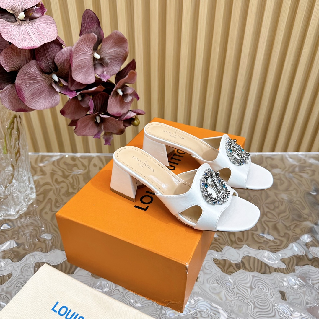 Louis Vuitton Round Drill Buckle Round Slipper Size 35-42 White