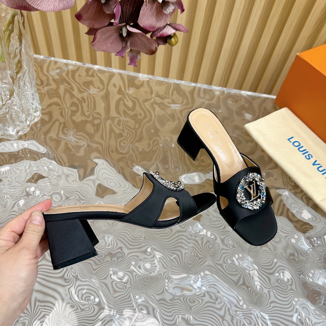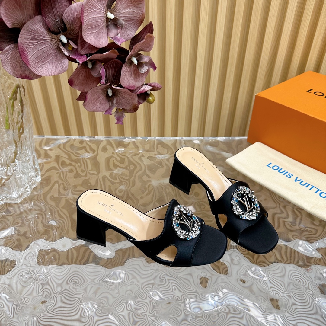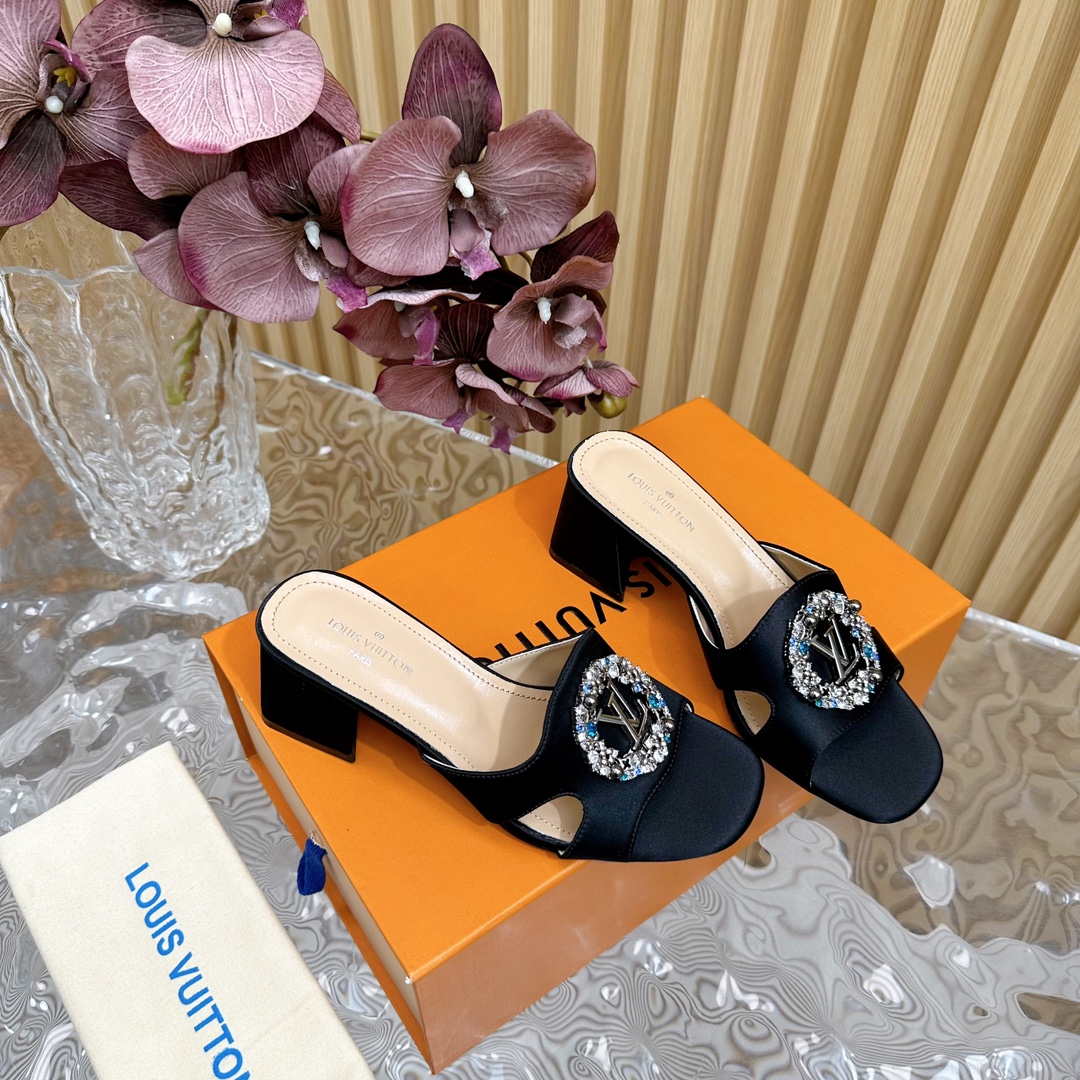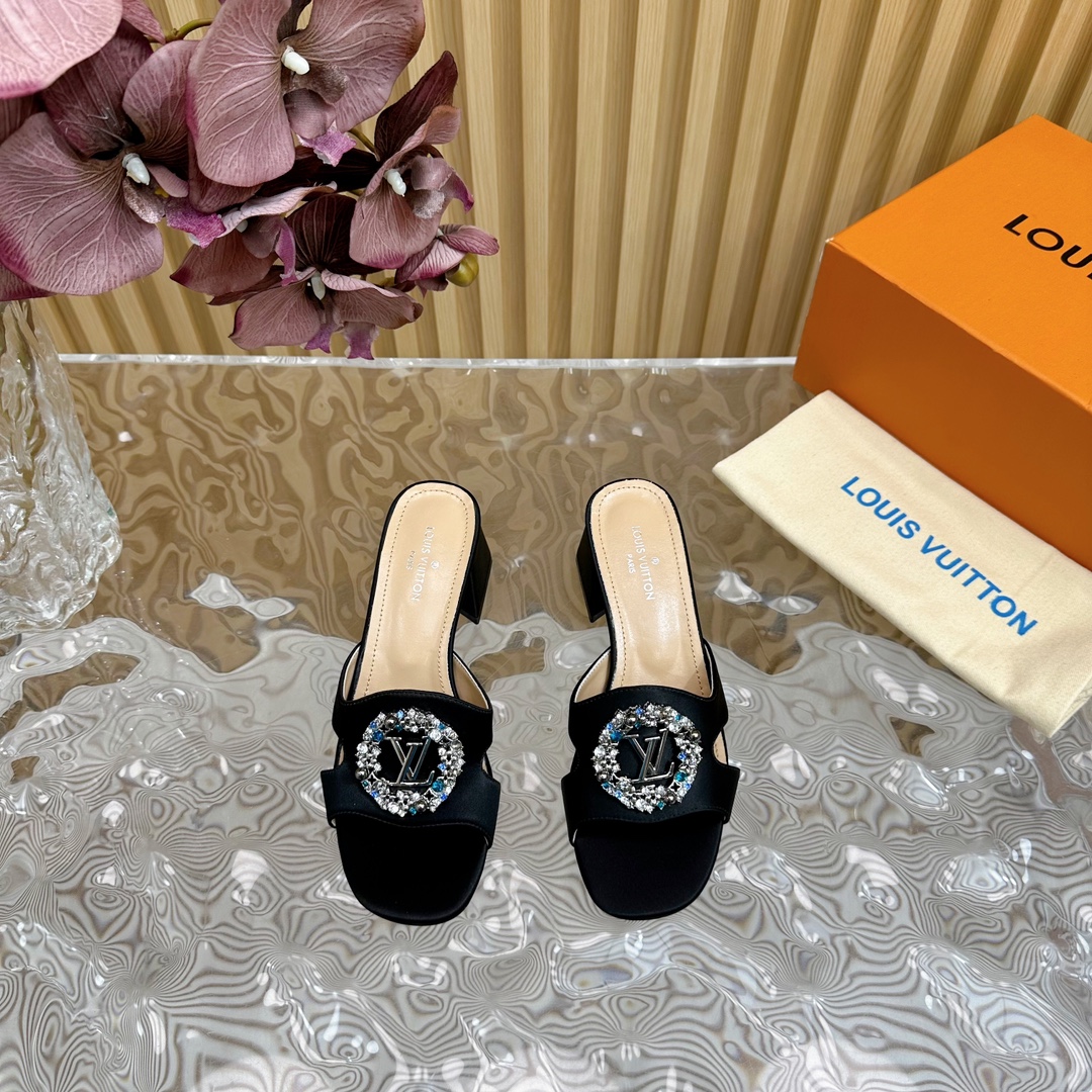 Louis Vuitton Round Drill Buckle Round Slipper Size 35-42Black