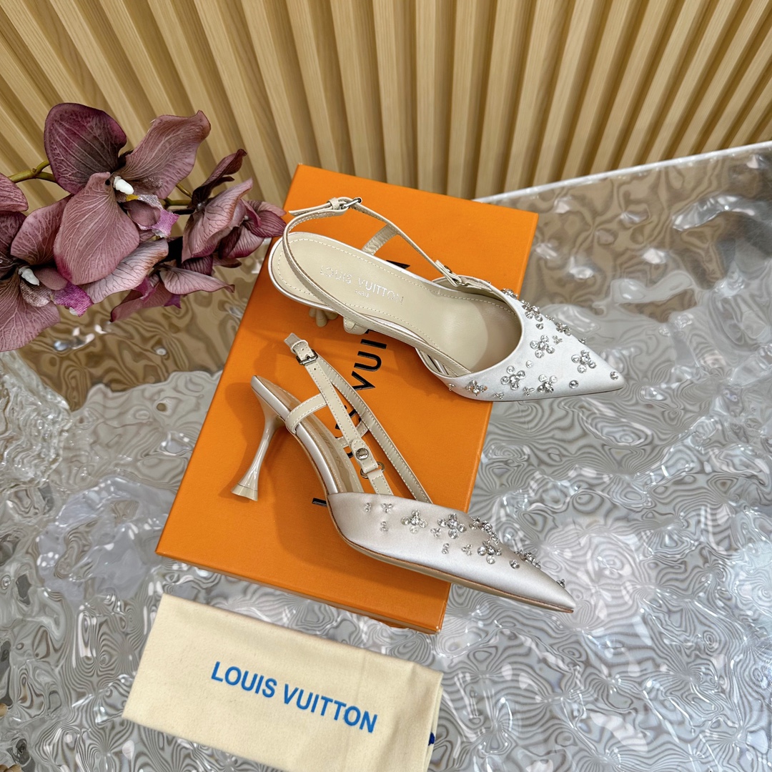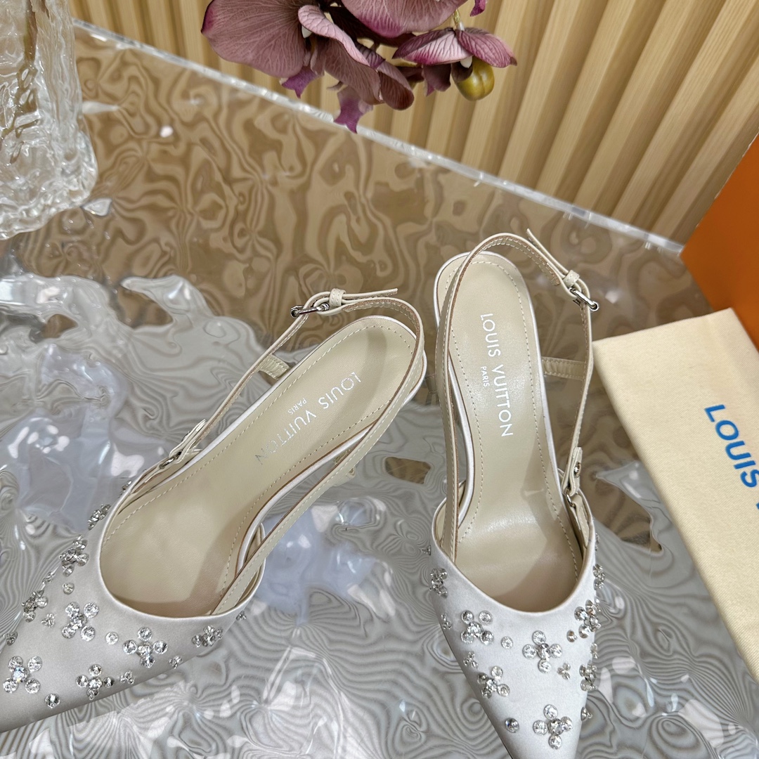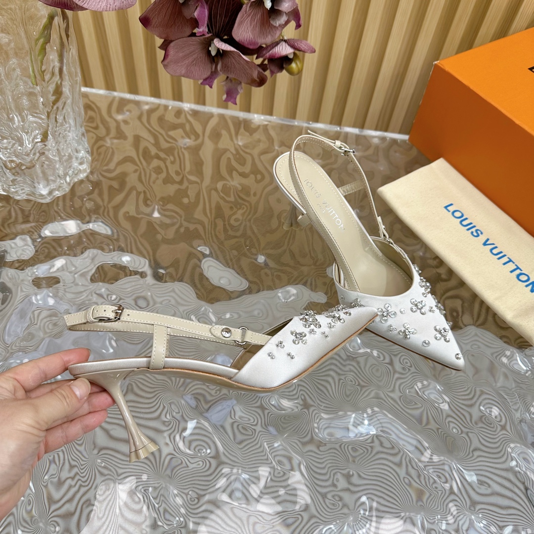 LV Women Silk Rhinestone Back Sandals Size 35-42 7.5cm White
