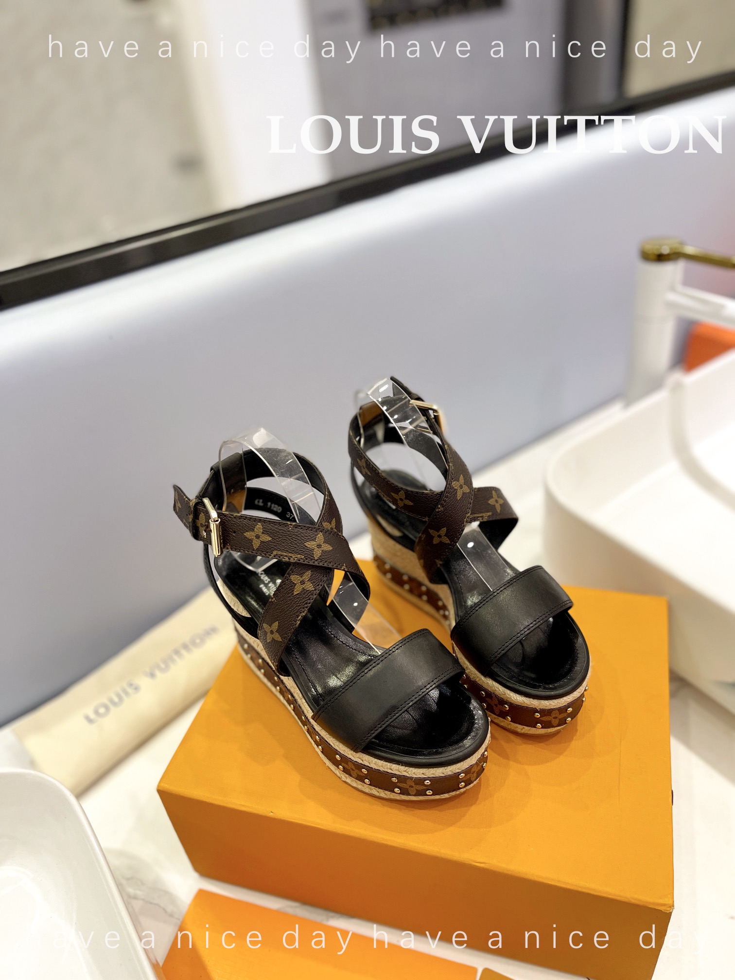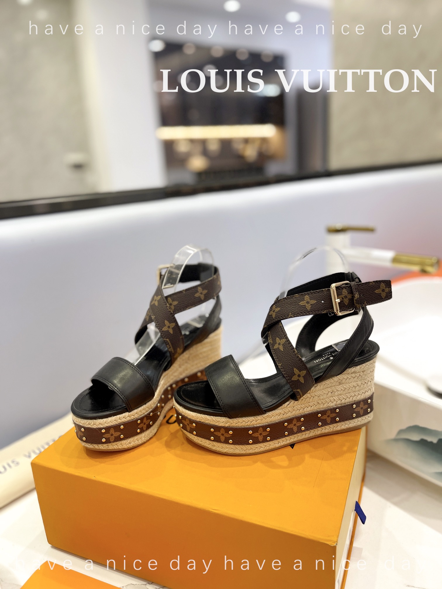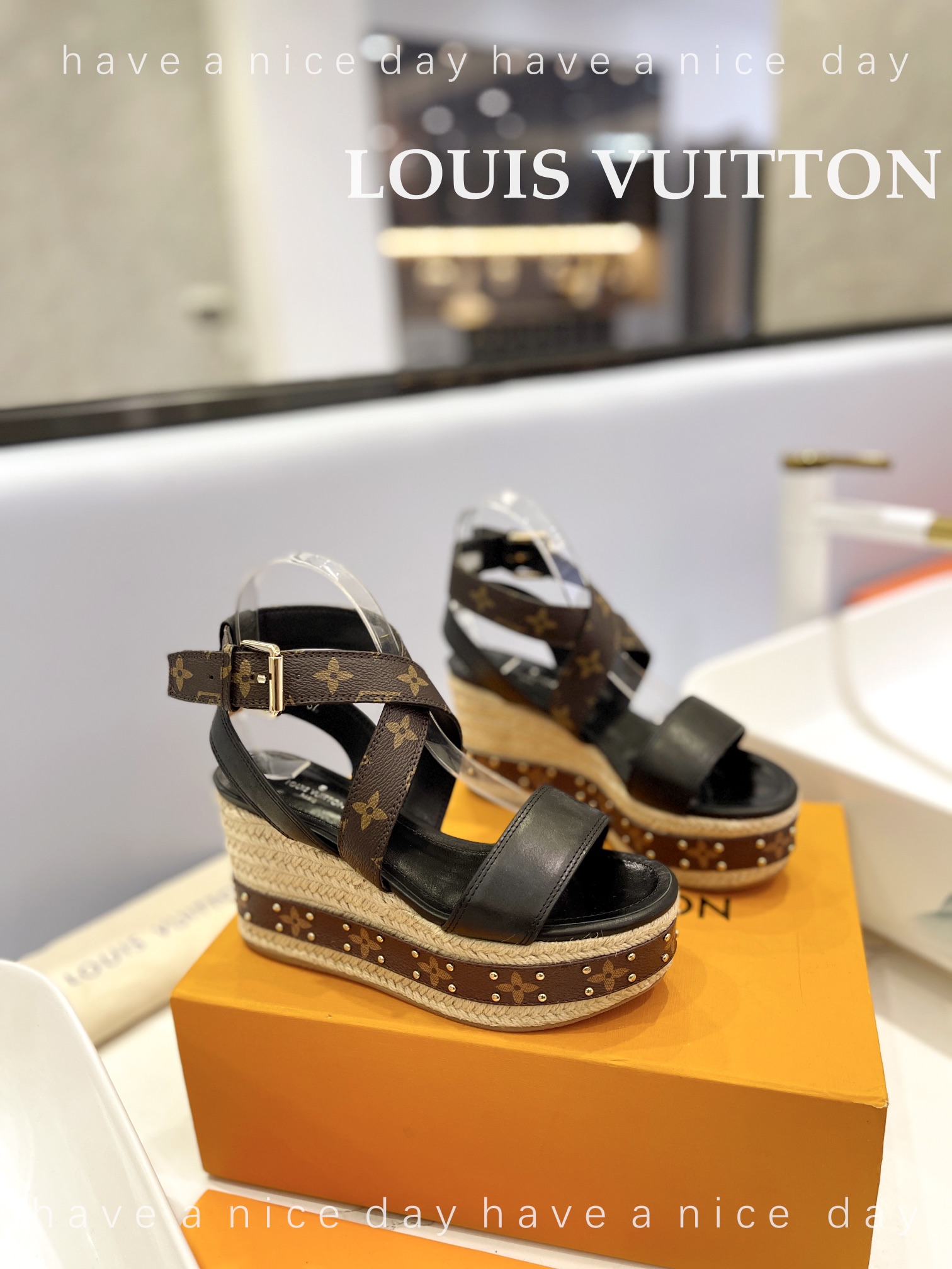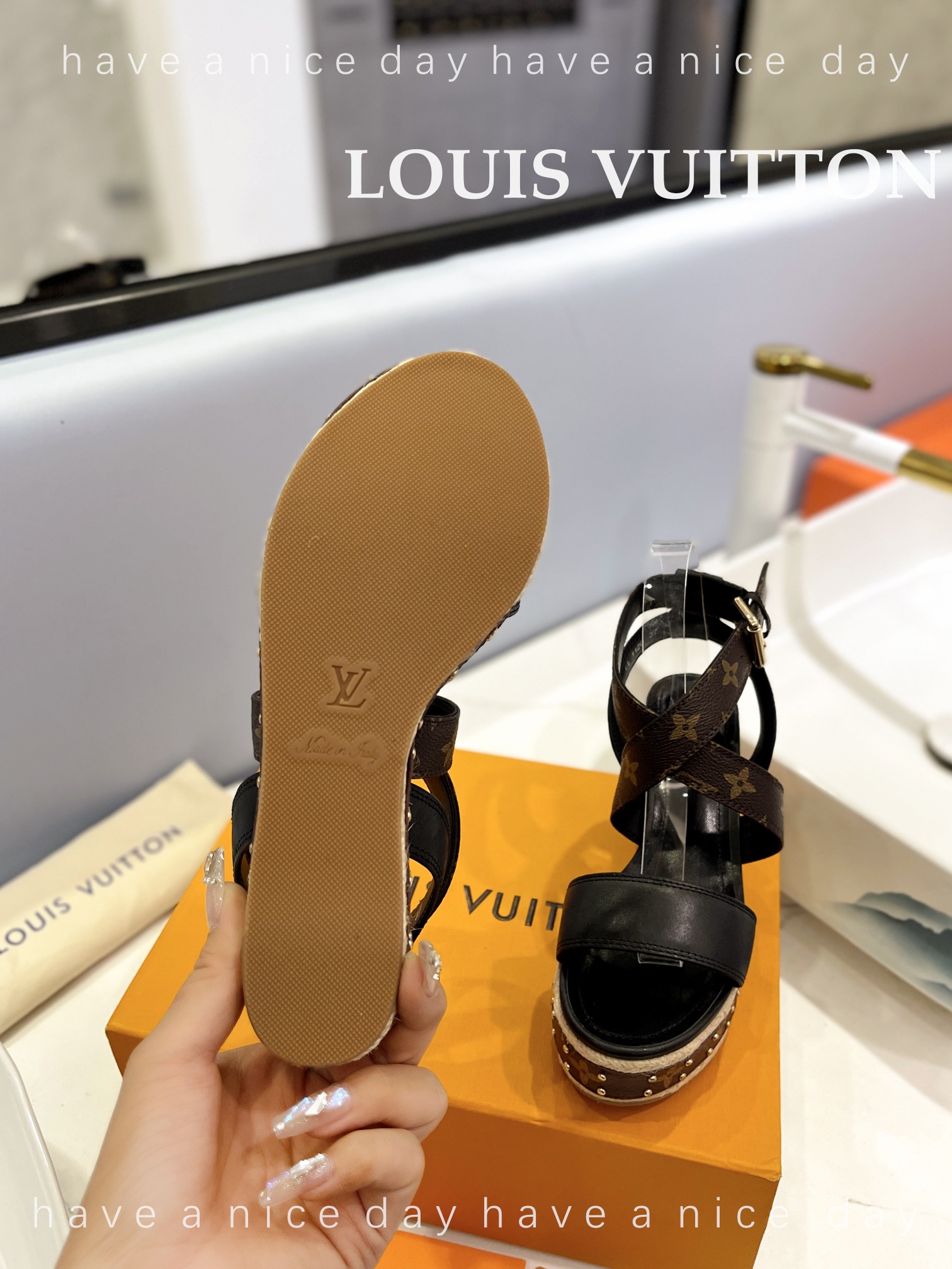LV Women Solid Color Wedge Heel Sandal Size 35-42