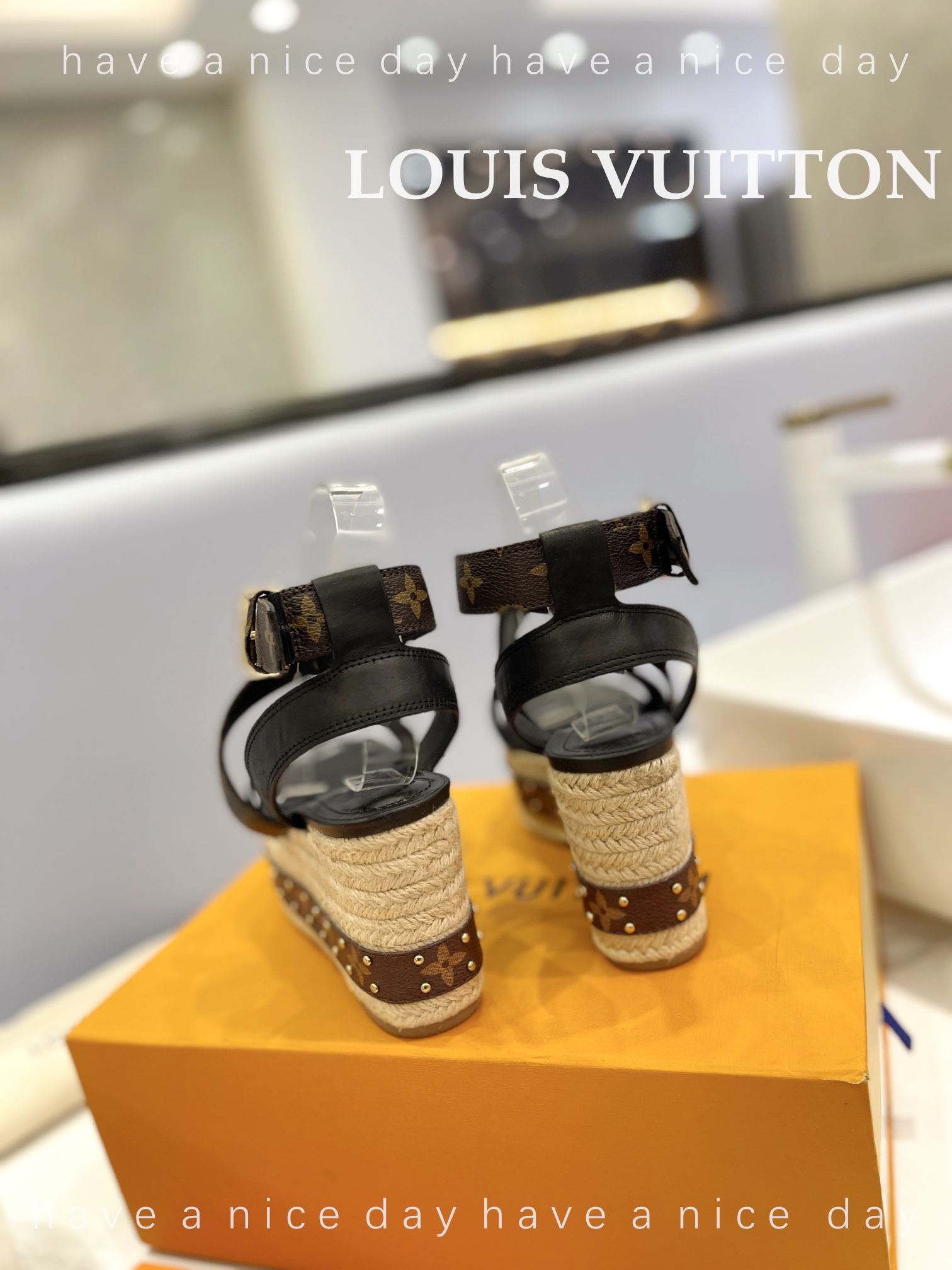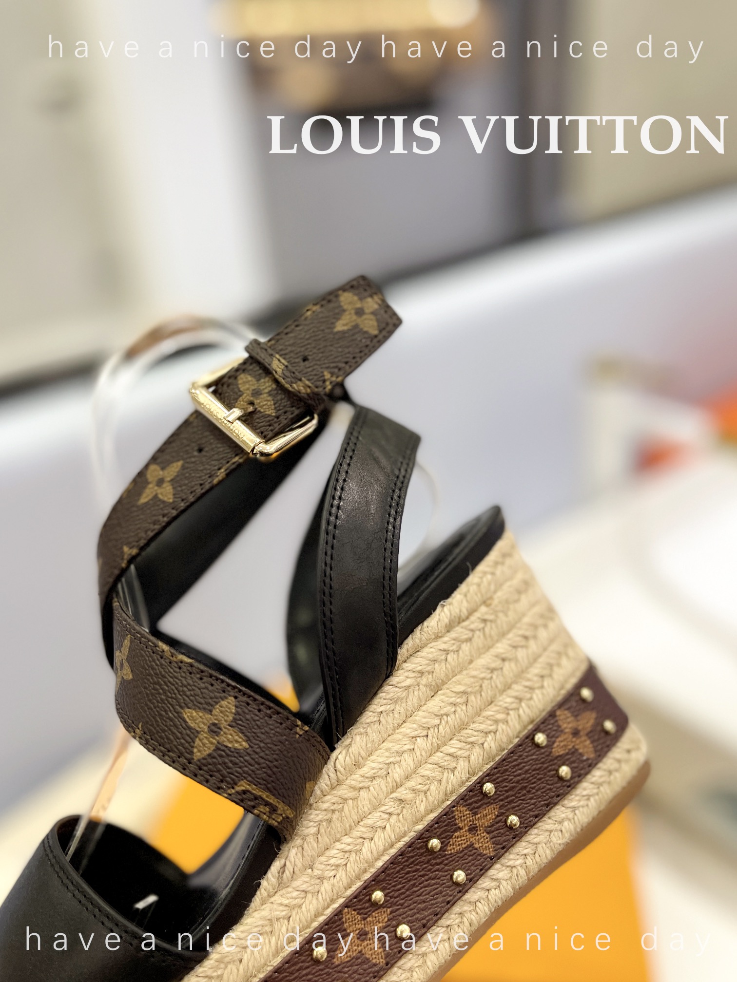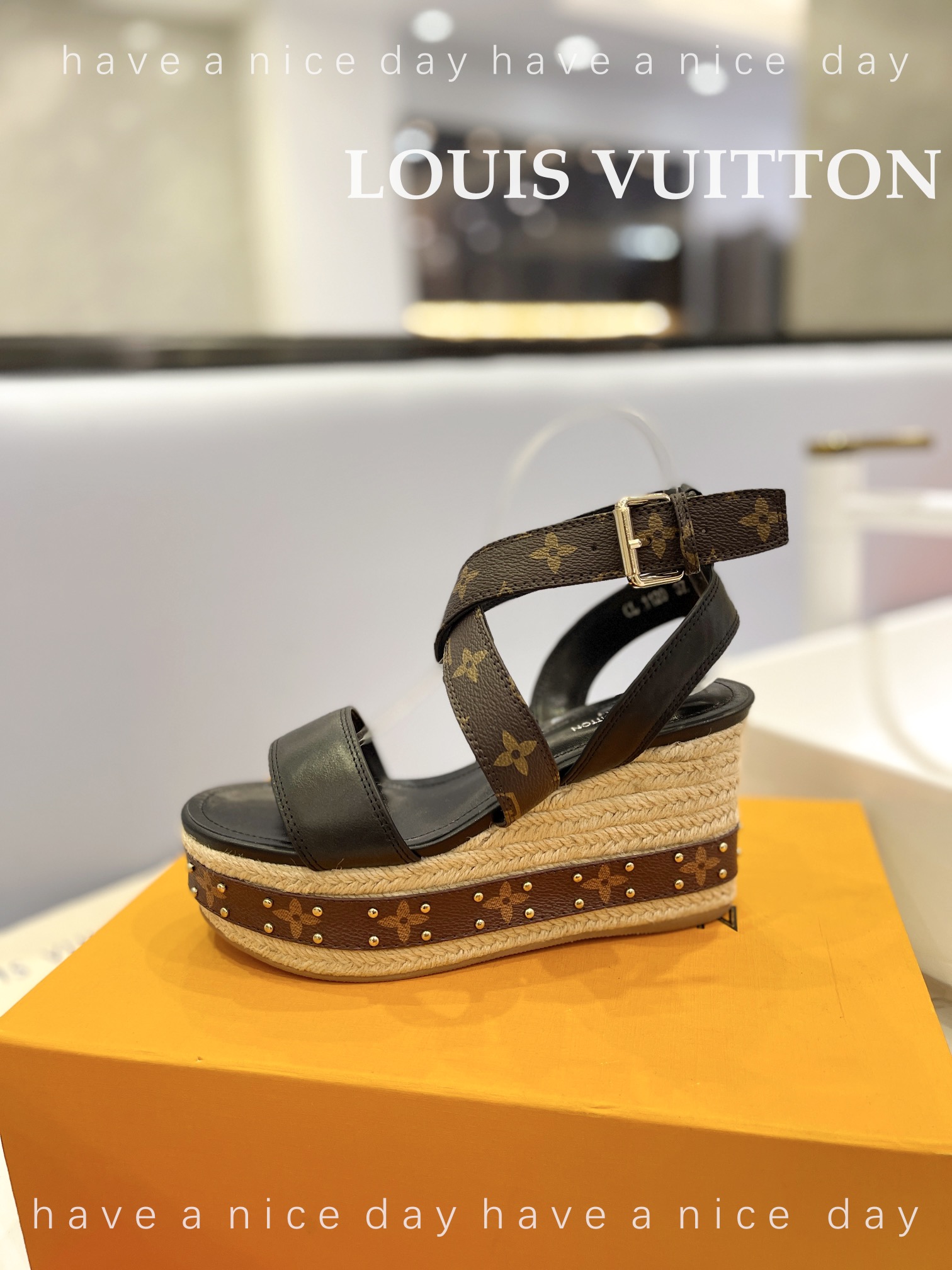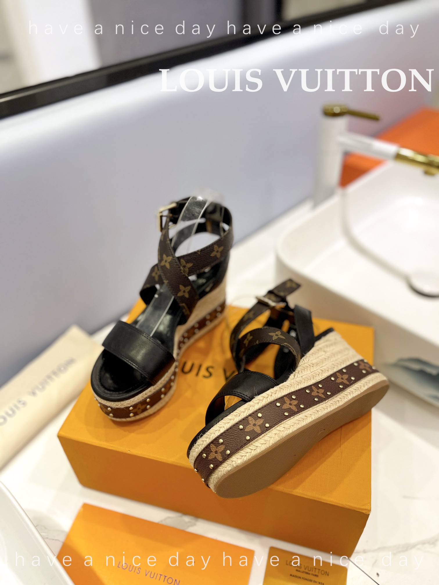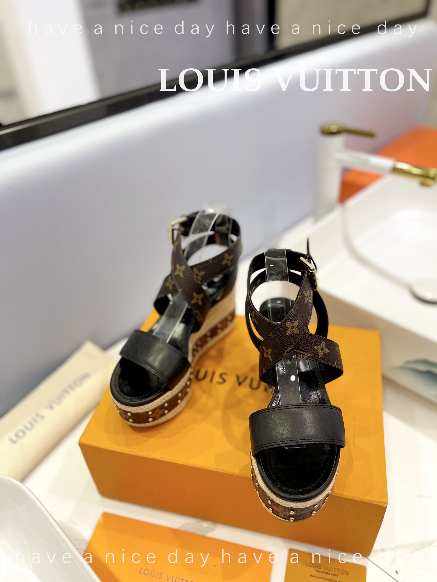LV Women Solid Color Wedge Heel Sandal Size 35-42