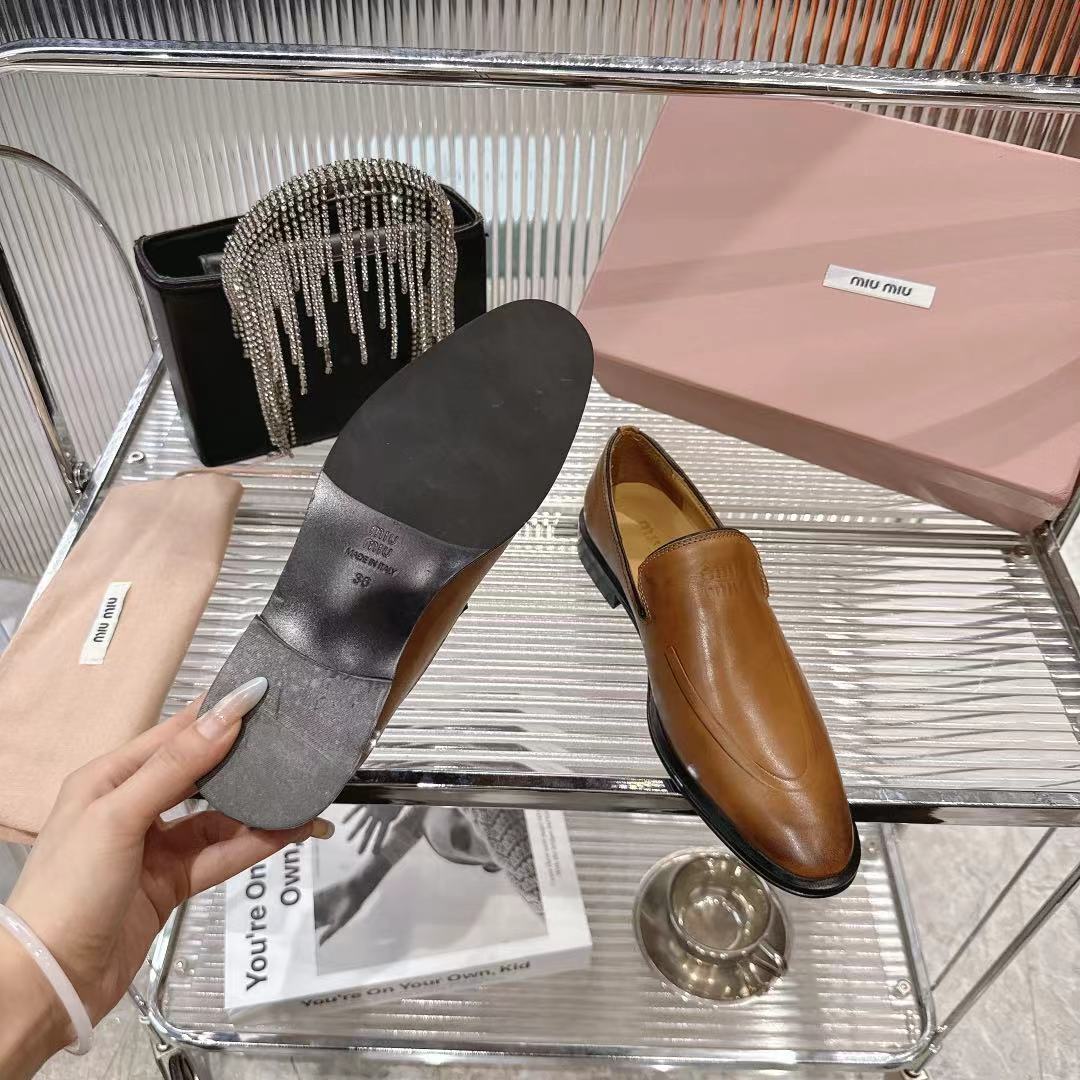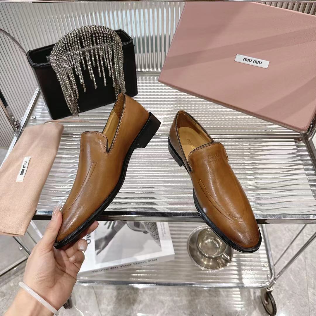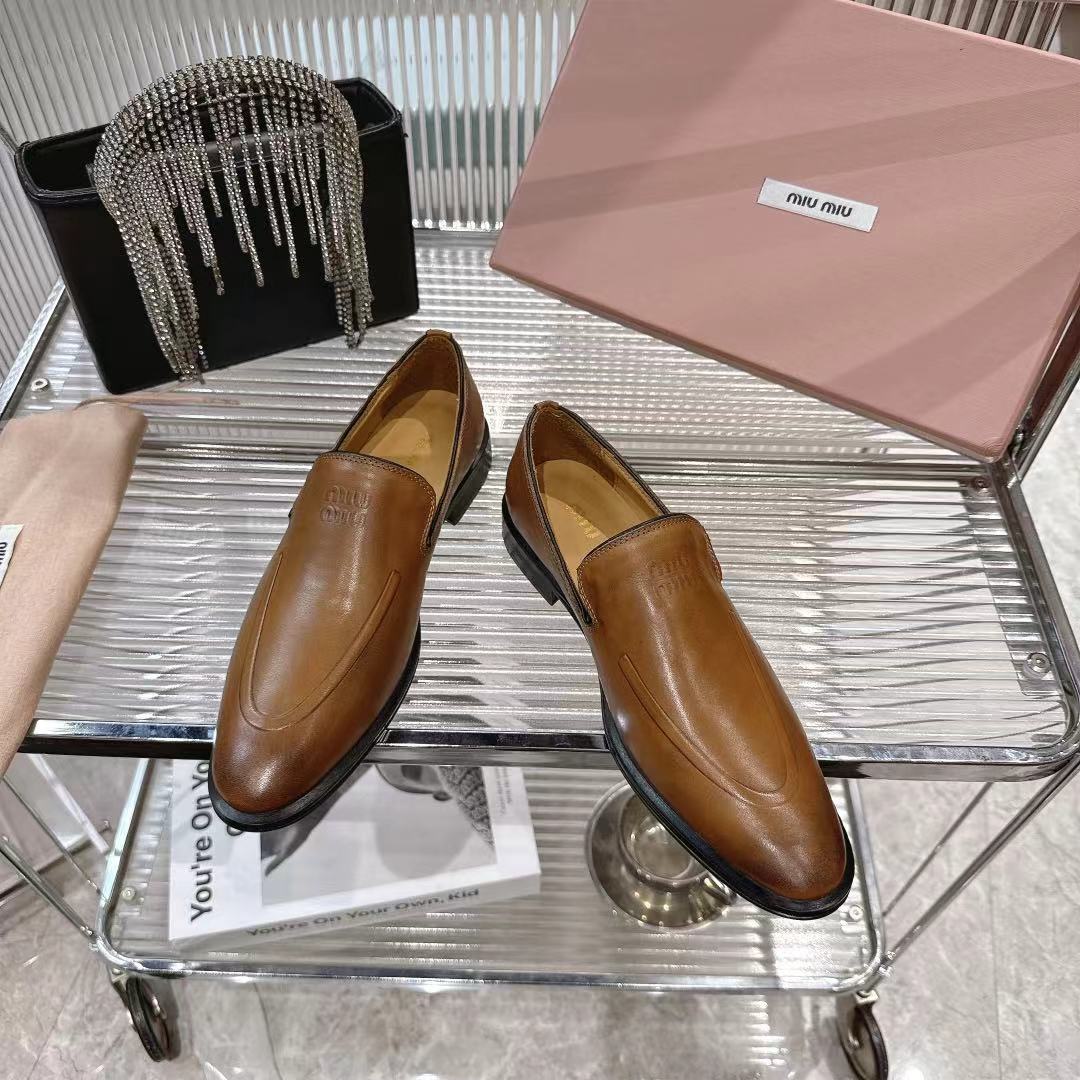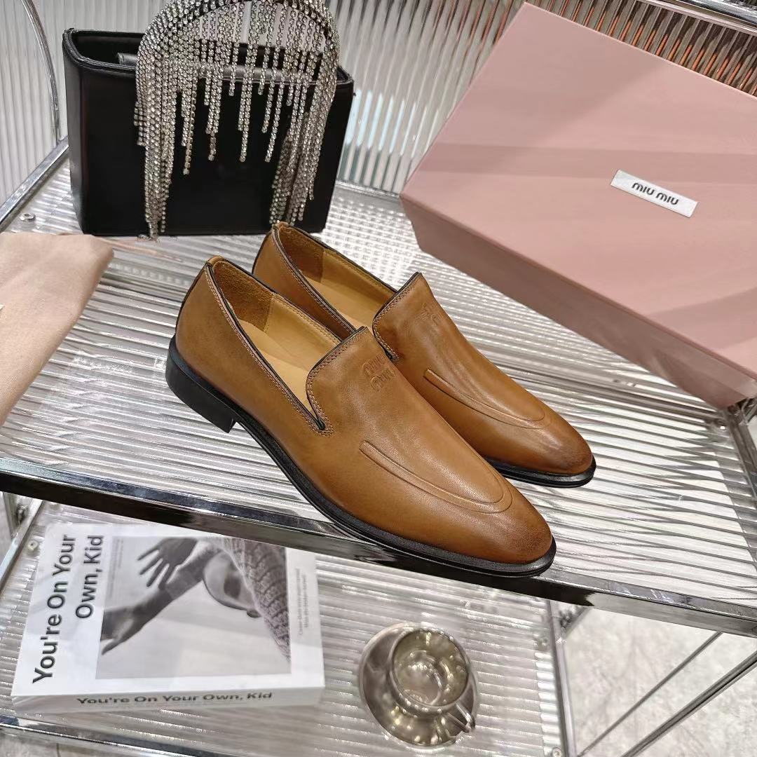 MIUMIU Vintage Distressed Leather Loafers Size 35-40