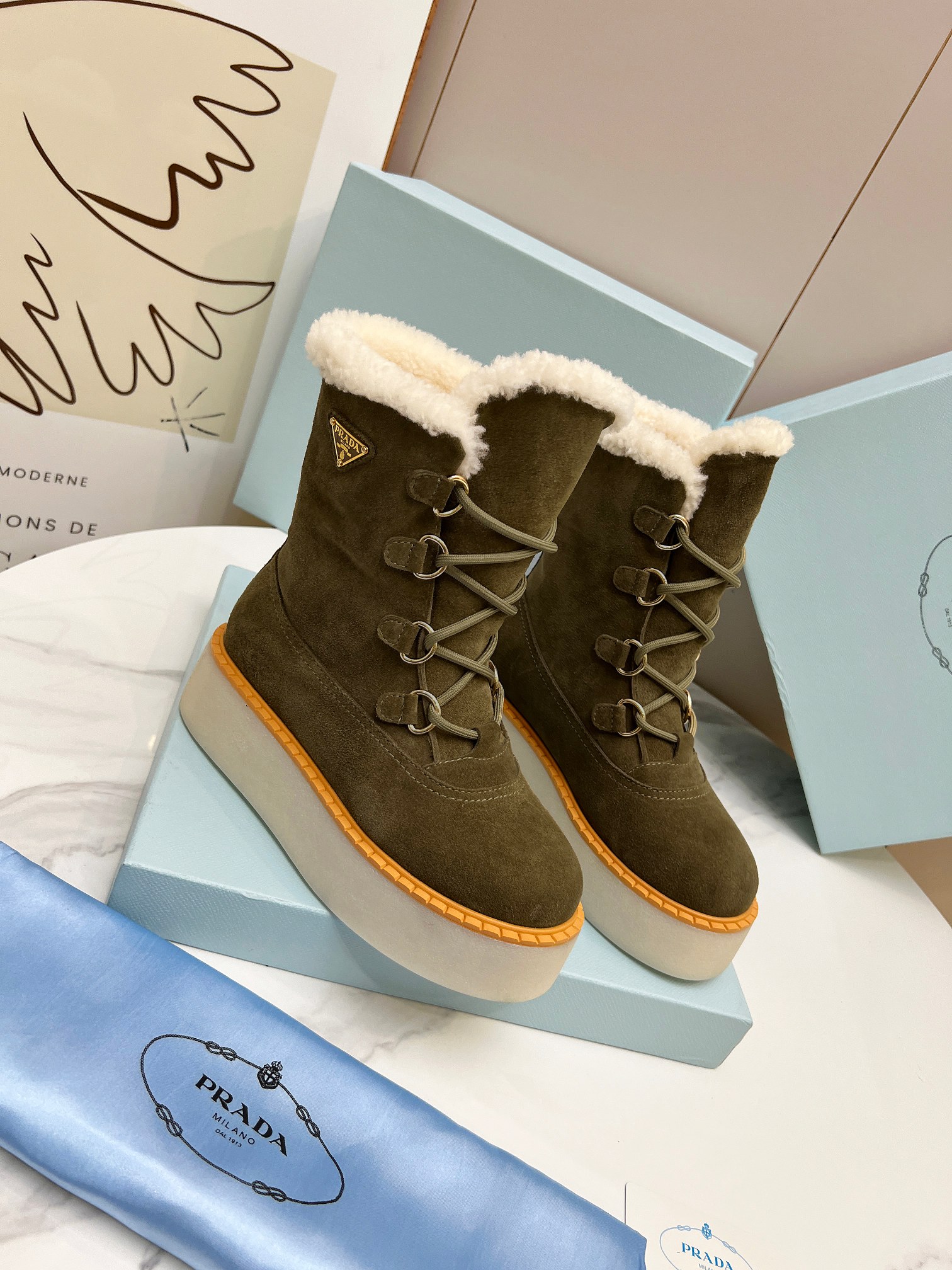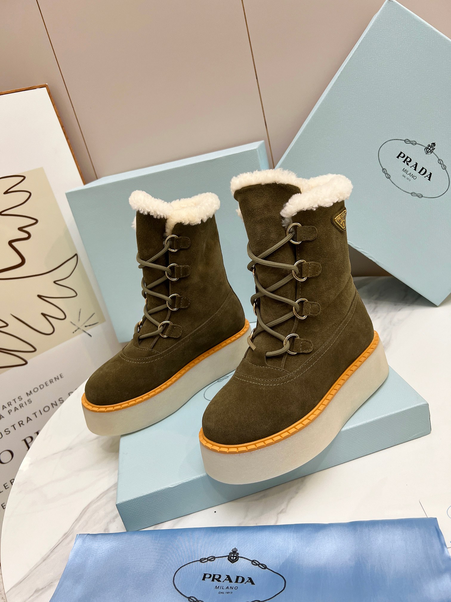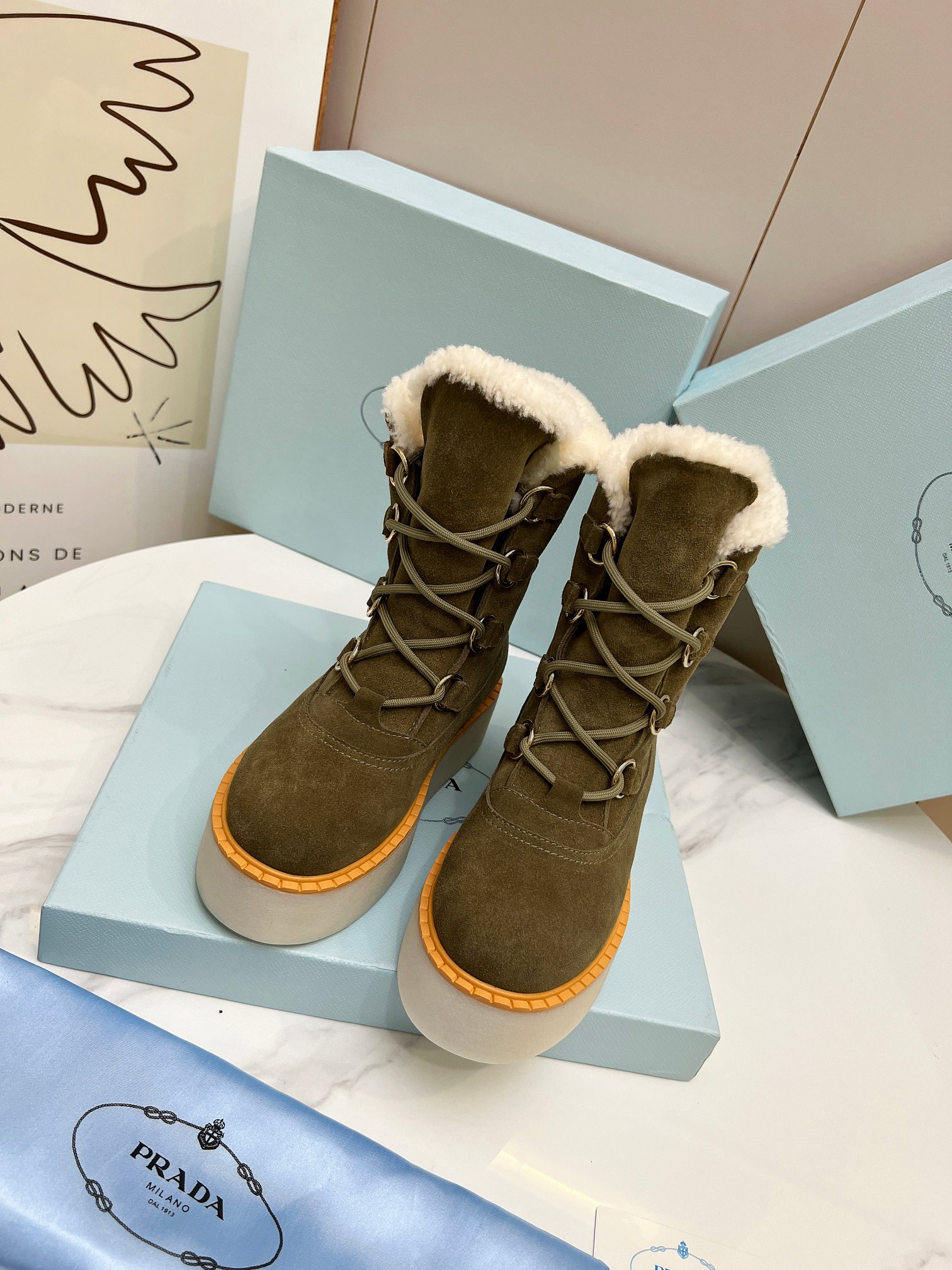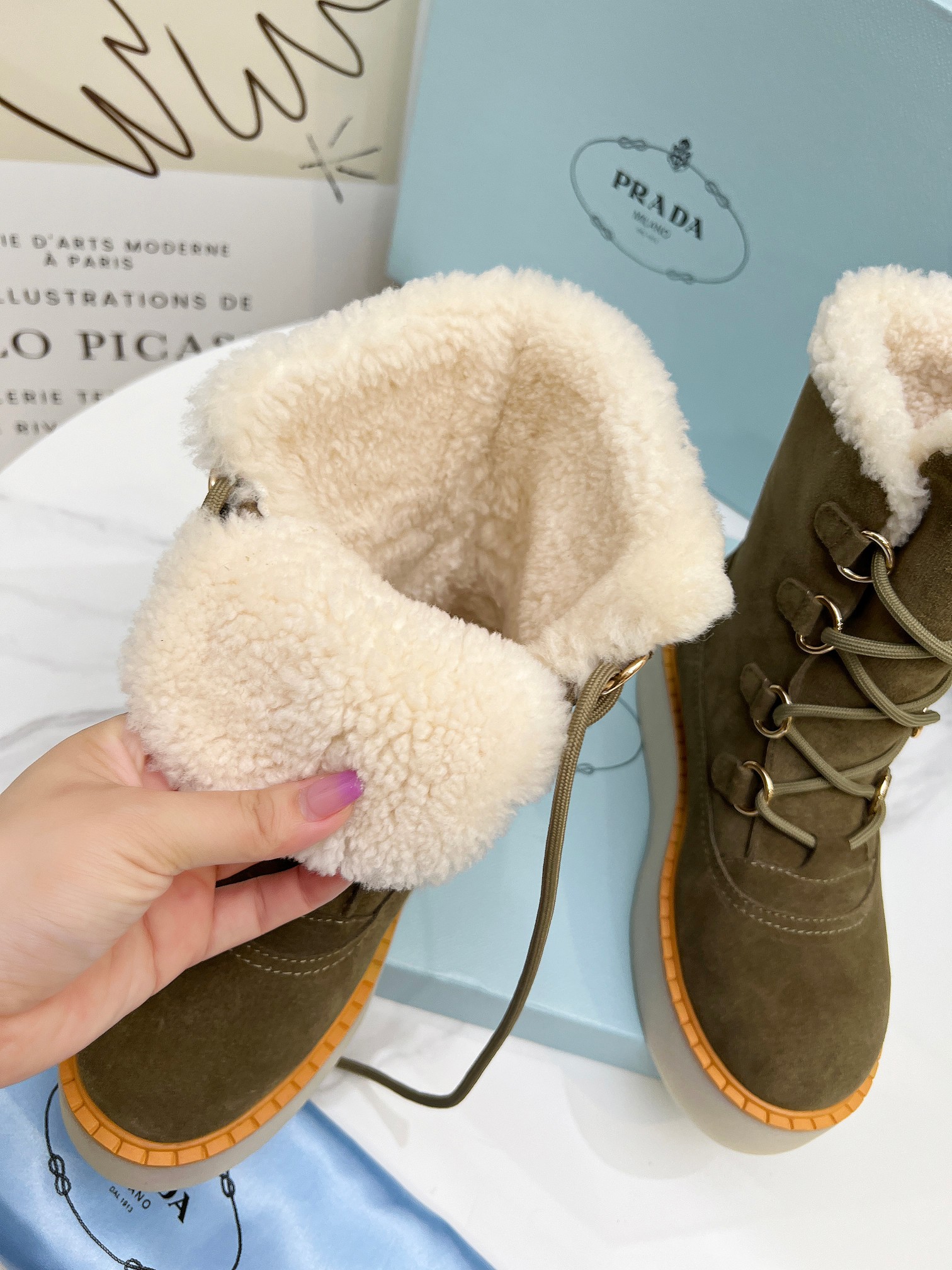 Prada Women Platform Fleece Ankle Boots Size 35-41