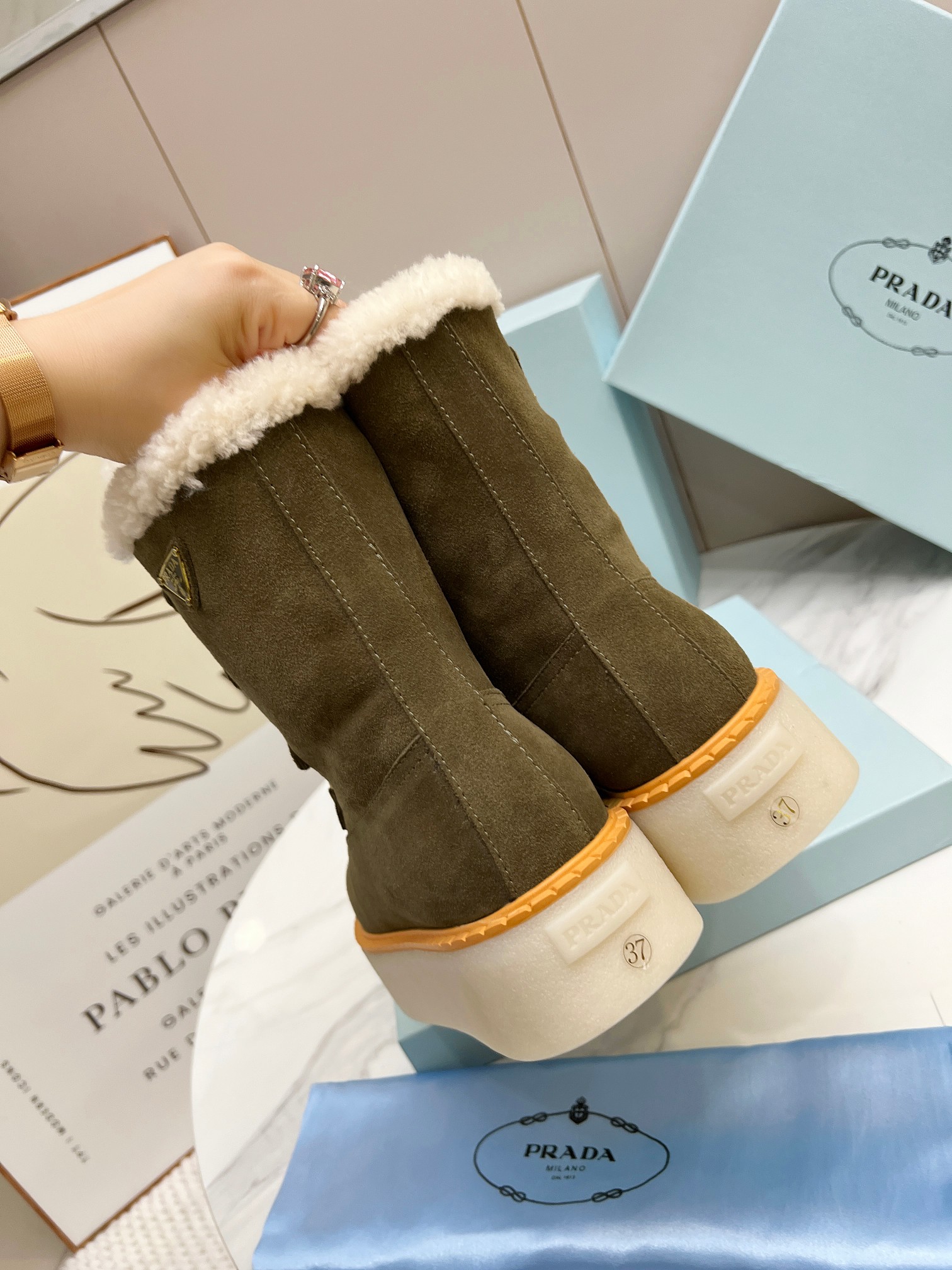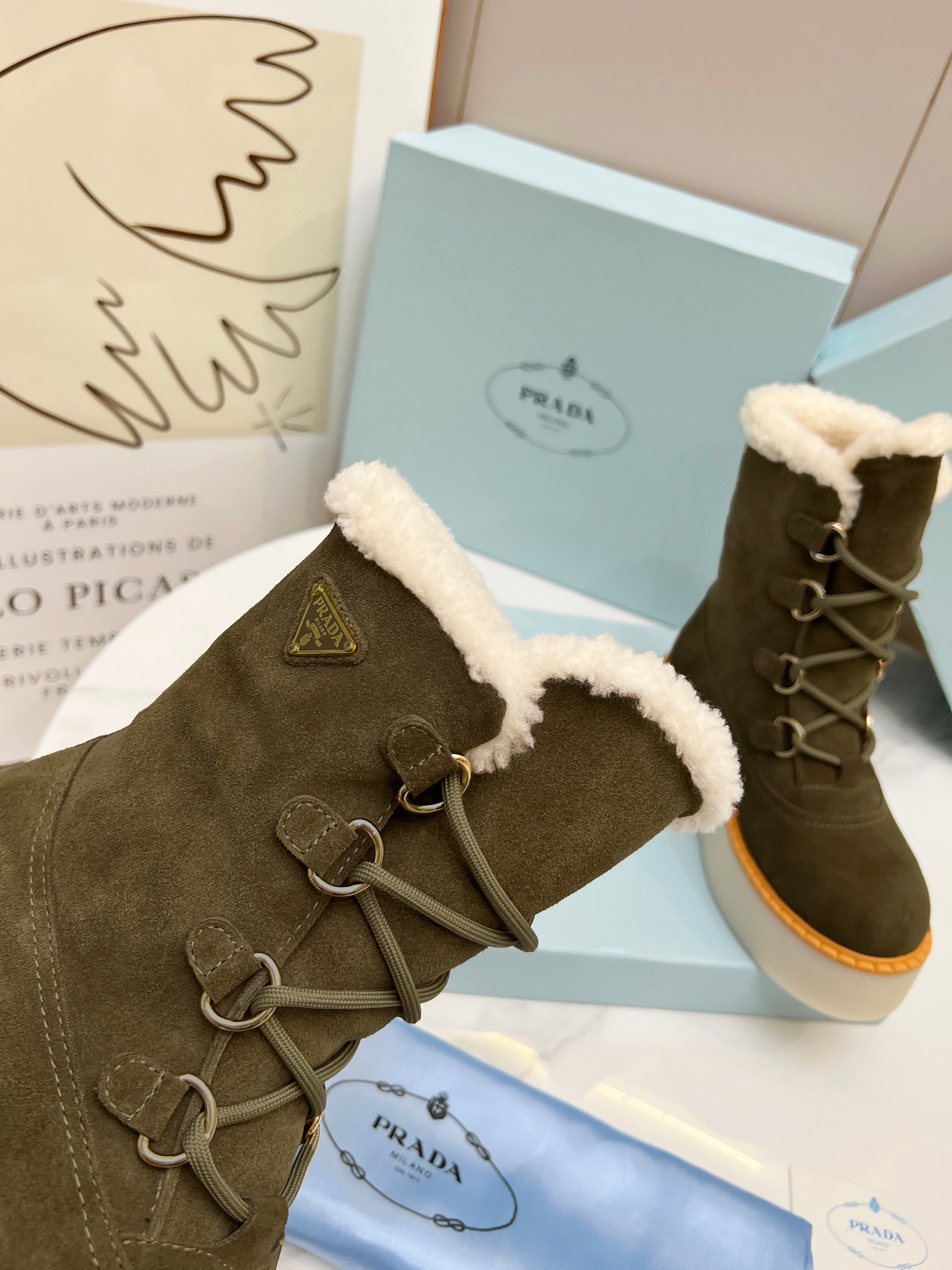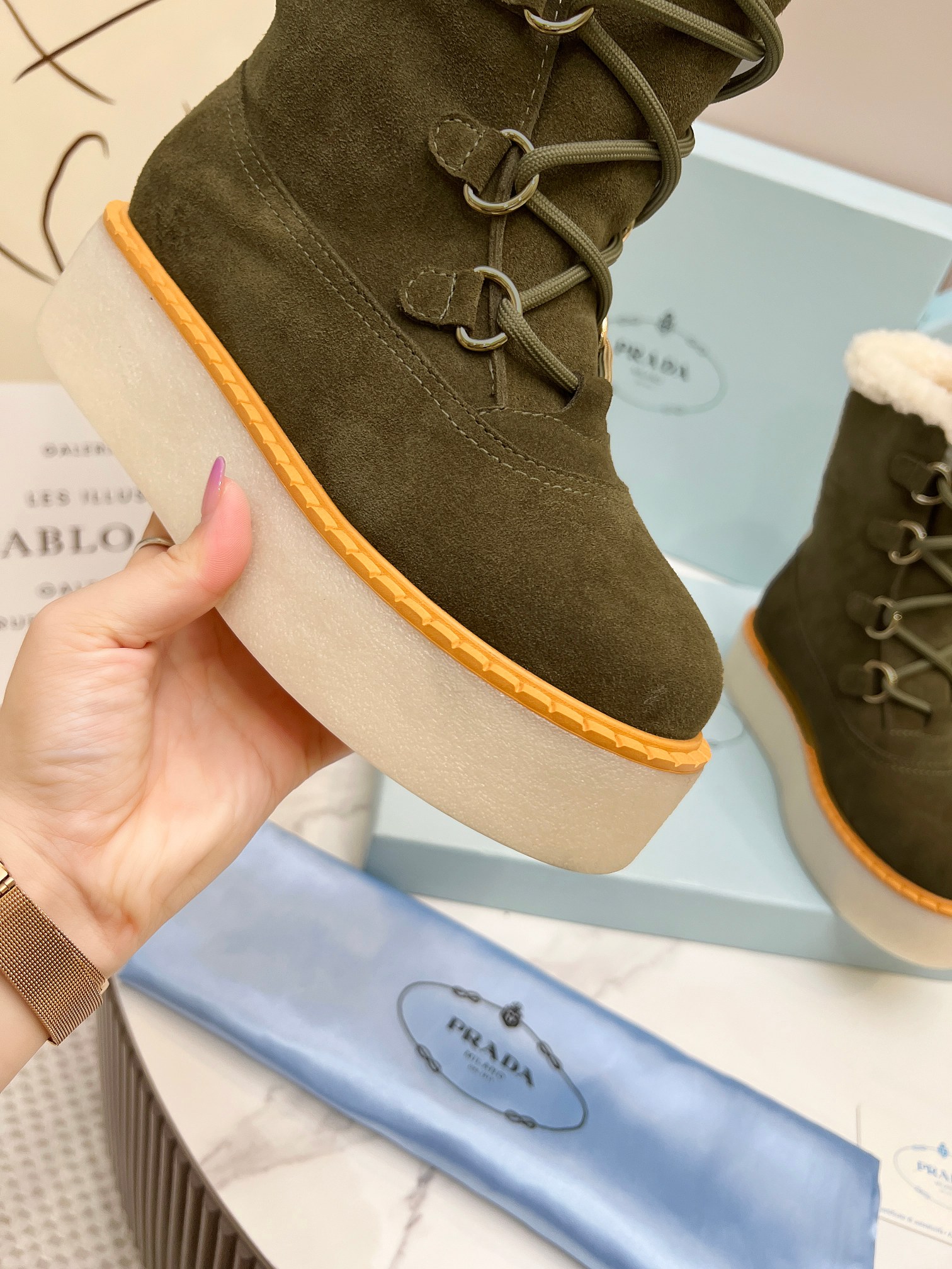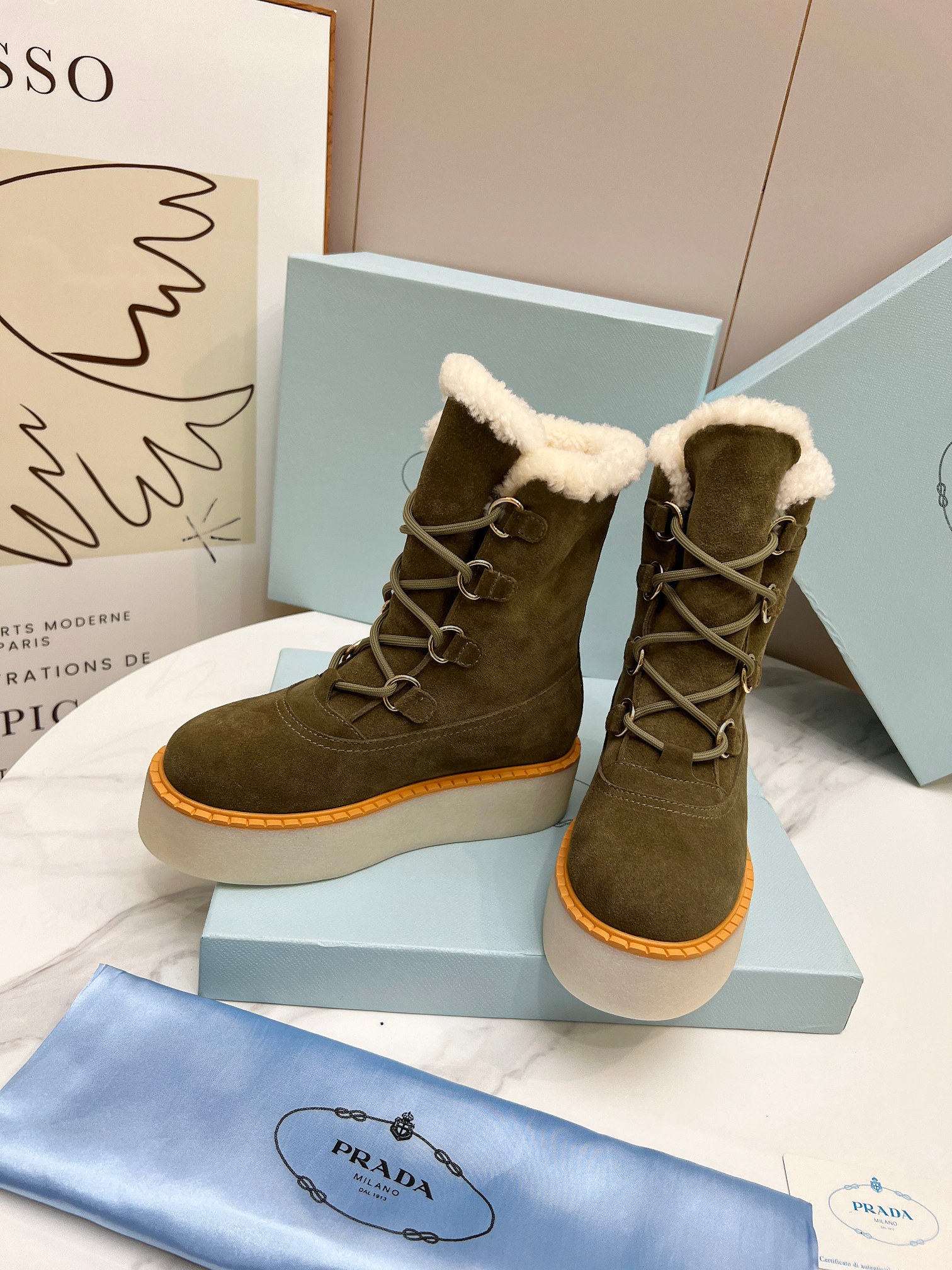 Prada Women Platform Fleece Ankle Boots Size 35-41